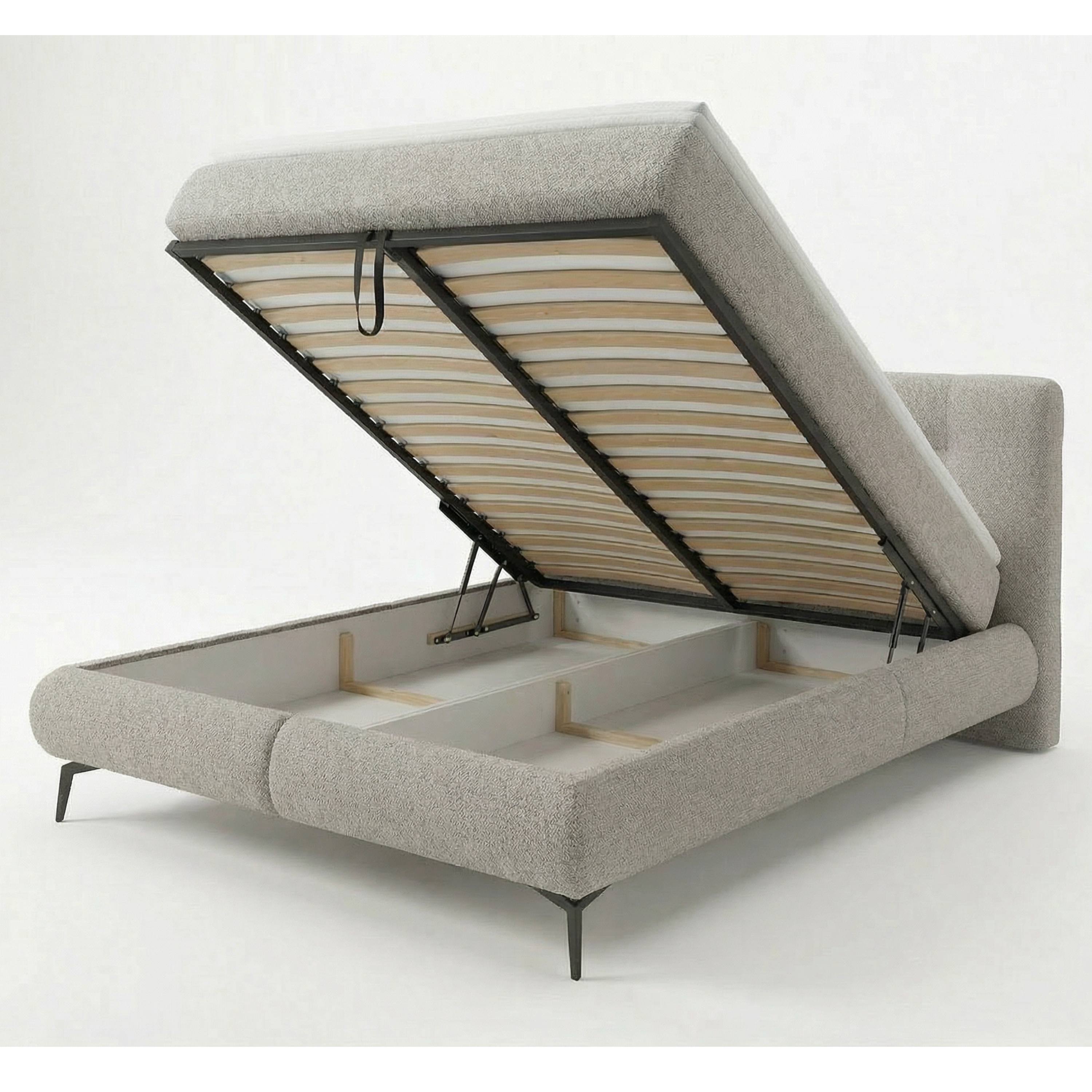Postel je dodávána včetně 9-zónové matrace s jádrem z taštičkových pružin v kombinaci s pěnovou vrstvou kokosovými vlákny. Pro skladování aktuálně nepoužívaných lůžkovin a dalších předmětů můžete využít úložný prostor v rámu postele, který je snadno přístupný díky čelnímu výklopu matrace. Celkový vzhled postele doplňují kovové nohy v černé barvě, které také usnadňují úklid pod nábytkem.
