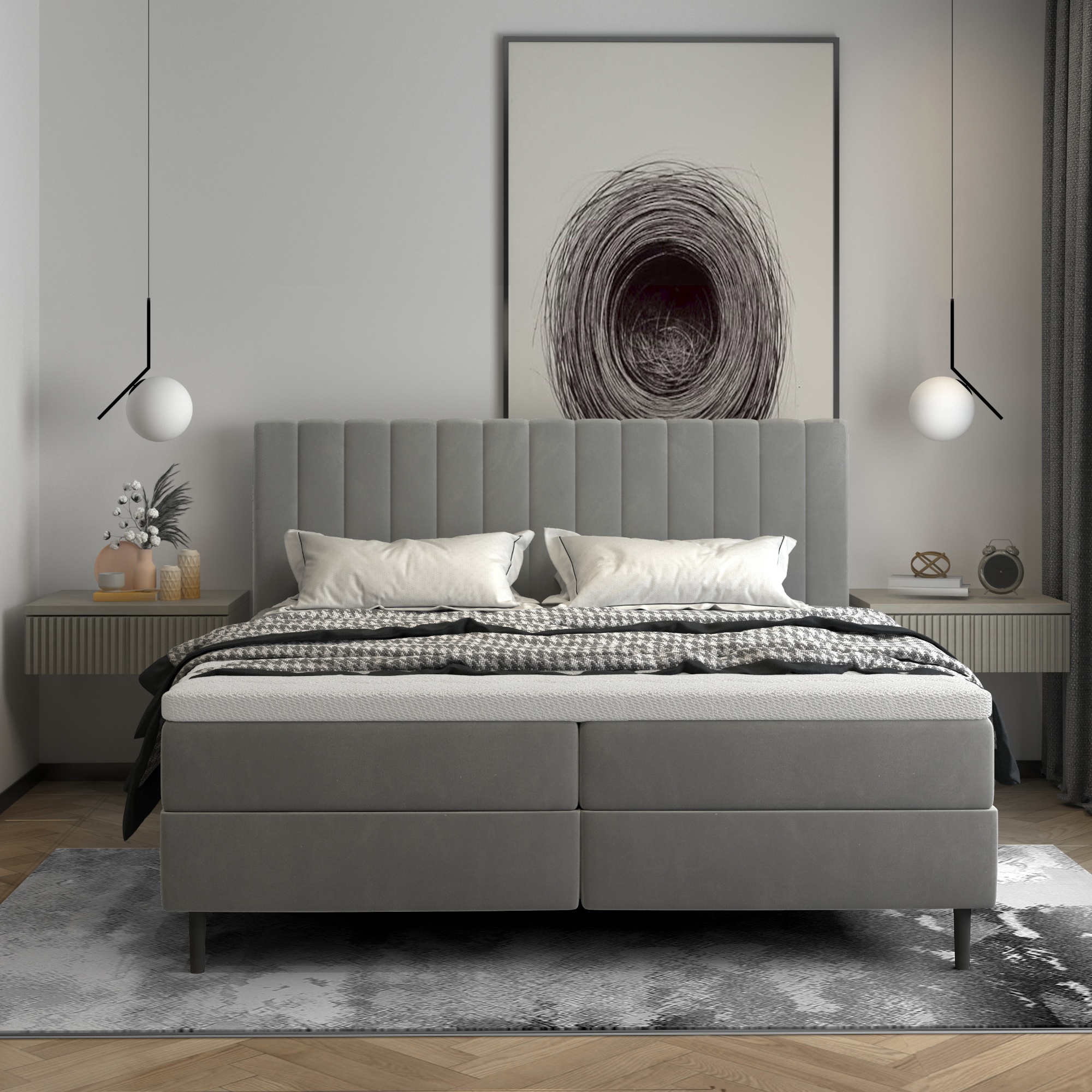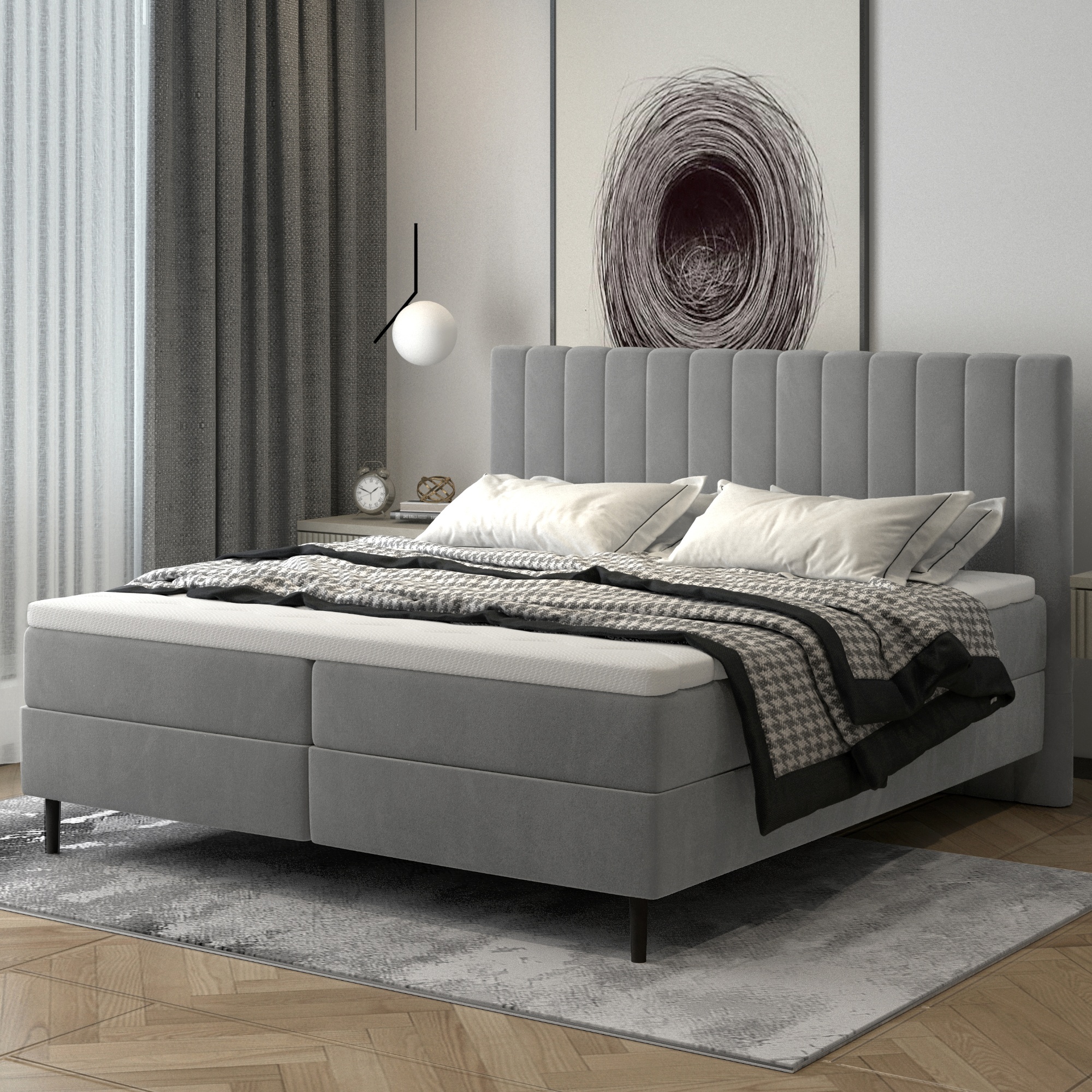 Postel s matrací WINDA - světle šedá, 180x200 cm