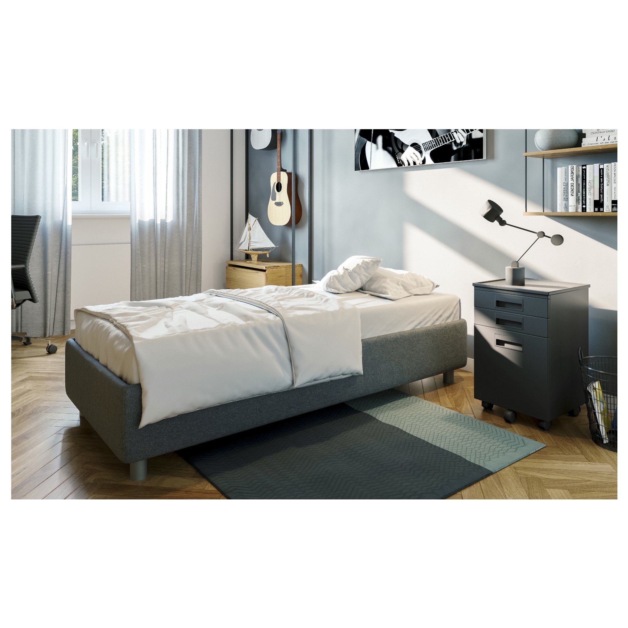 - Postavení postele: Na nožičkách