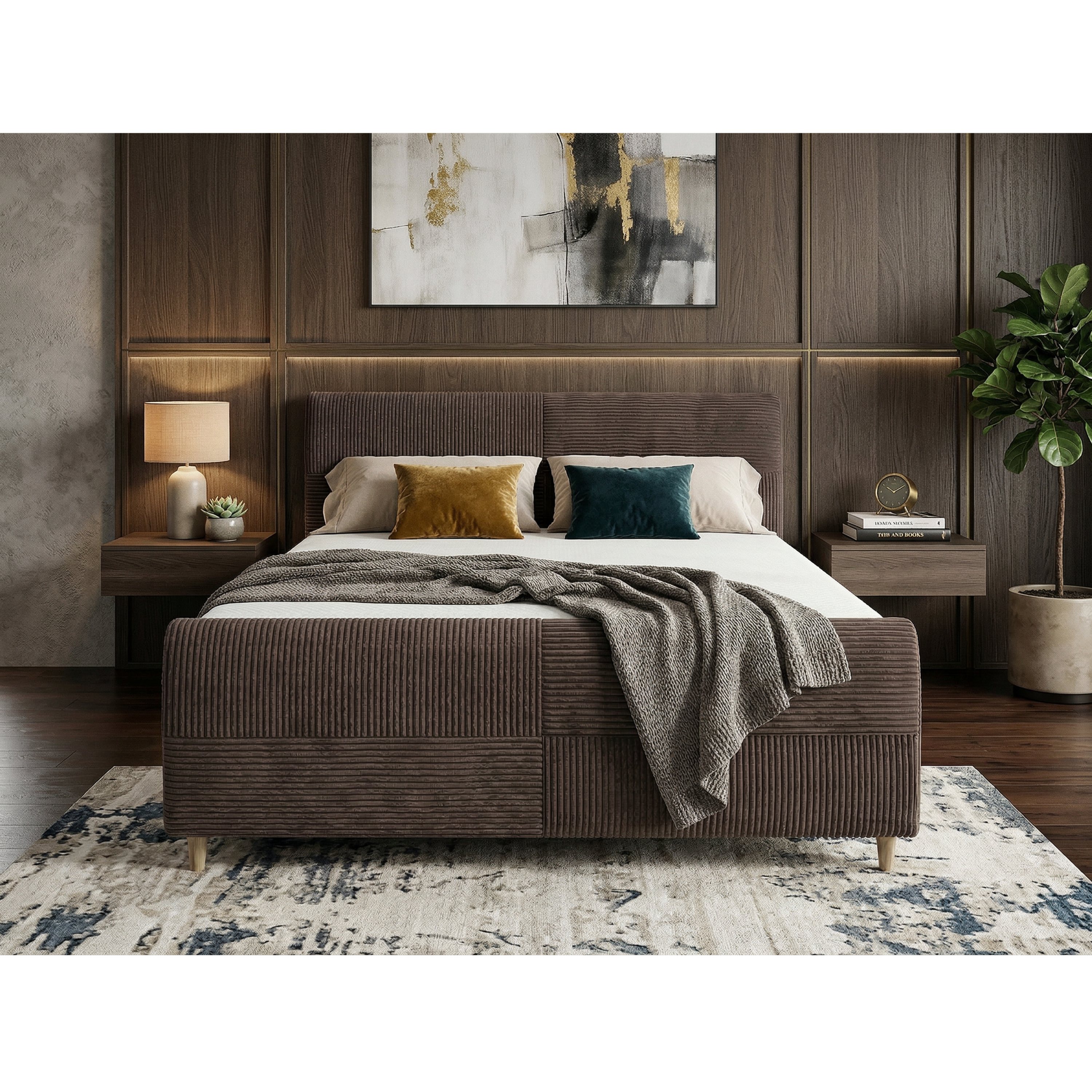 - Povrch postele: Čalouněný