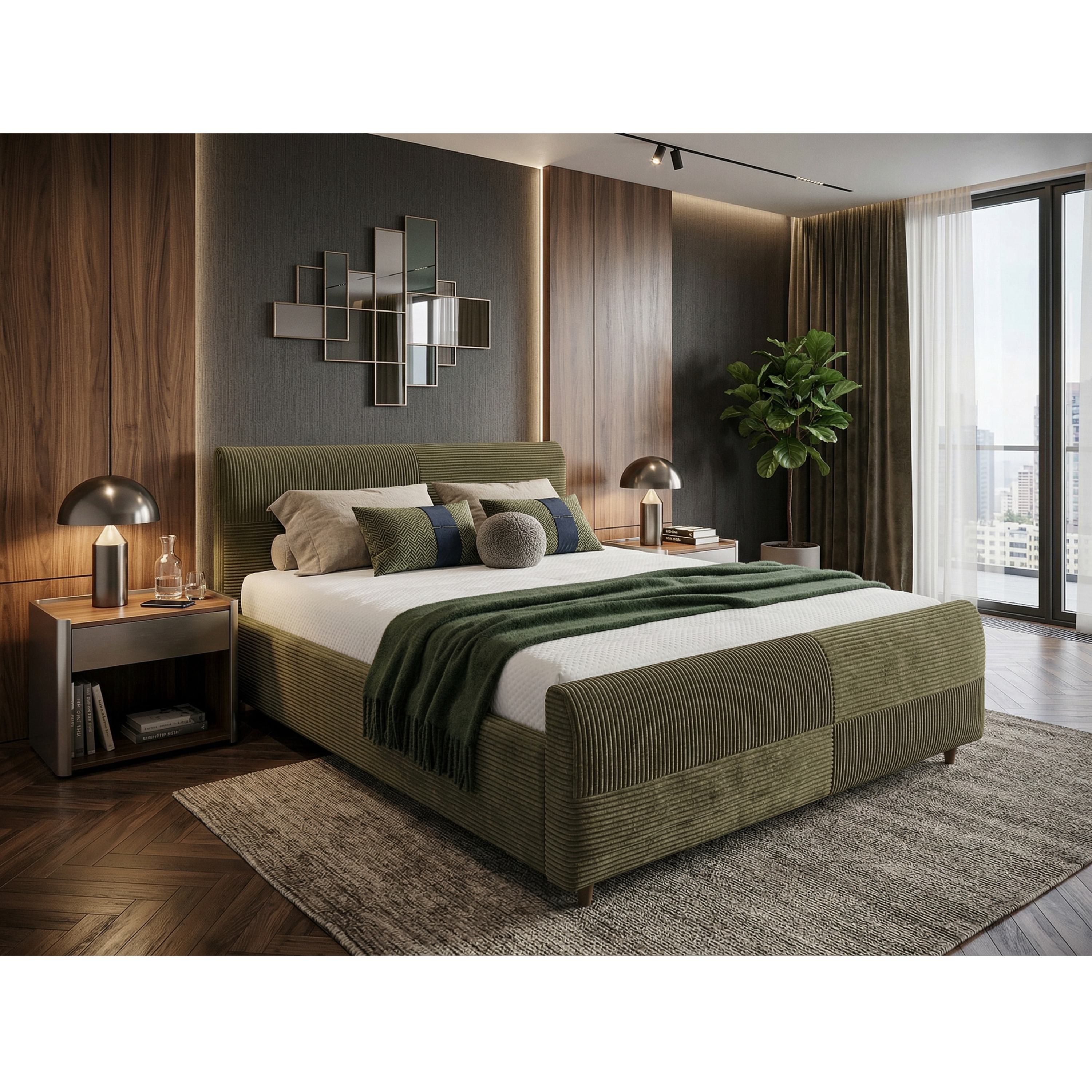 - Povrch postele: Čalouněný