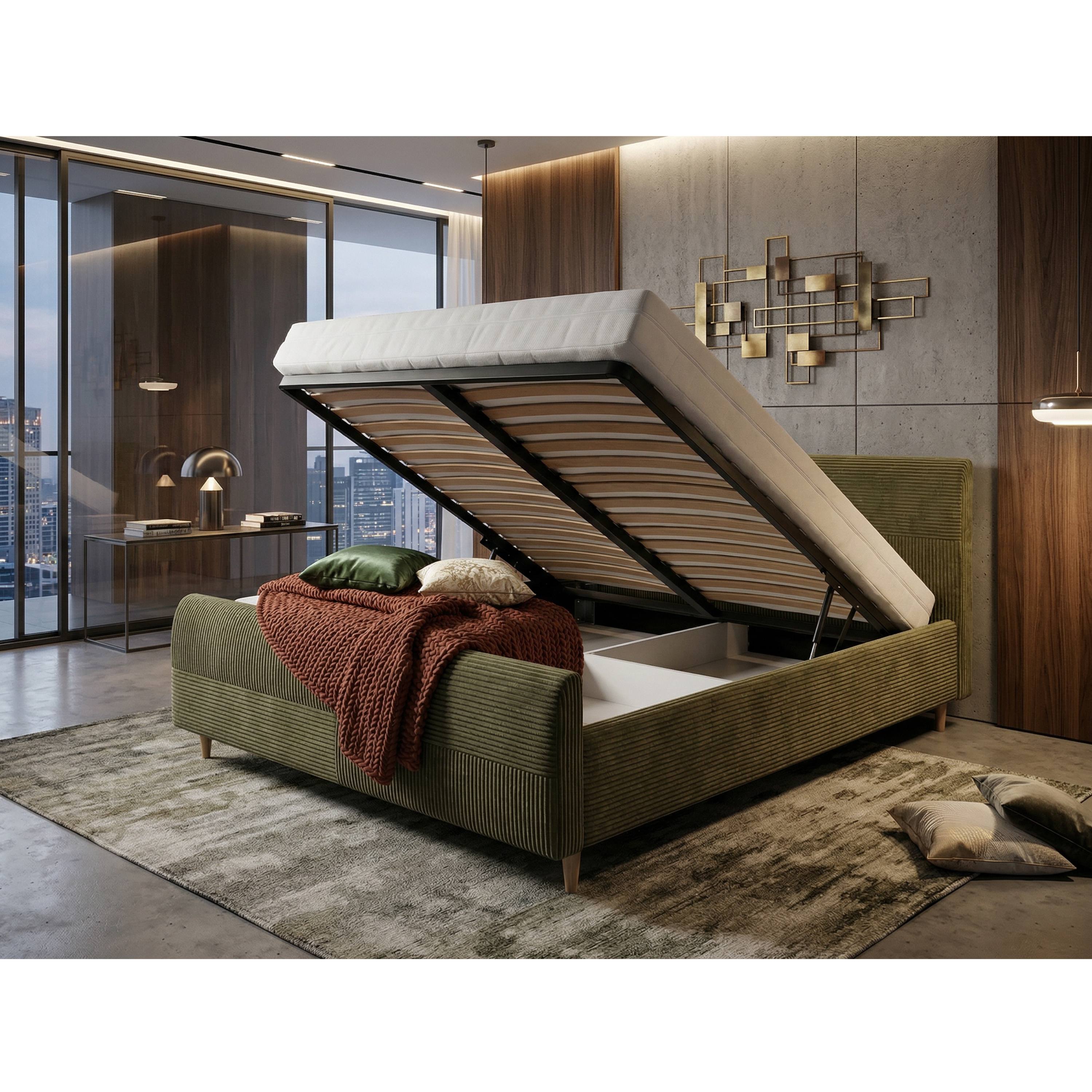 Postel s roštem INZA - olivová, 160x200 cm