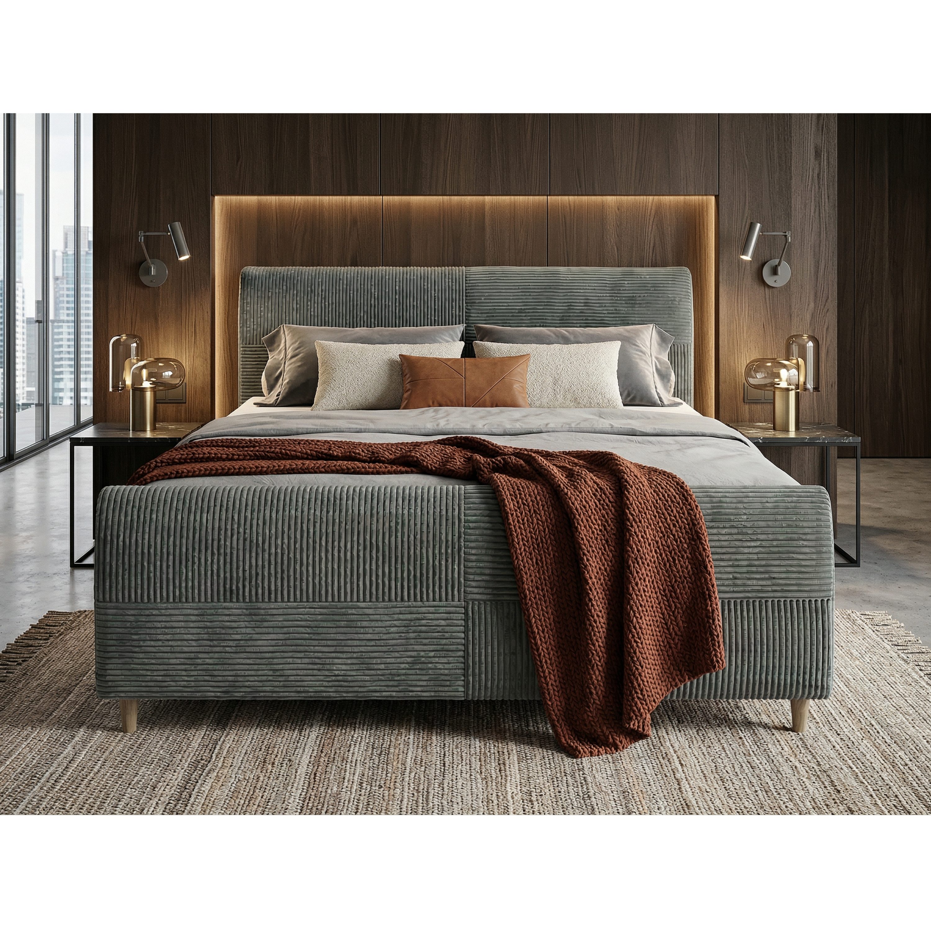 - Povrch postele: Čalouněný