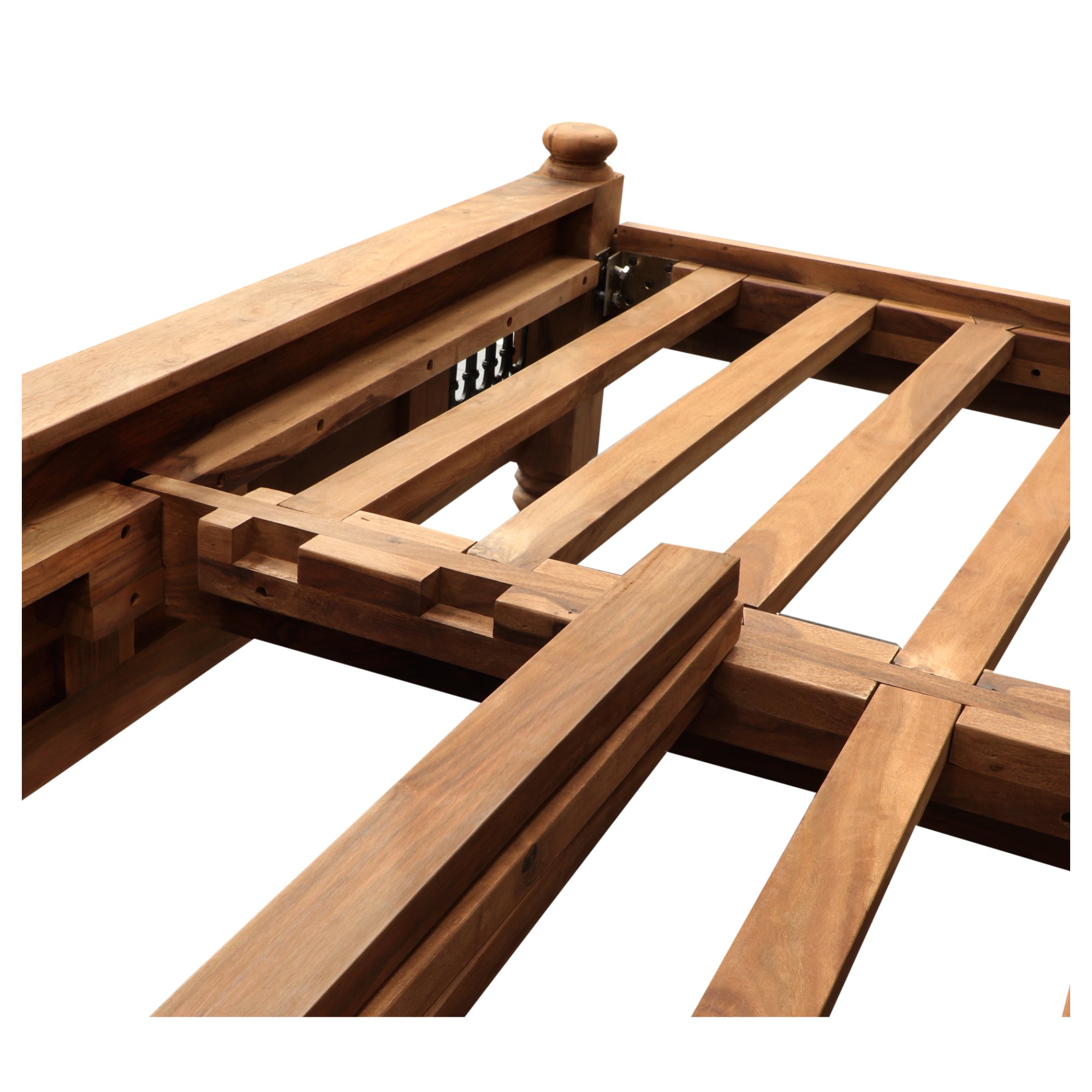 Její pevná a stabilní konstrukce je vyrobena z masivního dřeva shishamu, velmi odolné exotické dřeviny rovněž známé jako palisandr. Vyniká svojí pevností a výraznou kresbou dřeva s unikátními barevnými přechody, které se kus od kusu liší. Každý kus je tak svým způsobem naprosto jedinečný. Na originalitě posteli dodává také ozdobné kování, sloupy a další dekorativní detaily. Součástí konstrukce je masivní laťový rošt, ale matraci je nutné dokoupit samostatně.