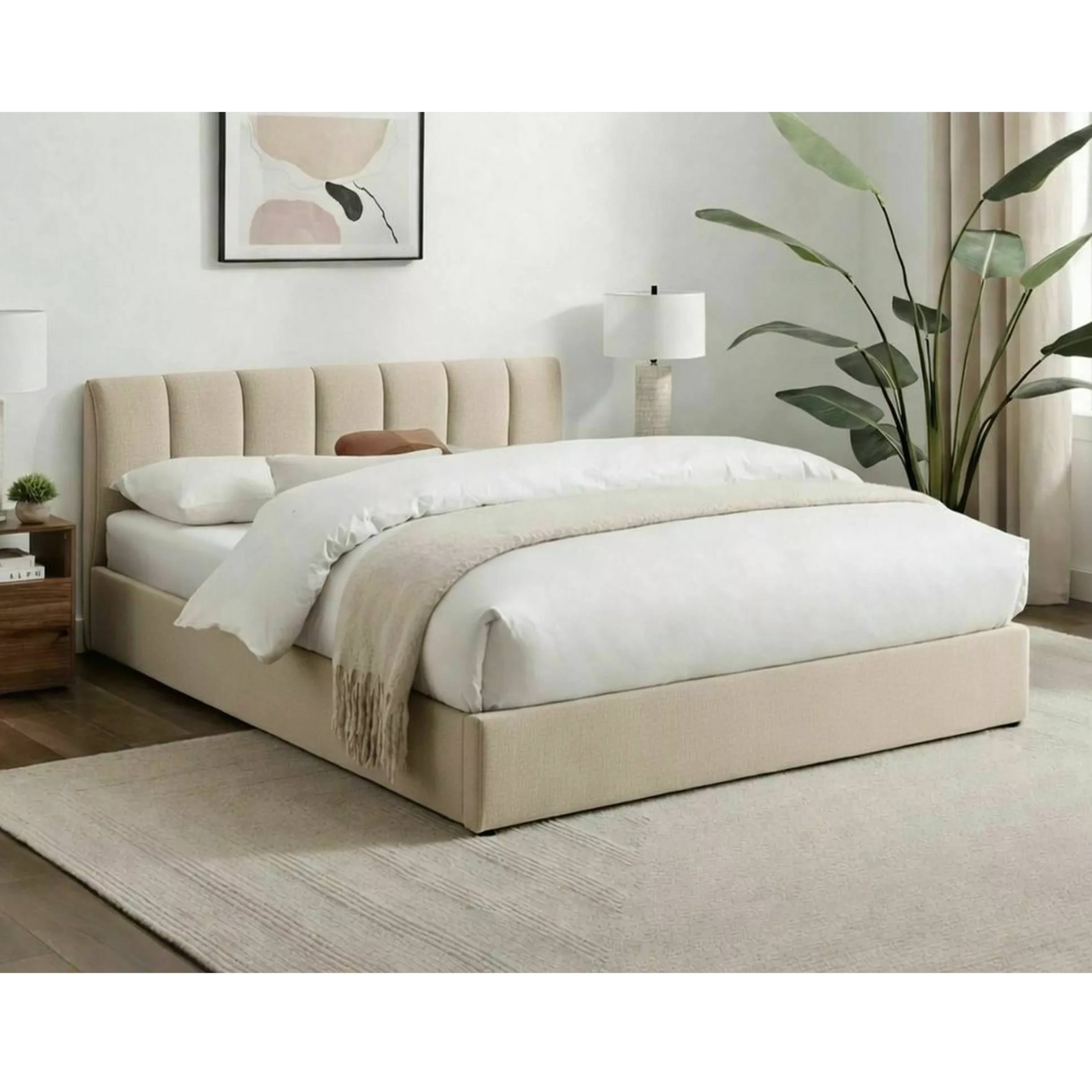 Konstrukce postele je čalouněna příjemnou tkaninou ze 100% polyesteru v neutrálním barevném provedení, které snadno sladíte s dalším vybavením místnosti. Dominantním prvkem postele je vysoké čelo s dekorativním prošíváním, které umožňuje komfortní opření během večerní relaxace. Postel je dodávána včetně lamelového roštu, ale bez matrace. Věříme však, že si tu ideální vyberete z našeho širokého sortimentu. Pro skladování lůžkovin a dalších předmětů slouží úložný prostor v rámu postele, který je snadno přístupný díky čelnímu výklopu roštu.