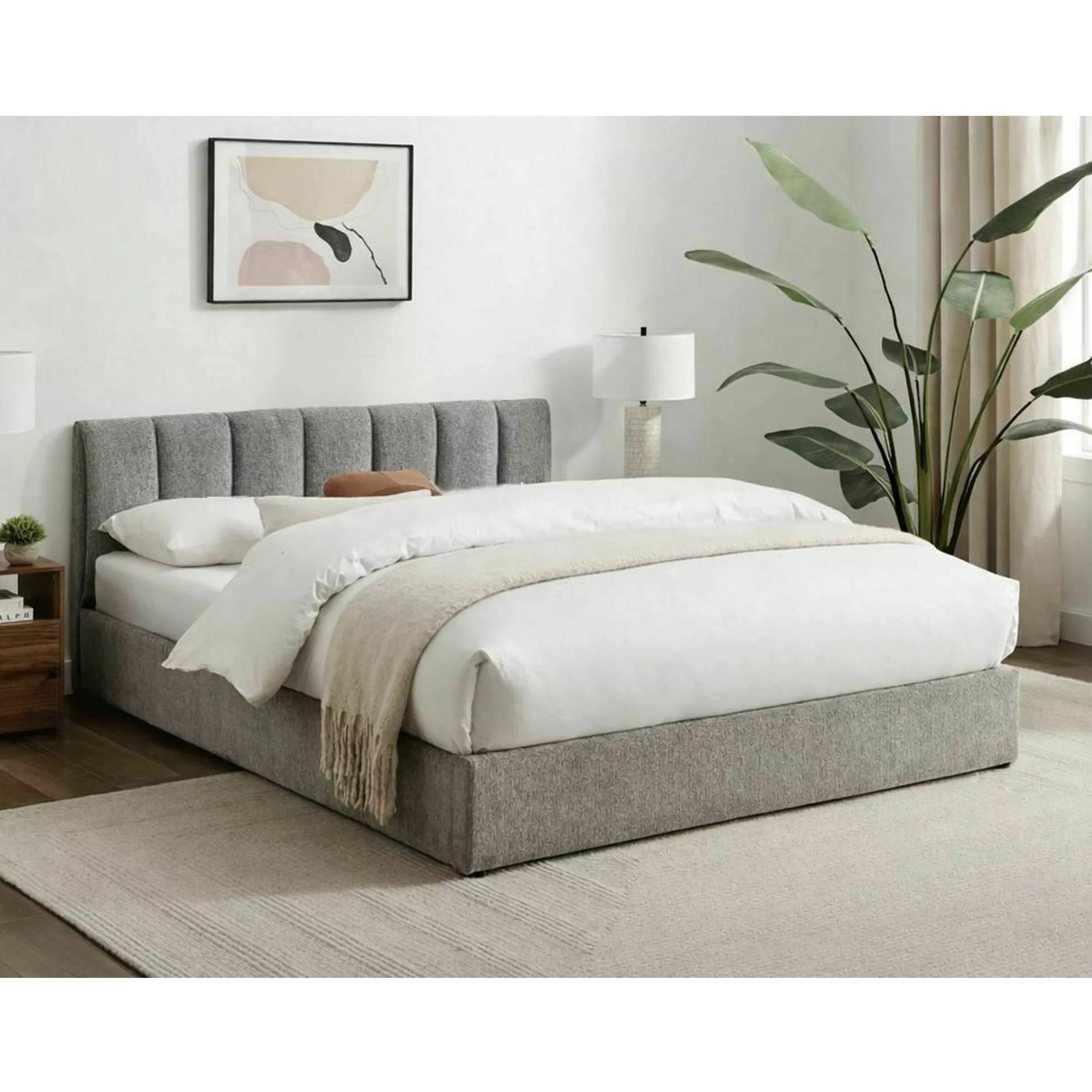 Konstrukce postele je čalouněna příjemnou tkaninou ze 100% polyesteru v neutrálním barevném provedení, které snadno sladíte s dalším vybavením místnosti. Dominantním prvkem postele je vysoké čelo s dekorativním prošíváním, které umožňuje komfortní opření během večerní relaxace. Postel je dodávána včetně lamelového roštu, ale bez matrace. Věříme však, že si tu ideální vyberete z našeho širokého sortimentu. Pro skladování lůžkovin a dalších předmětů slouží úložný prostor v rámu postele, který je snadno přístupný díky čelnímu výklopu roštu.