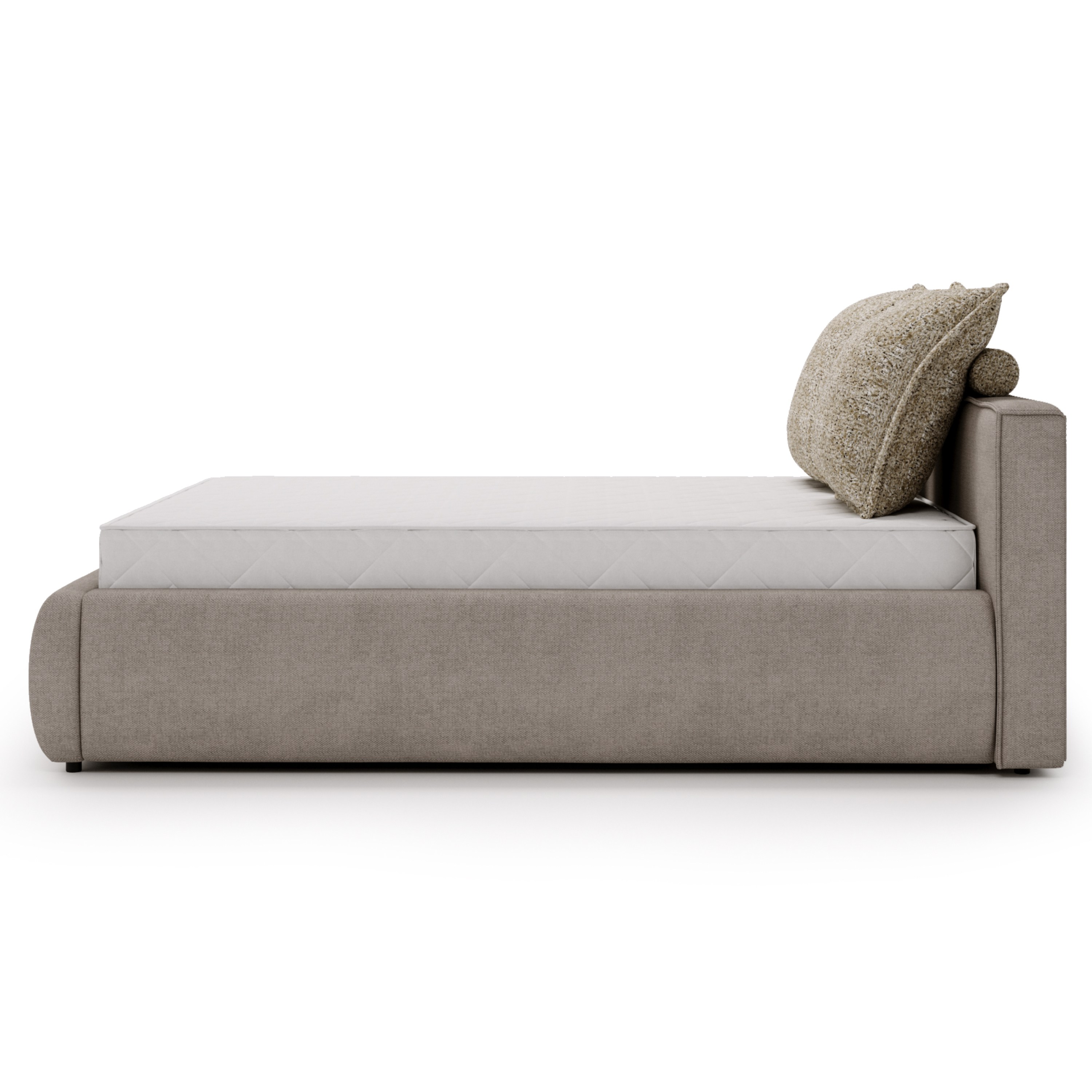 Její konstrukce je čalouněna příjemnou strukturovanou tkaninou v neutrálním barevném provedení, které snadno sladíte s dalším vybavením místnosti. Čelo postele je doplněno 2 odnímatelnými polštářky, které vám zpříjemní večerní čtení či jiný způsob relaxace.