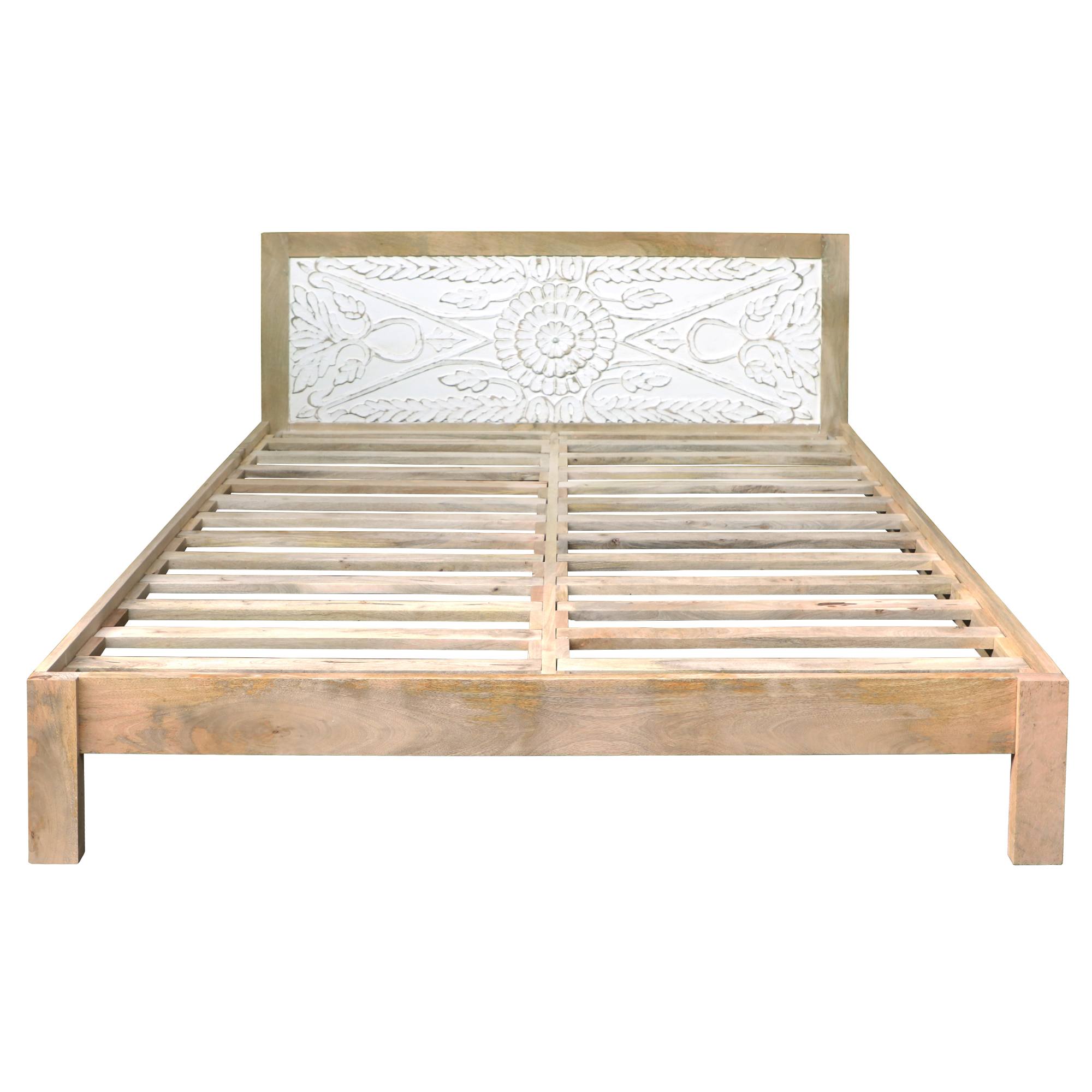 Její pevná a stabilní konstrukce je vyrobena z masivního mangového dřeva v přírodním zpracování bez povrchové úpravy. Přirozená kresba dřeva a přiznané nedokonalosti dělají každý kus nábytku jedinečným. Díky použitému materiálu je postel nejen vysoce pevná, ale také odolná proti vodě, udržitelná a má dlouhou životnost. Součástí konstrukce je masivní laťový rošt, ale matraci je nutné dokoupit samostatně.