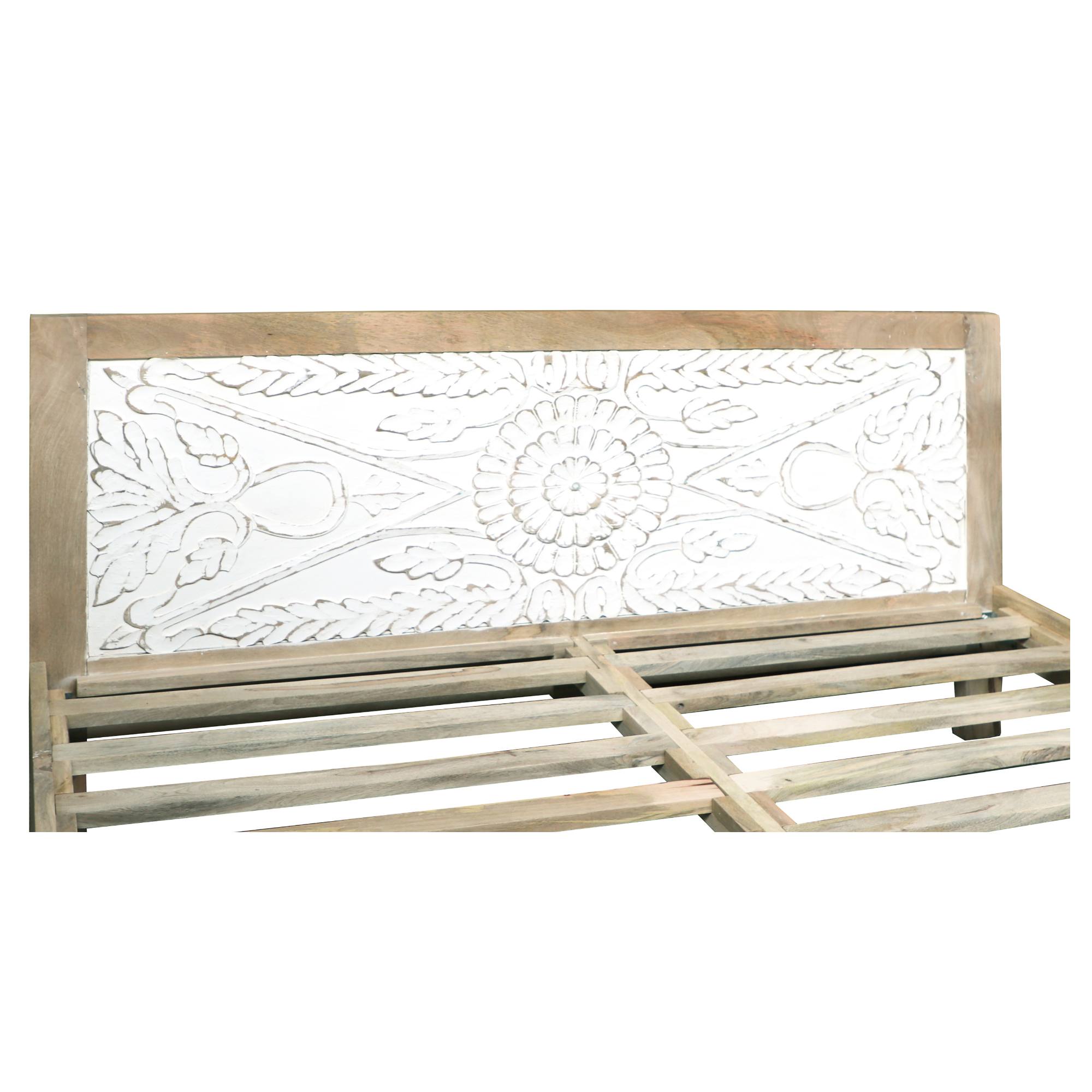 Elegantní manželská postel SITAK vyvedená ve stylové kombinaci přírodního odstínu a bílé barvy dodá vaší ložnici přírodní, orientální nádech.