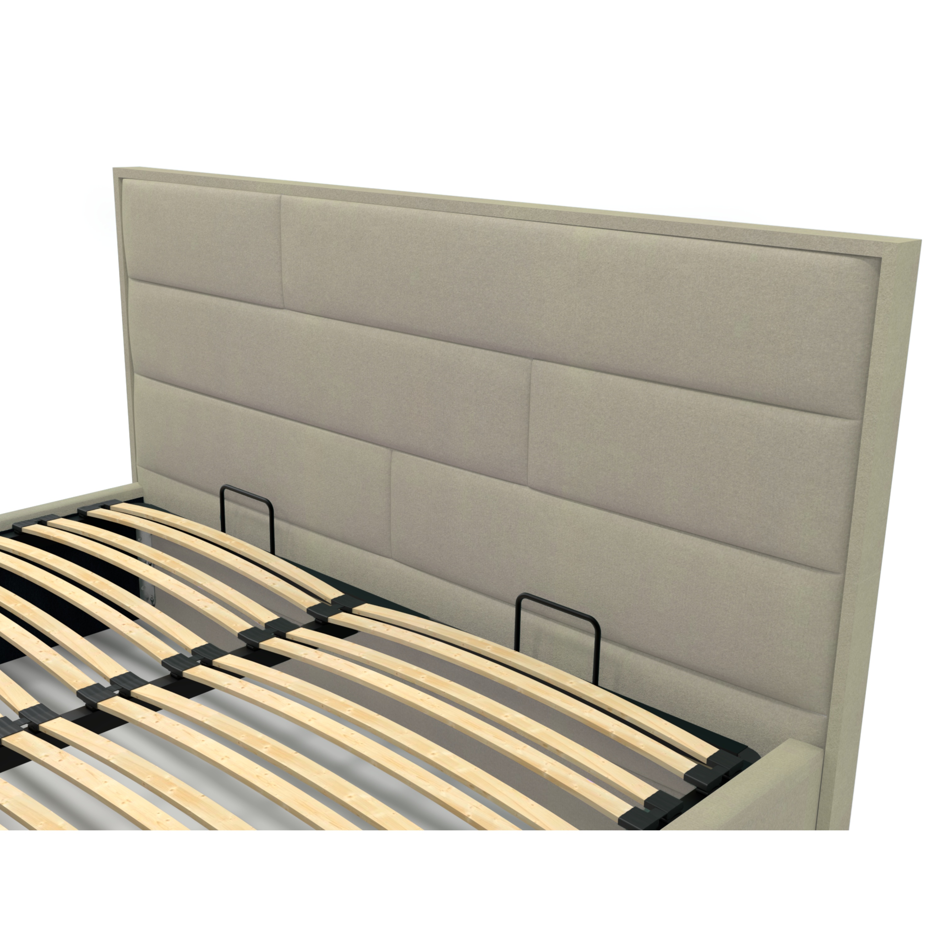 Dominantním prvkem postele je vysoké čelo, které mimo estetické funkce umožňuje dopřát si komfortní opření během relaxace. Postel je dodávána včetně lamelového roštu zasazeného do kovového rámu. Čelní výklop potom umožňuje snadný přístup do úložného prostoru pod ložnou plochou.
