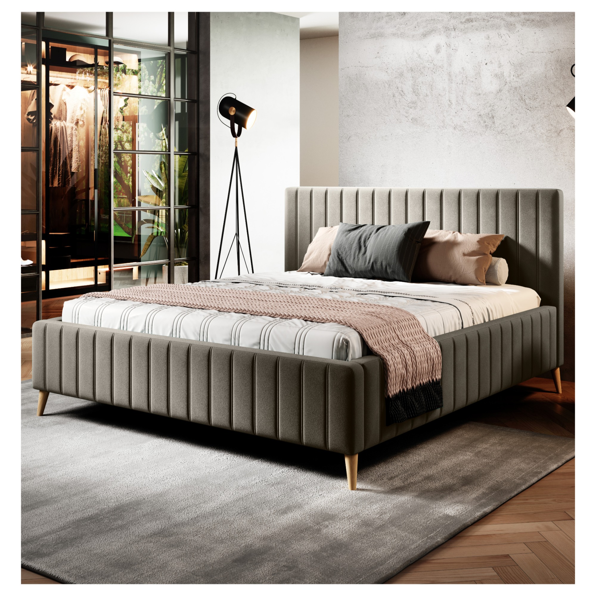 Dvoulůžková postel SAGA 1 představuje kombinaci moderního designu s retro nádechem a s praktickými prvky. Postel je čalouněná příjemnou látkou. Čelo postele je elegantně prošívané a nabízí možnost se pohodlně opřít. Stabilitu postele zajišťují nožičky z masivního dřeva.