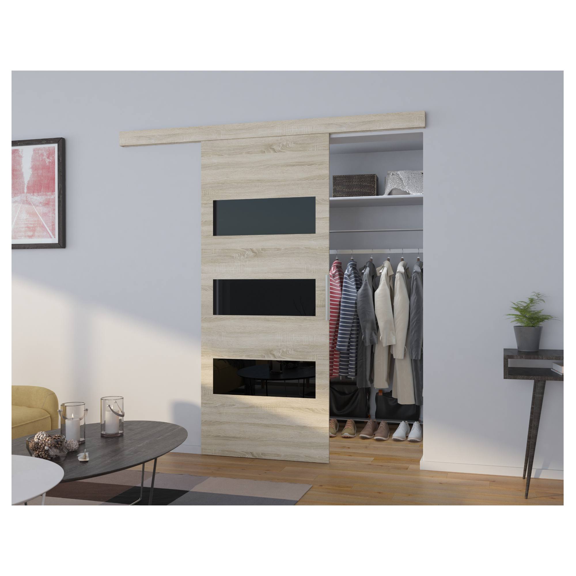 Posuvné dveře ARES 106 - dub sonoma/černá, 106x205 cm