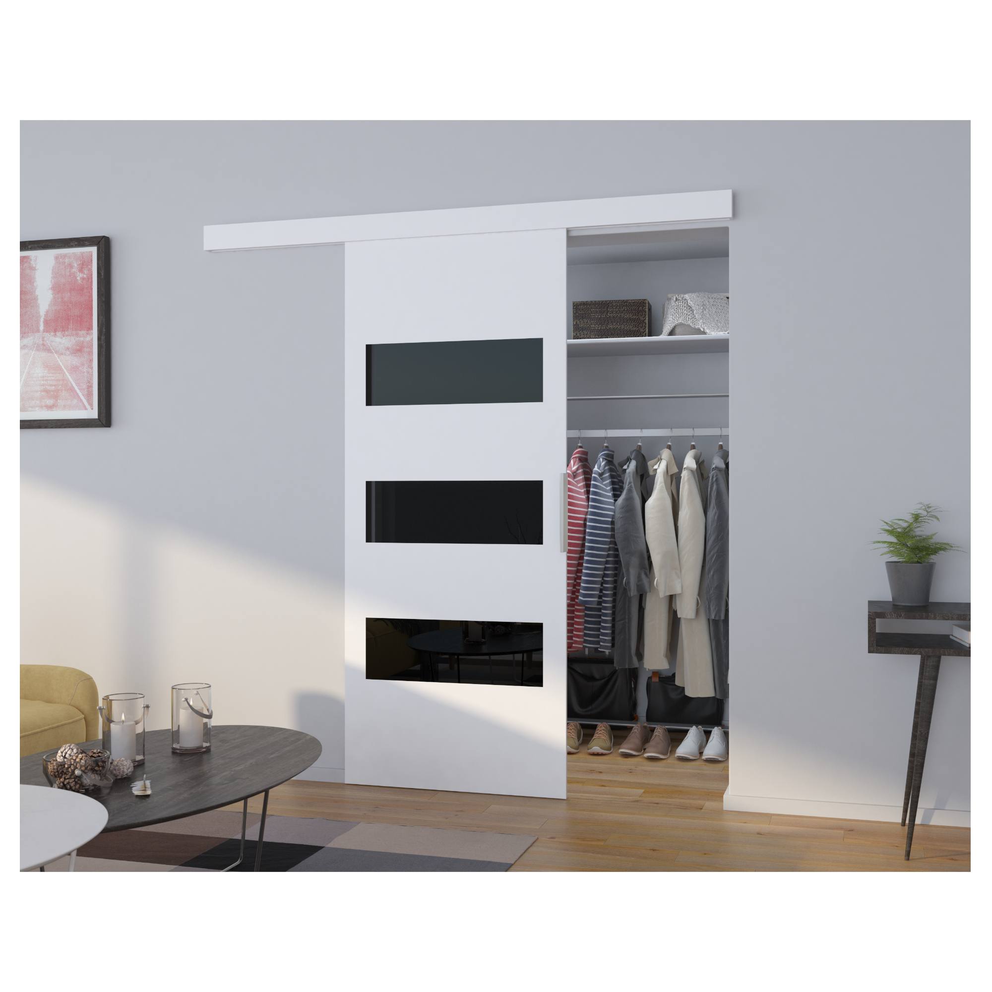 Posuvné dveře ARES 96 - bílá/černá, 96x205 cm