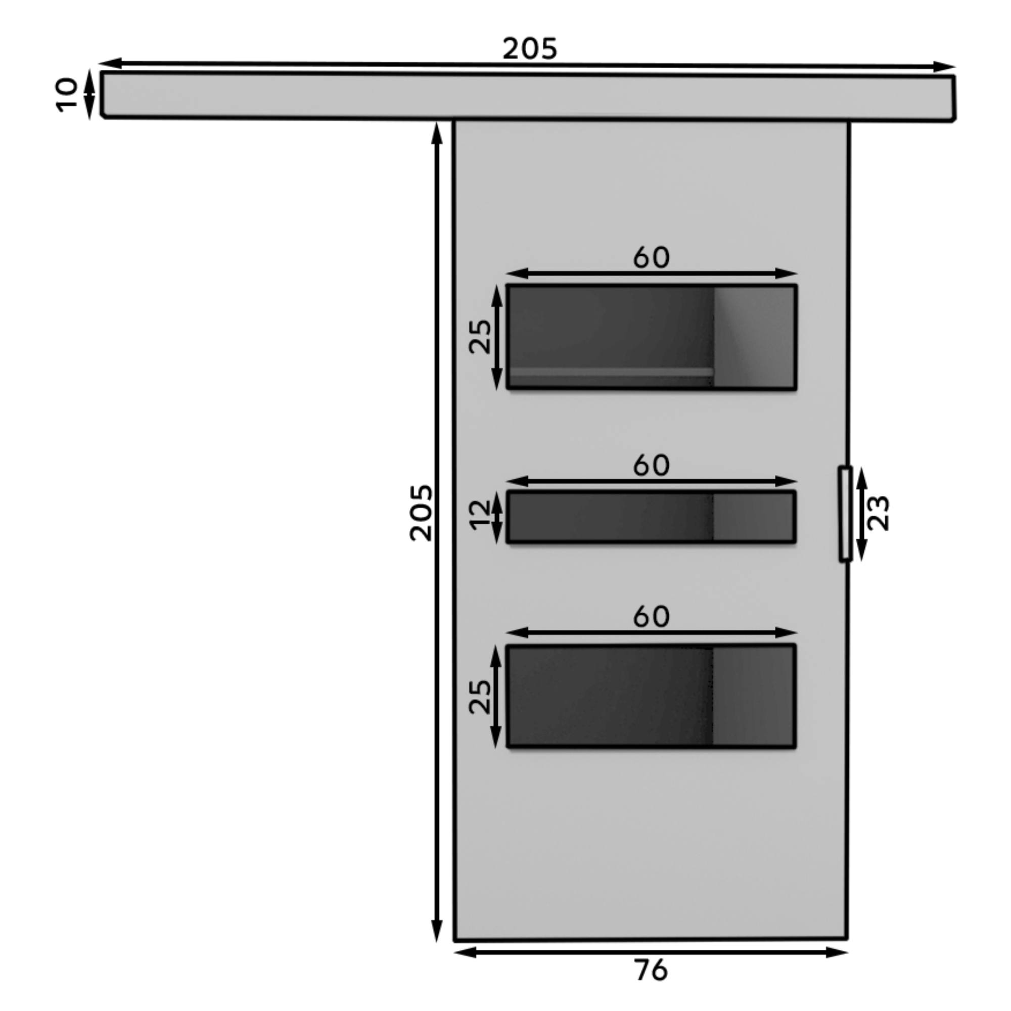 Posuvné dveře CENTO 76 - šedá/černá, 76x205 cm