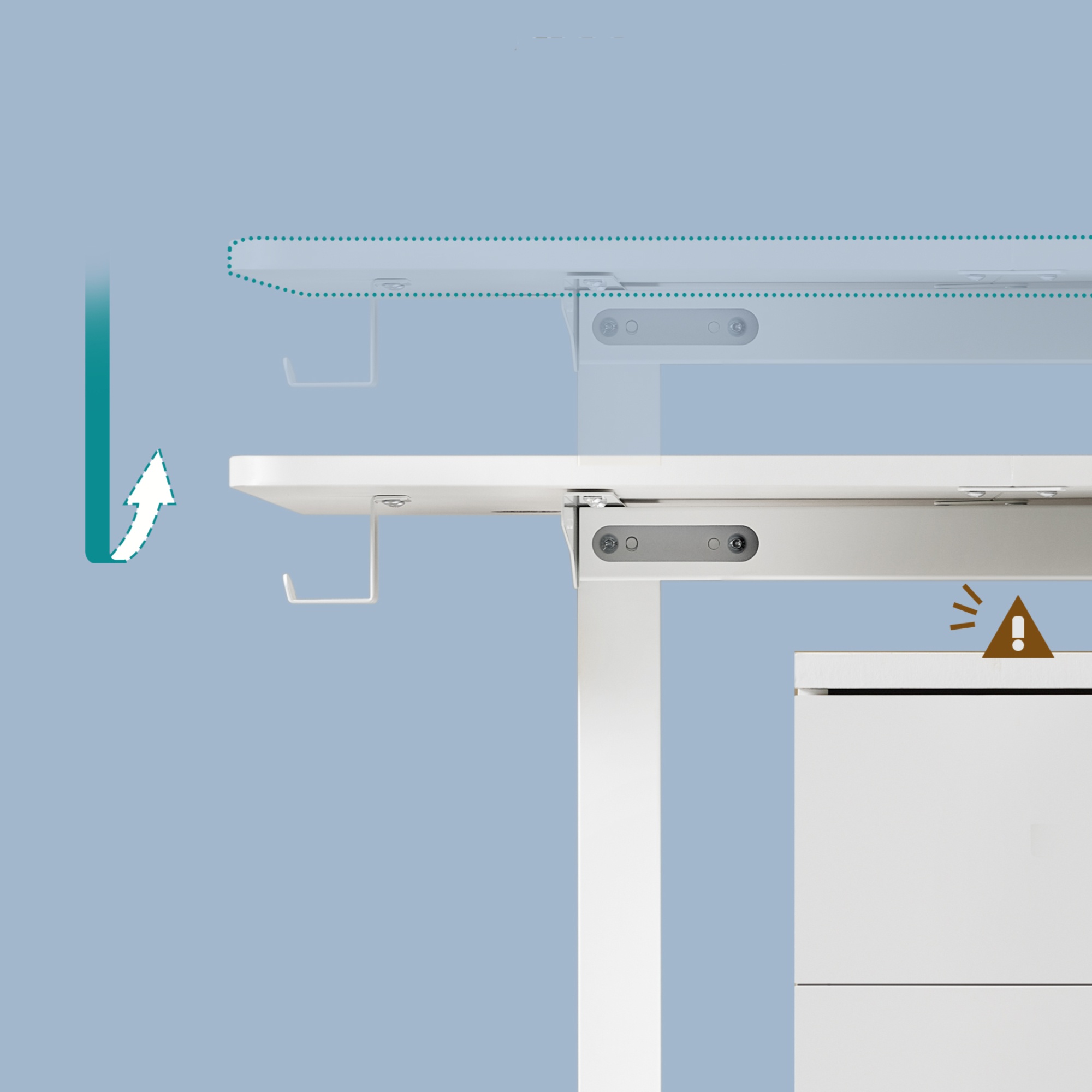 - Doplňující poznámka: Stůl nestavte přímo ke zdi. Všechny elektrické součásti udržujte v suchu. Elektrickou funkci nevyužívejte v nadbytečně dlouhých intervalech.