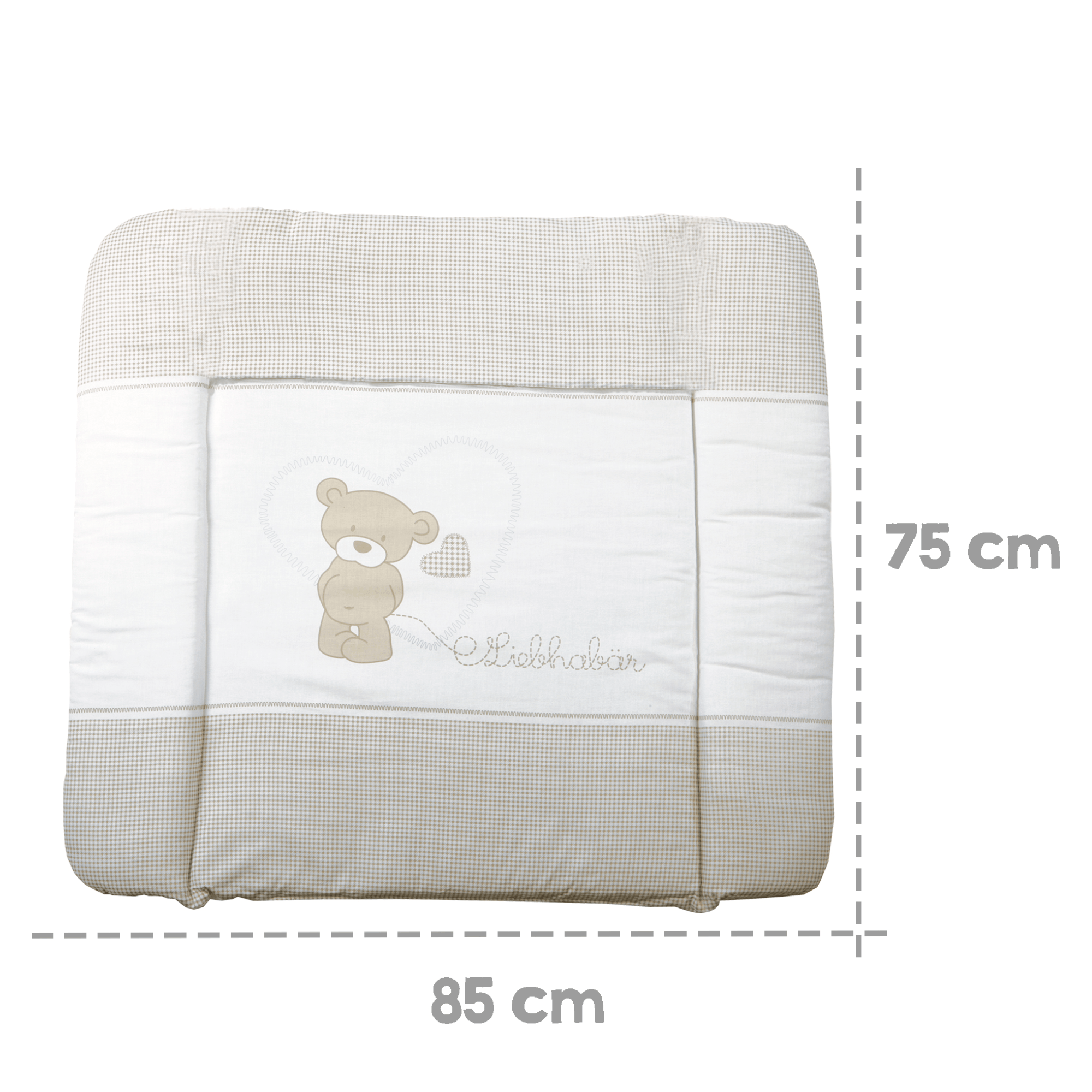 Podložka s jednoduchým designem v neutrálních barvách je vyrobena z materiálu kombinujícího polyester a bavlnu, který je příjemný k pokožce. Potažený je certifikovaným polyuretanem bez PVC, ftalátů a dalších škodlivých látek, který zároveň vytváří snadno udržovatelný povrch. Zvýšené okraje zajišťují větší bezpečí a jistotu během přebalování vám i vašemu miminku.