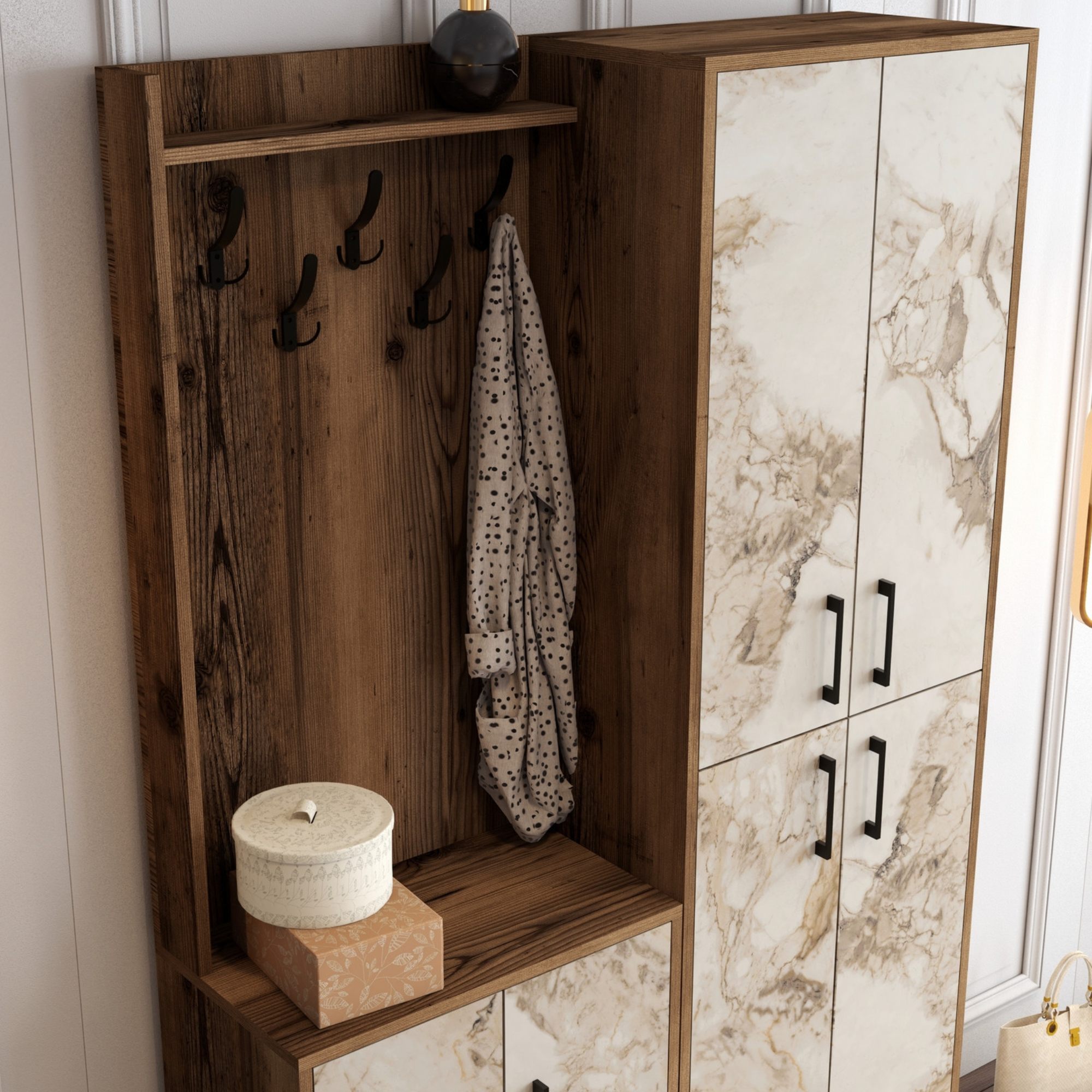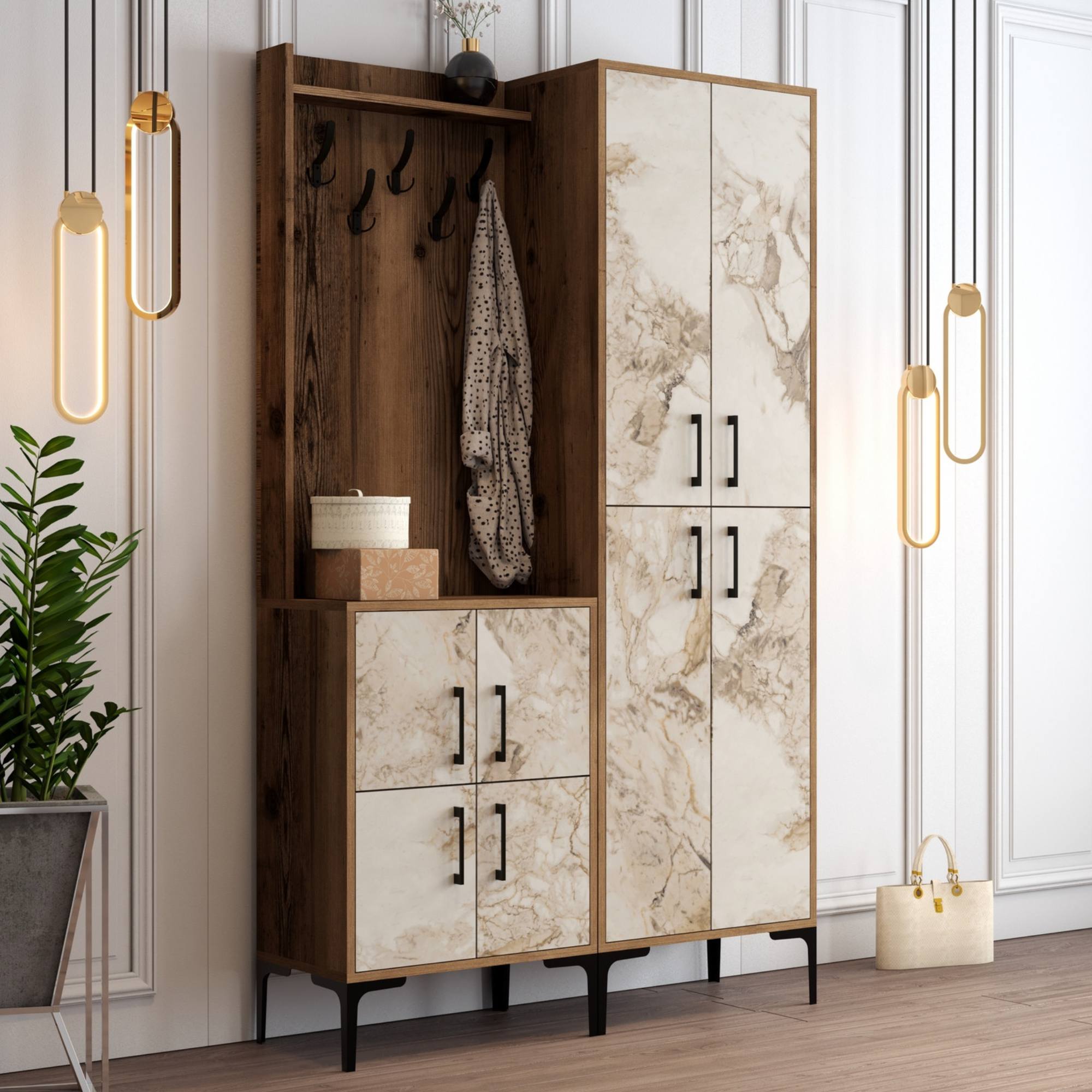 Předsíňová sestava BERLIN 2 - ořech/mramor