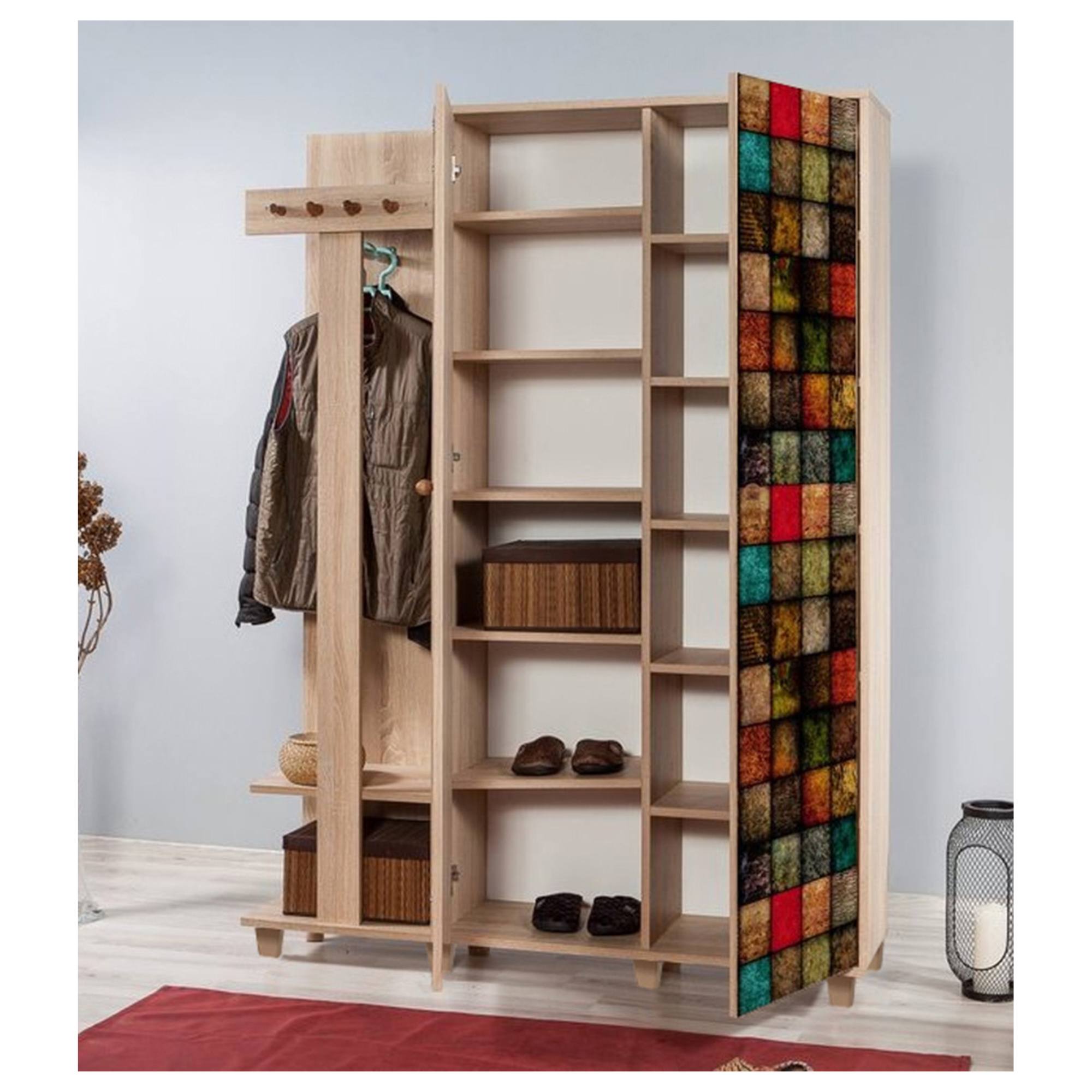 Předsíňová sestava GARMANTO 5, která pomůže udržet ve vaší předsíni pořádek, zaujme na první pohled svým nadčasovým vzhledem. Její dvířka zdobí barevný vzor, který jí dodává nádech originality.