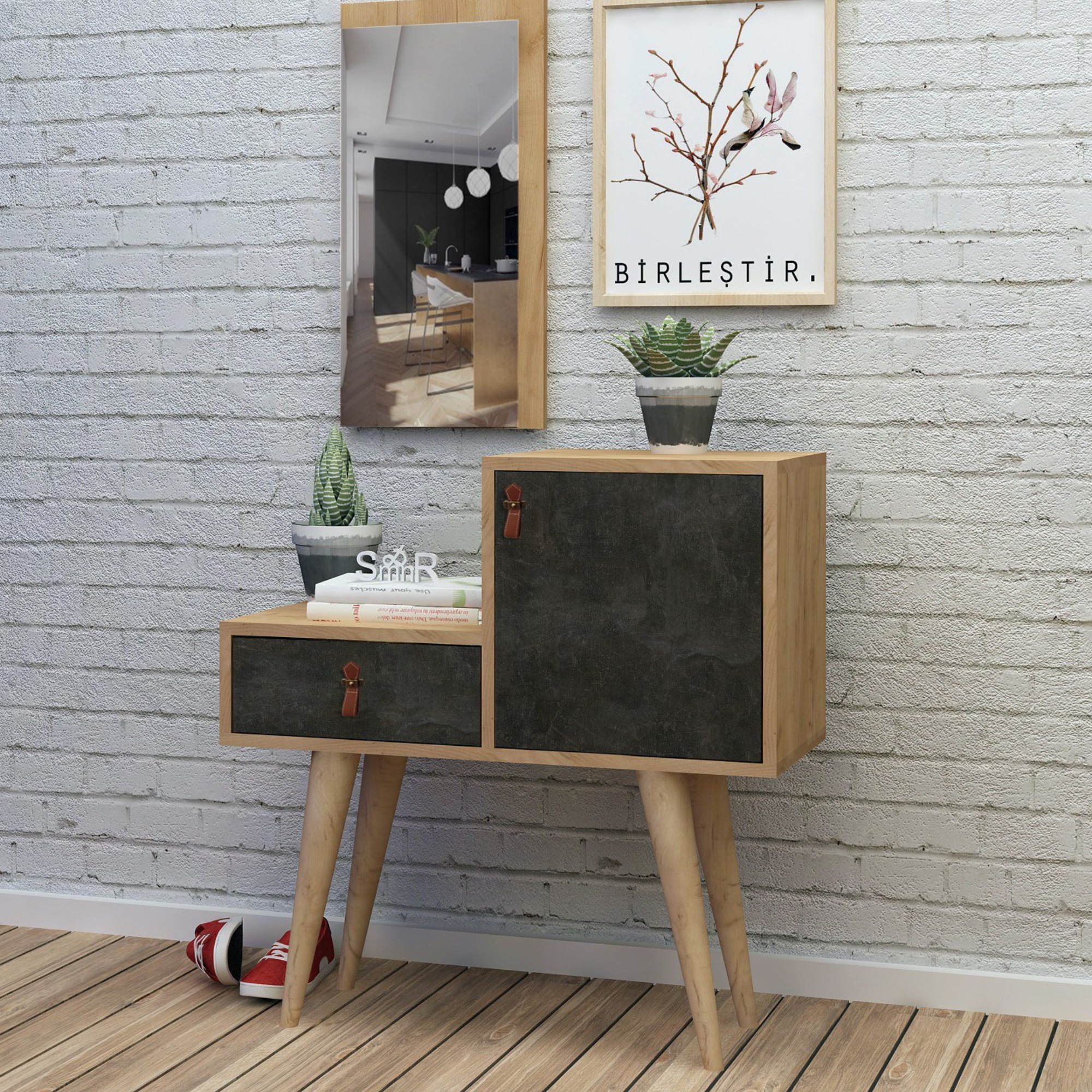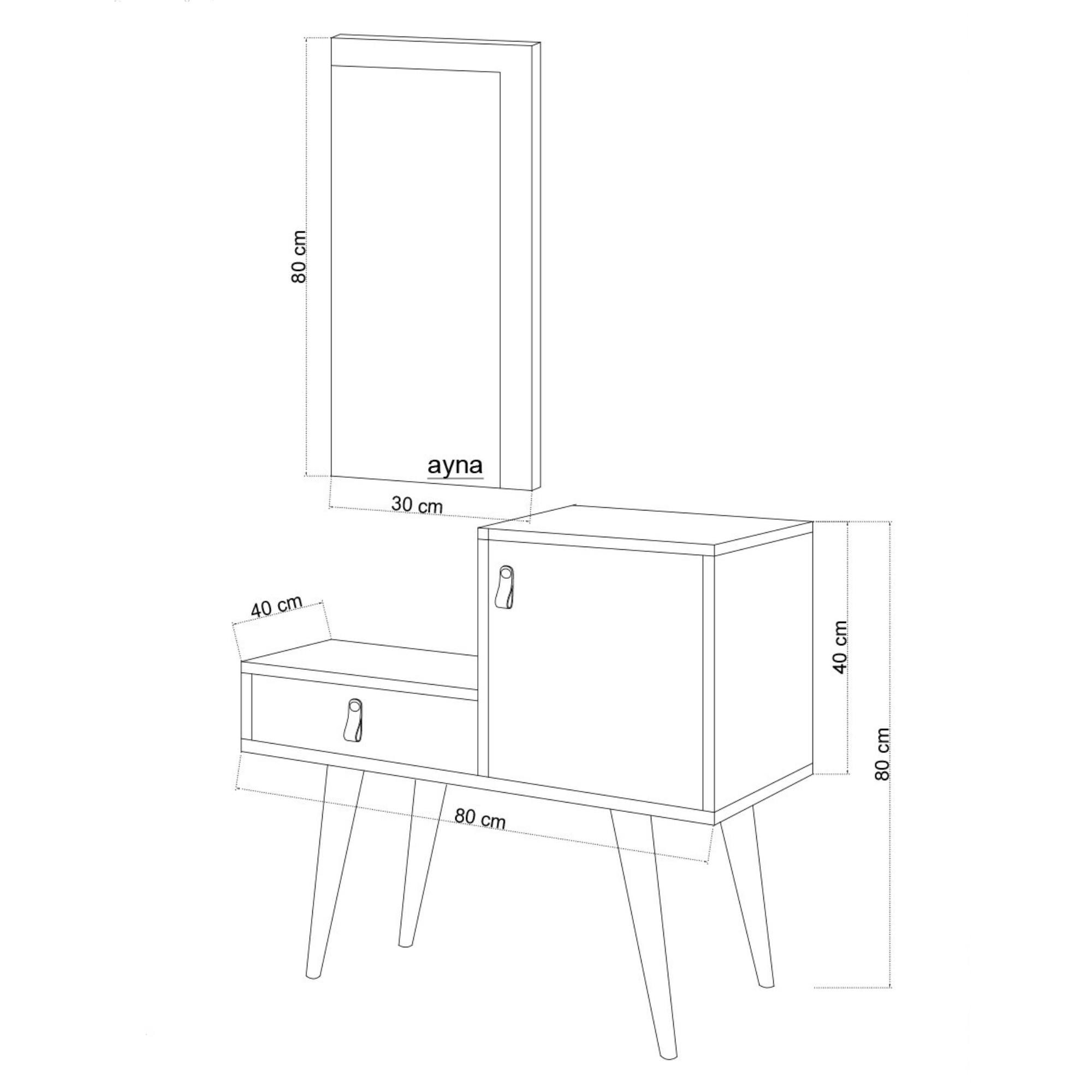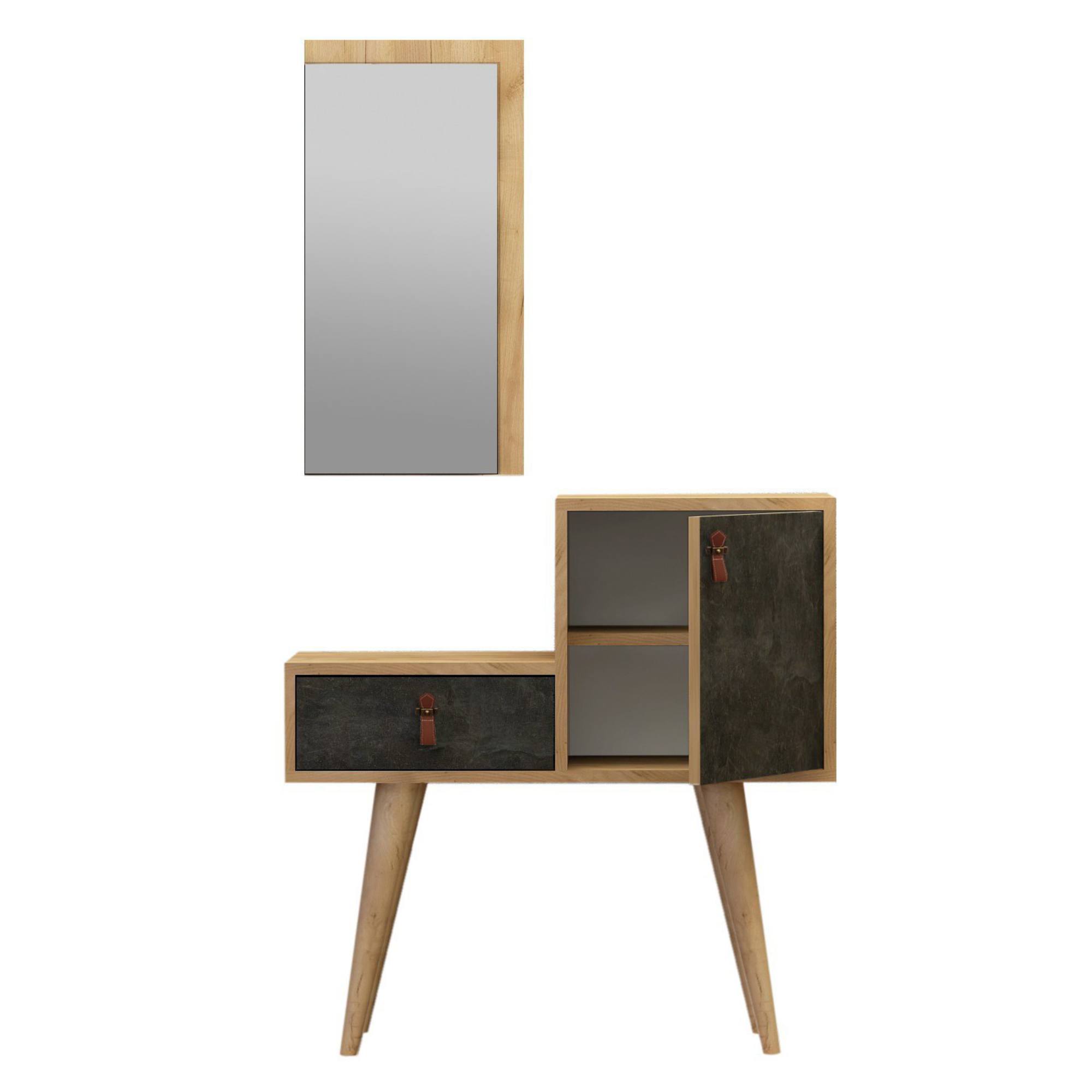 Botník nabízí dostatek úložného prostoru. Jeho součástí je nejen 1 vložená police, ale i 1 zásuvka. Aby se s dvířky i zásuvkou dobře manipulovalo, jsou vybaveny úchyty ze syntetické kůže. Botník má vysoké nohy, které usnadňují úklid pod ním. Zrcadlo vám zas umožní vždy před odchodem z domova zkontrolovat váš vzhled.