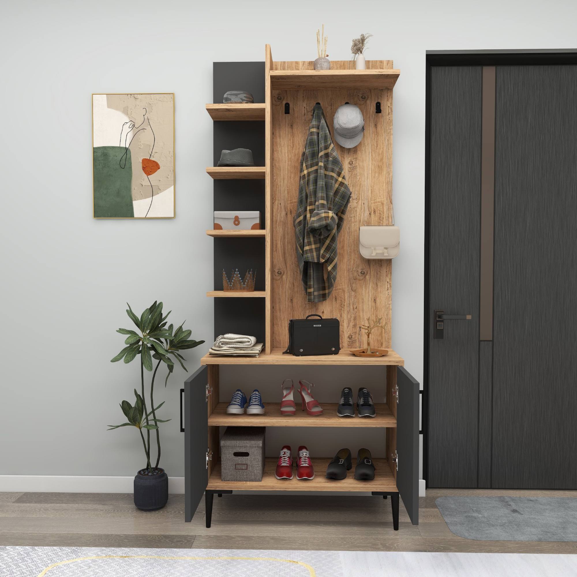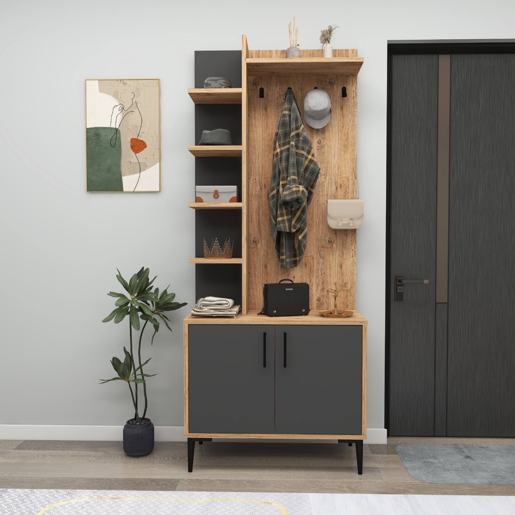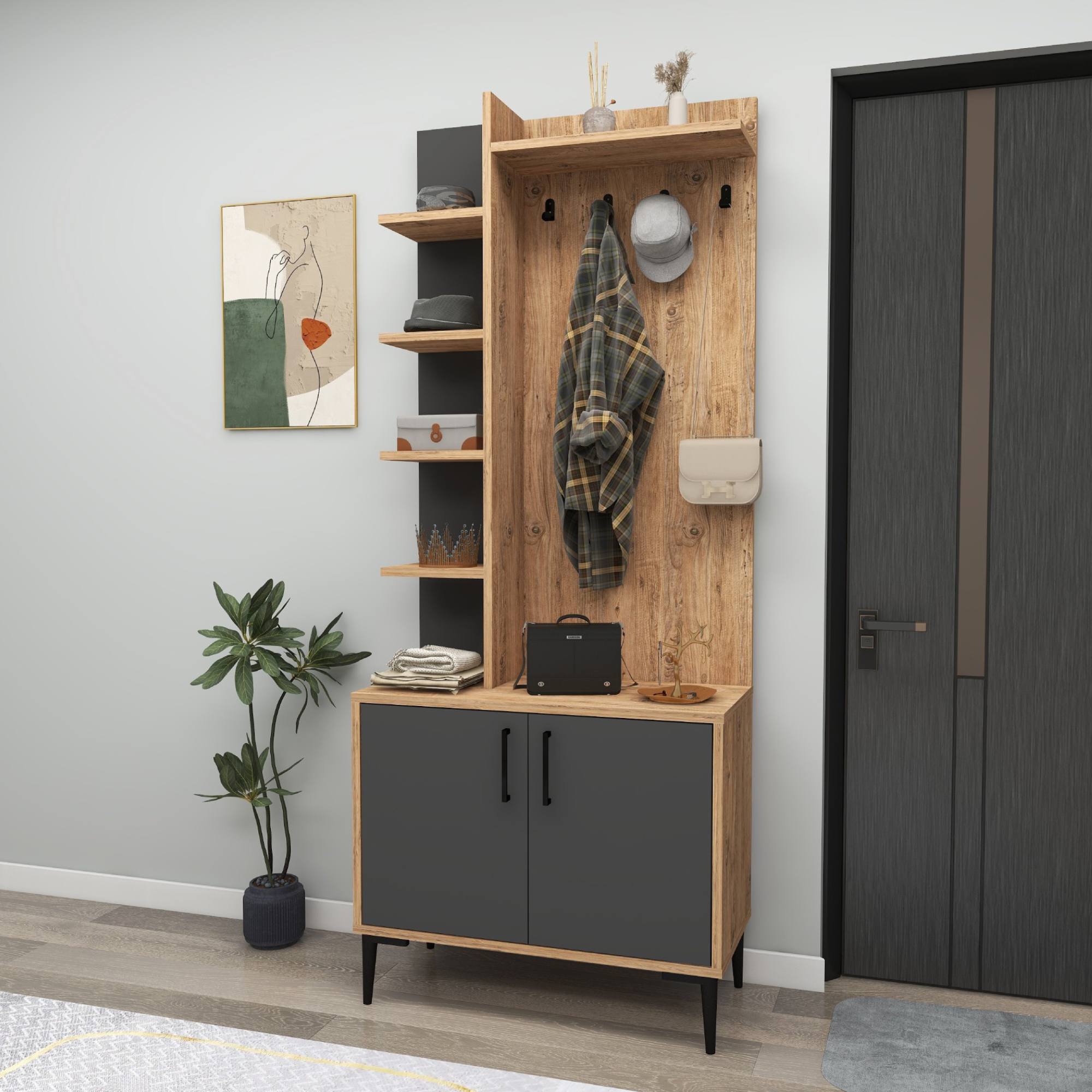 Předsíňová sestava JULENDOR - antracitová/borovice