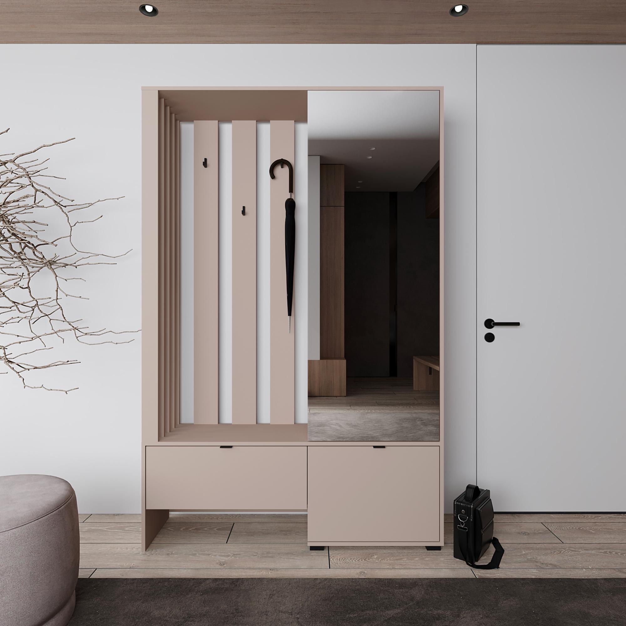 Sestava nabízí dostatek úložného prostoru. Za jejími dvířky se nacházejí nejen 2 vložené police, ale i 1 šatní tyč. Nechybí ani 3 háčky a zrcadlová plocha, v níž si můžete vždy před odchodem z domova zkontrolovat váš vzhled.