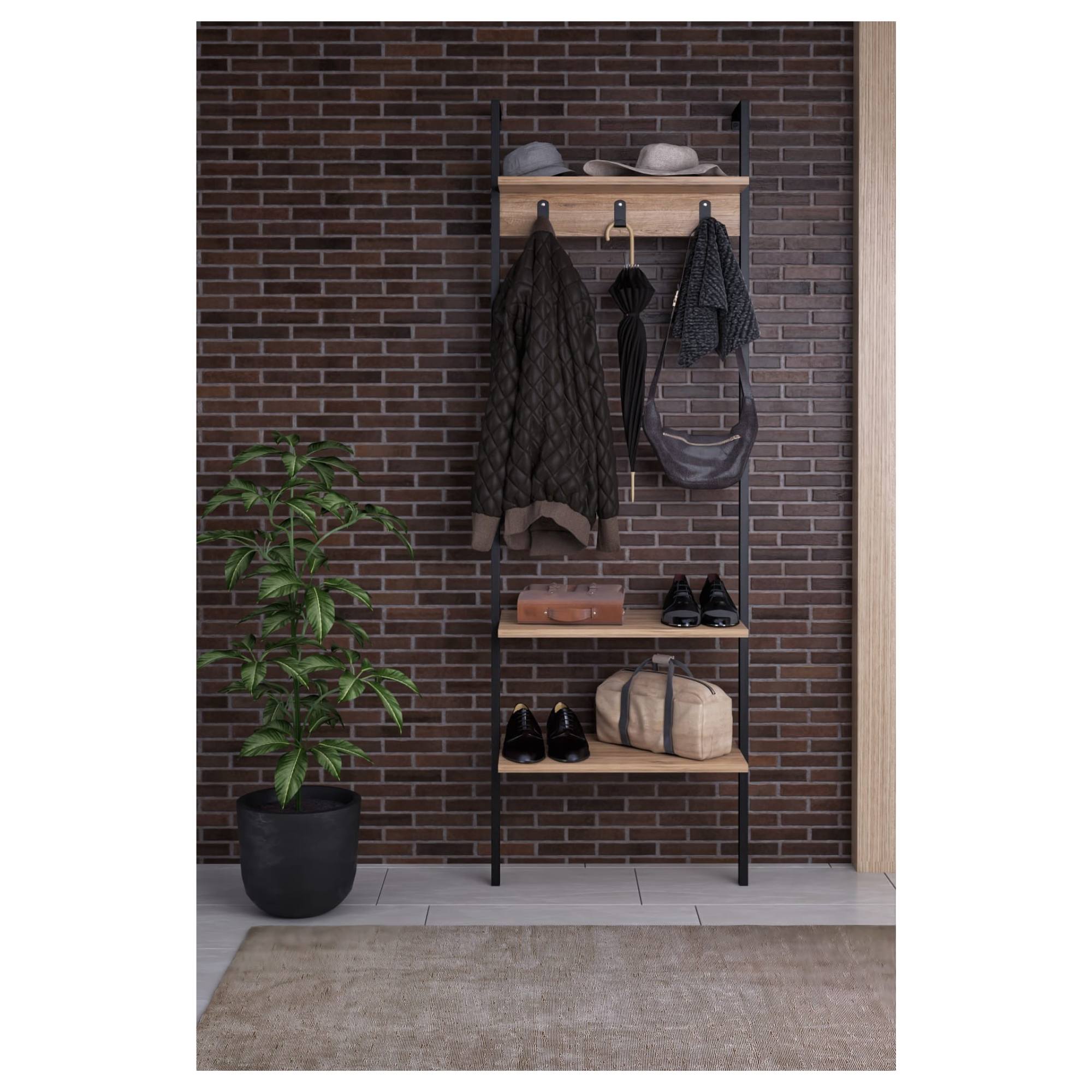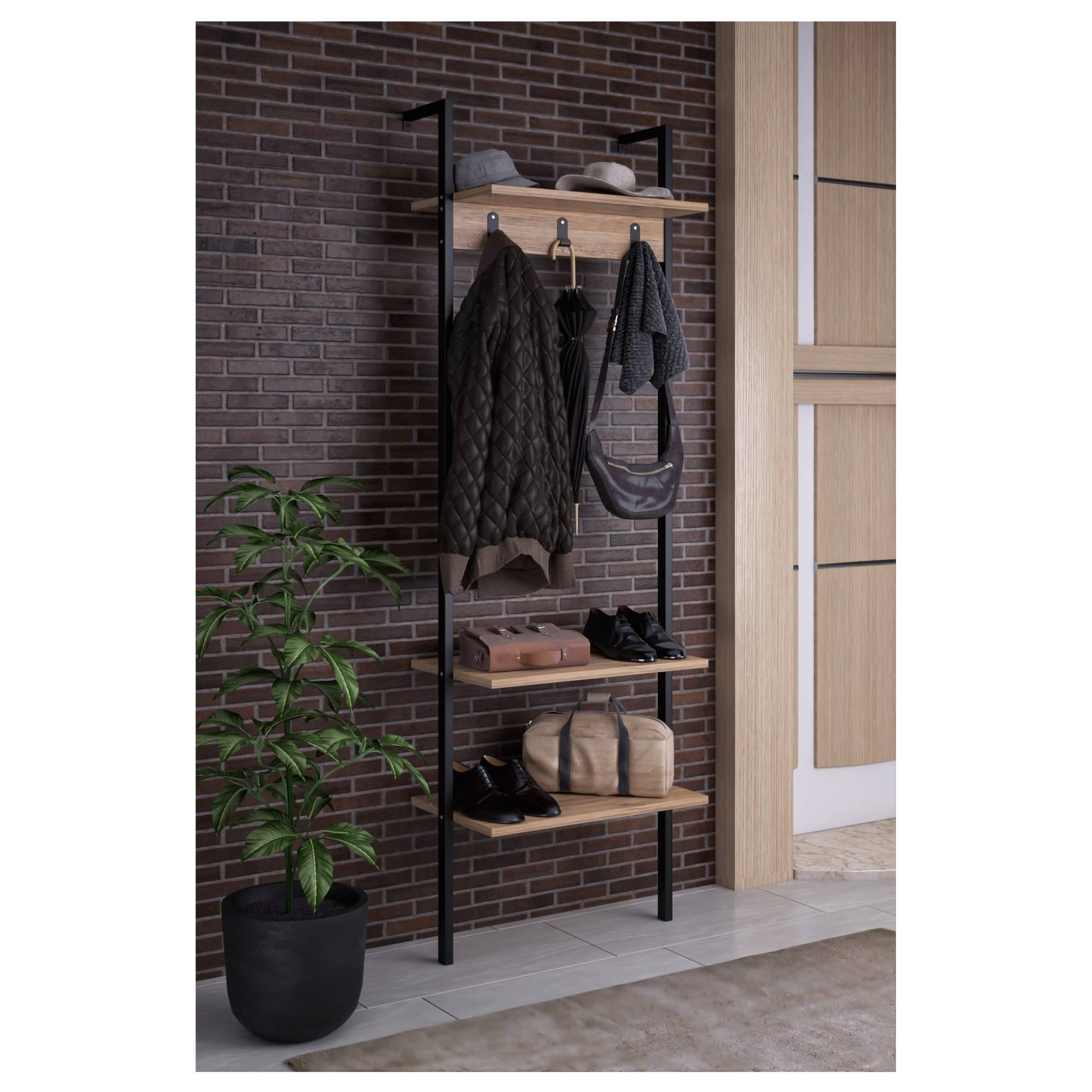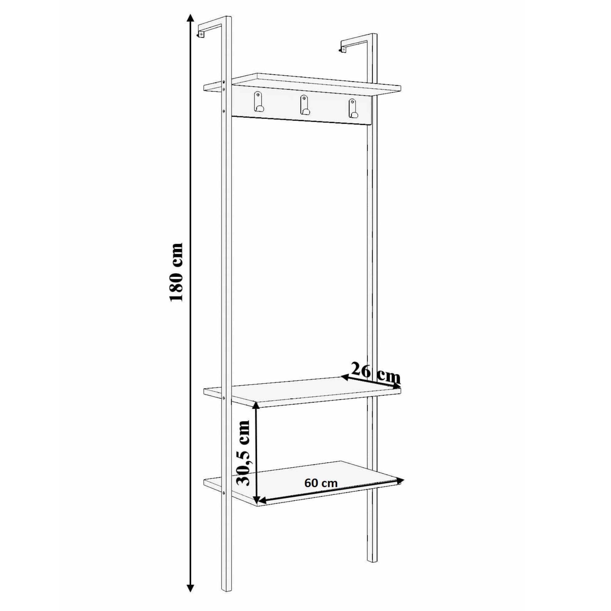 Pokud jde o odkládací prostor, nabízí sestava 3 vložené police. Nechybí ani 3 háčky, na které si můžete pověsit kabáty, bundy i módní doplňky.