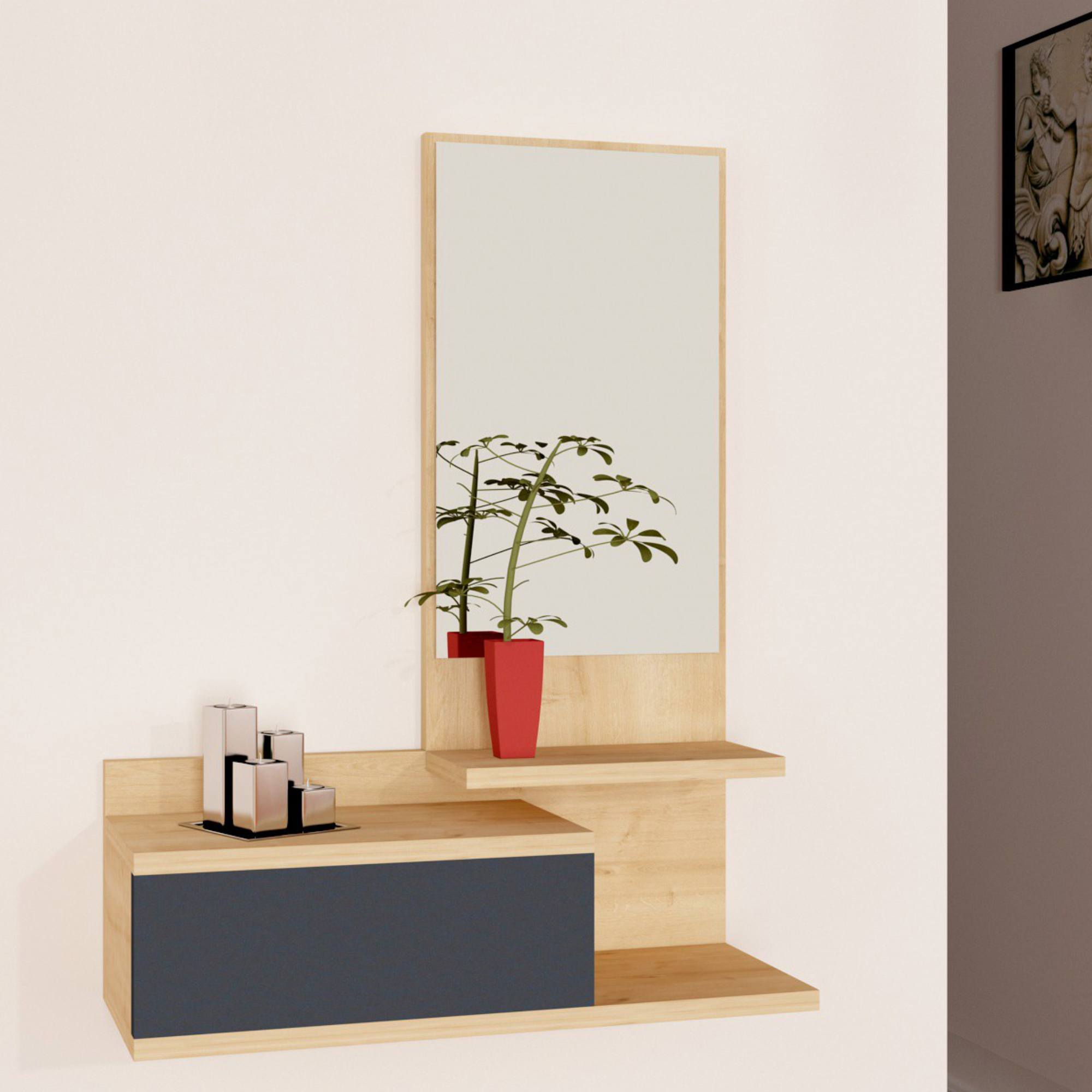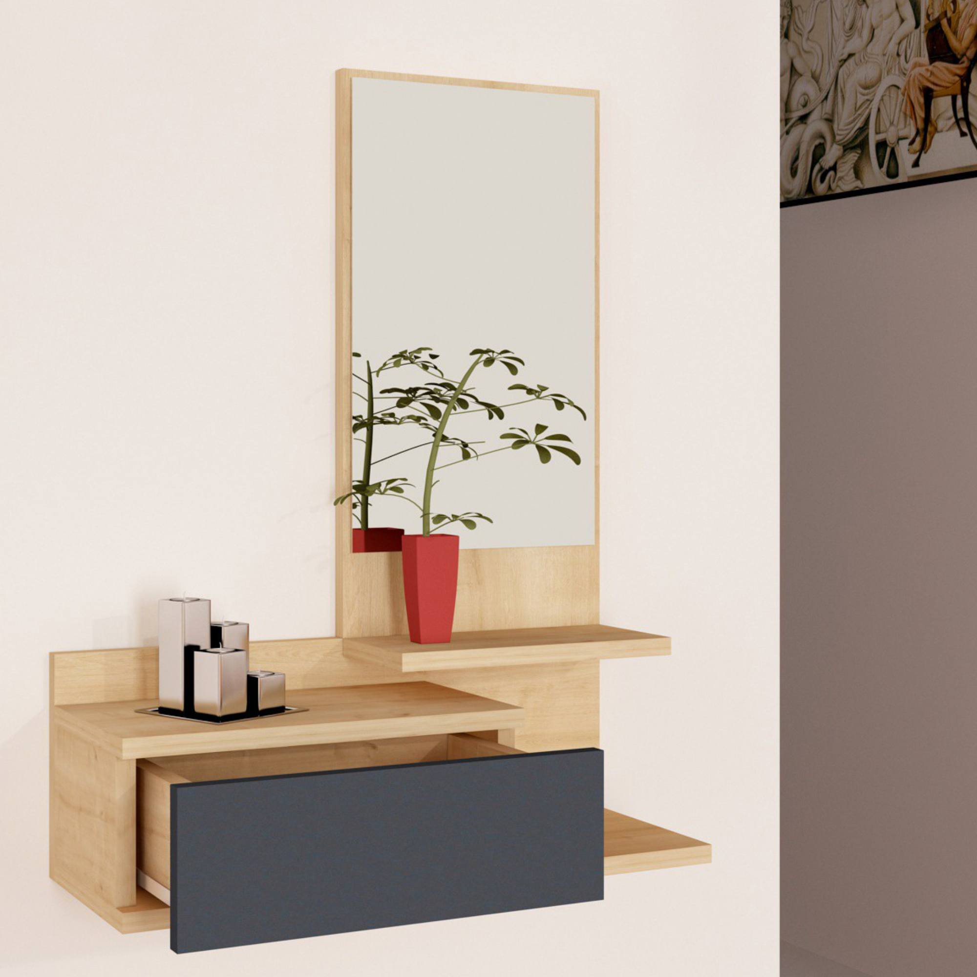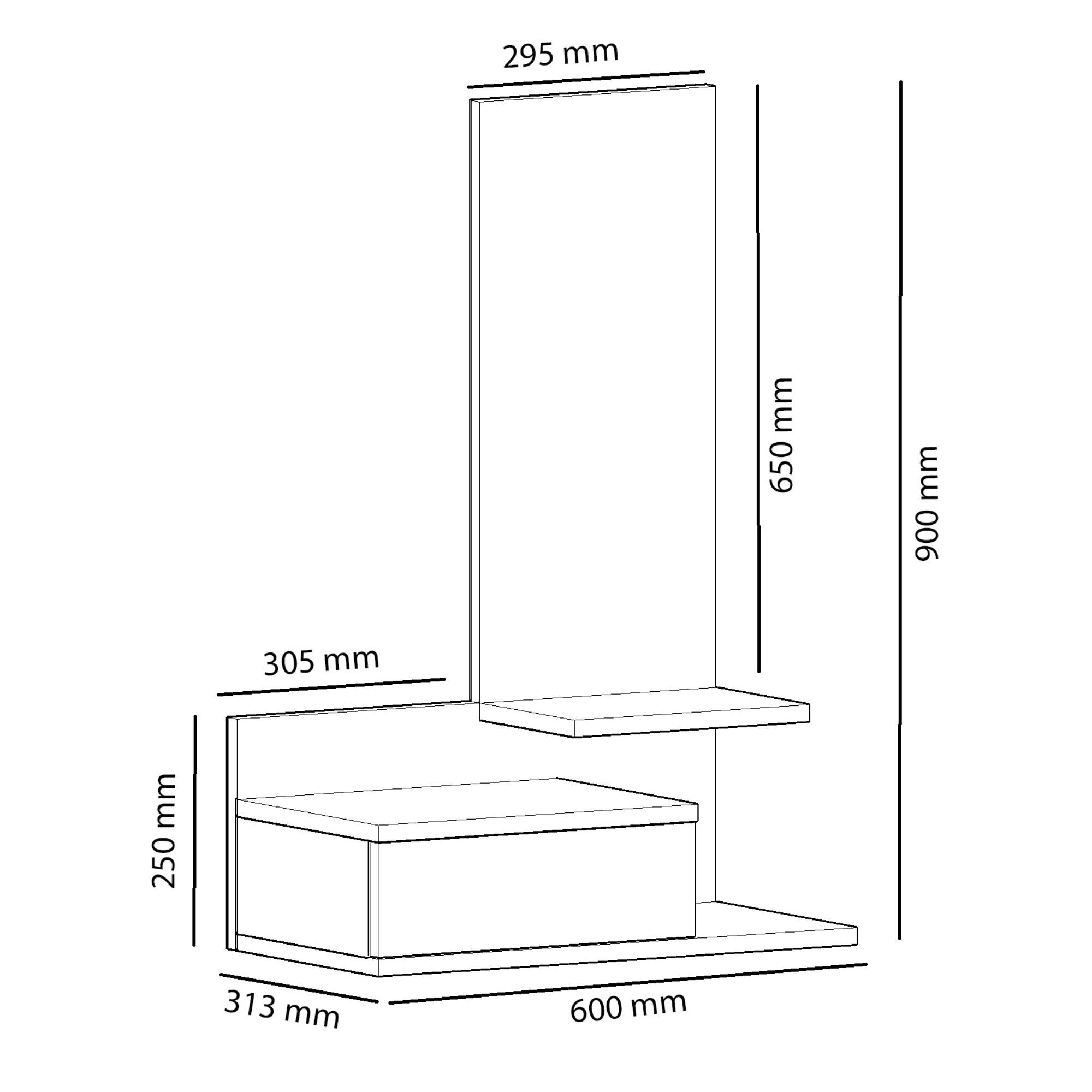 Její součástí je nejen 1 zásuvka, ale i 1 police. Nechybí ani zrcadlo, v němž si vždy před odchodem z domova můžete zkontrolovat váš vzhled.