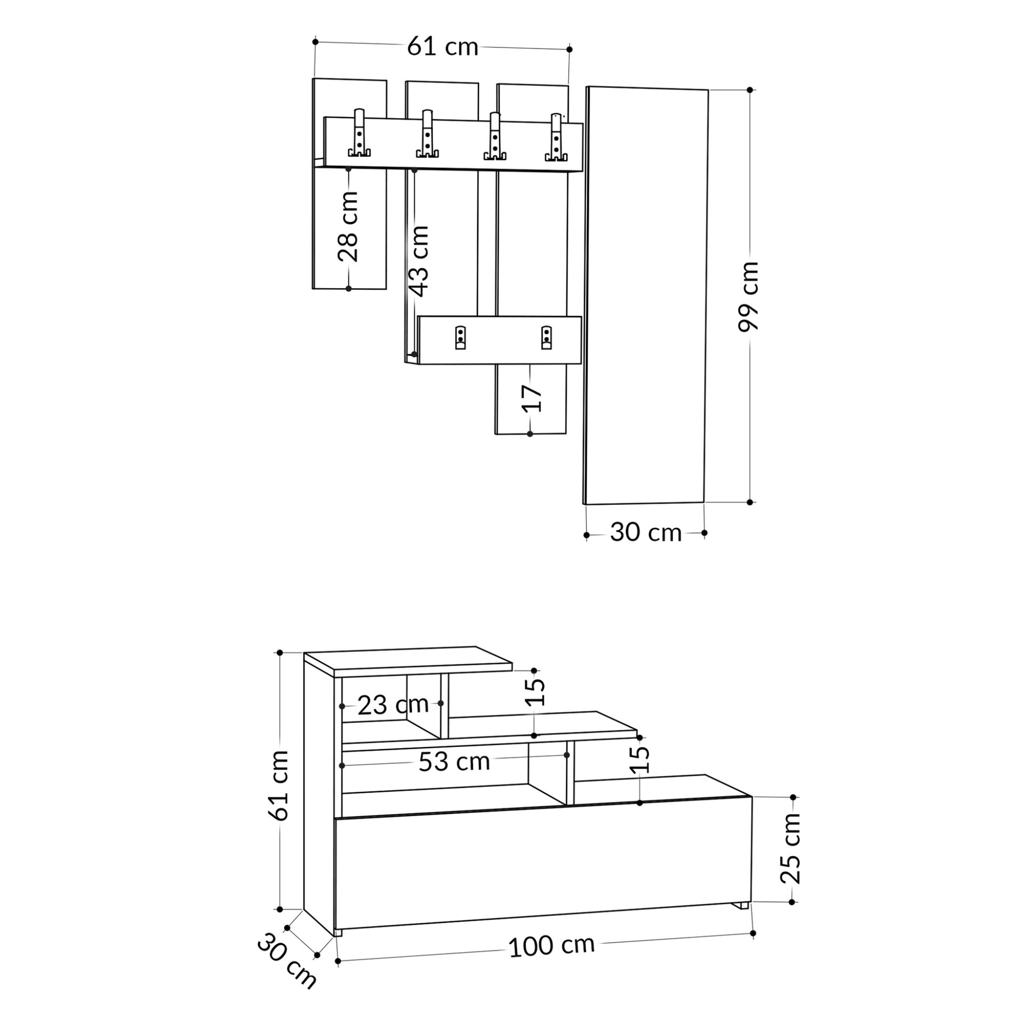 - Skládá se z: Botník, Nástěnný věšák, Zrcadlo
