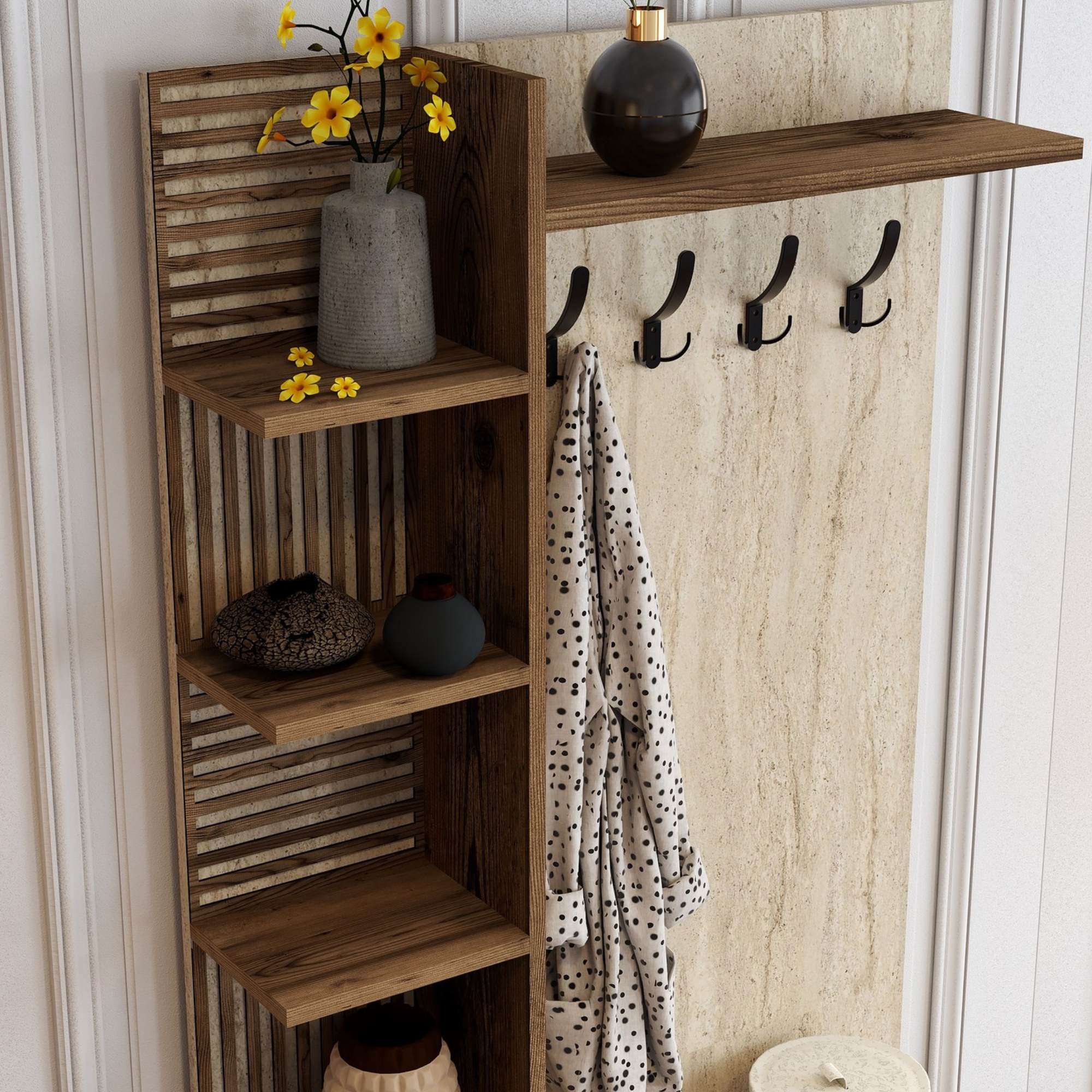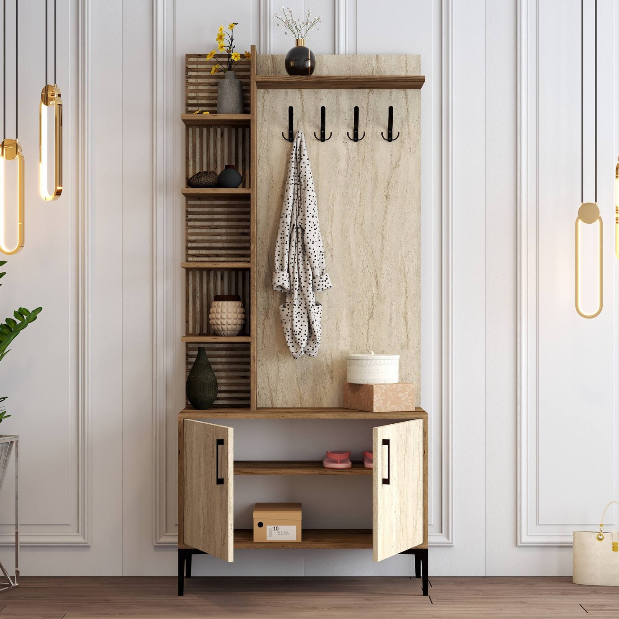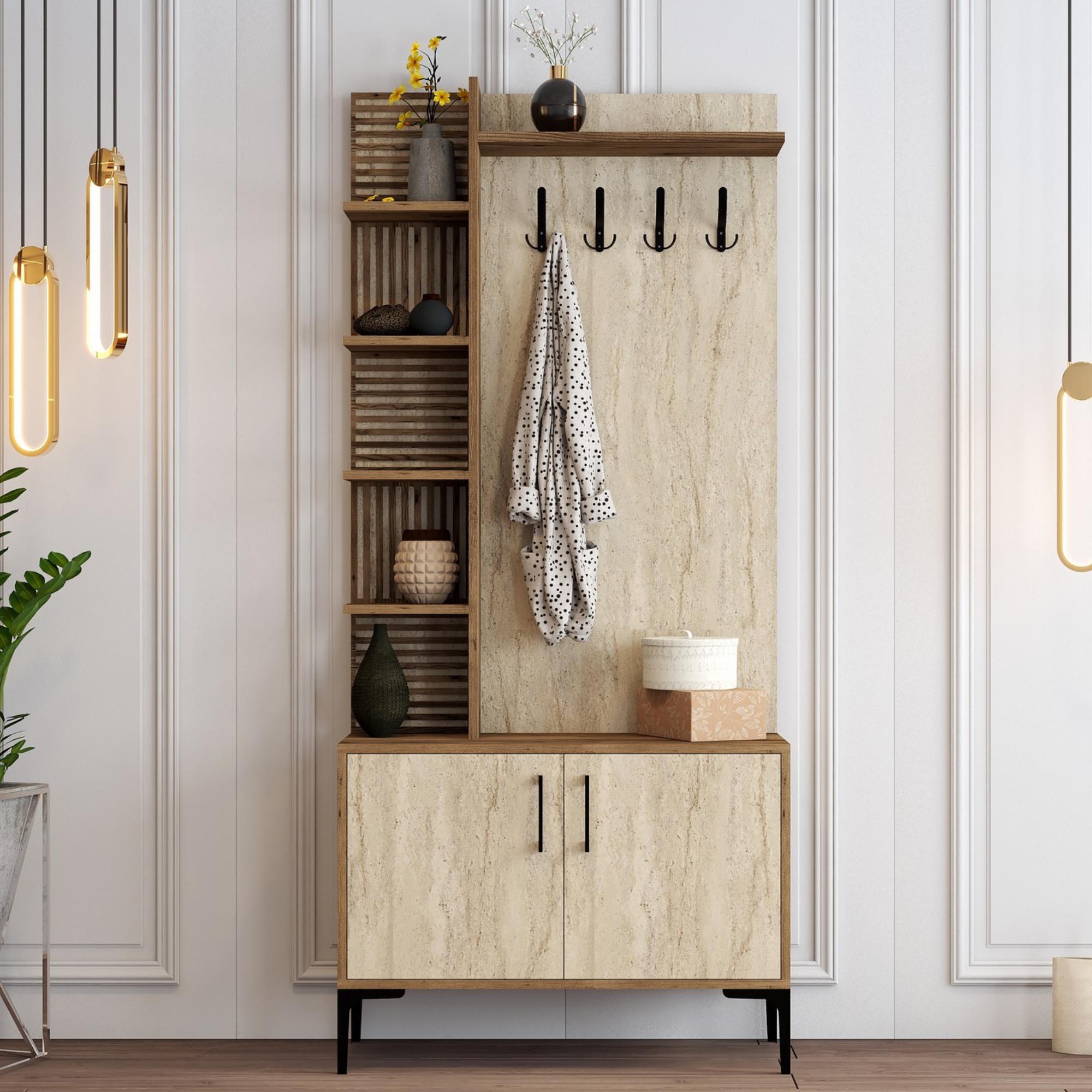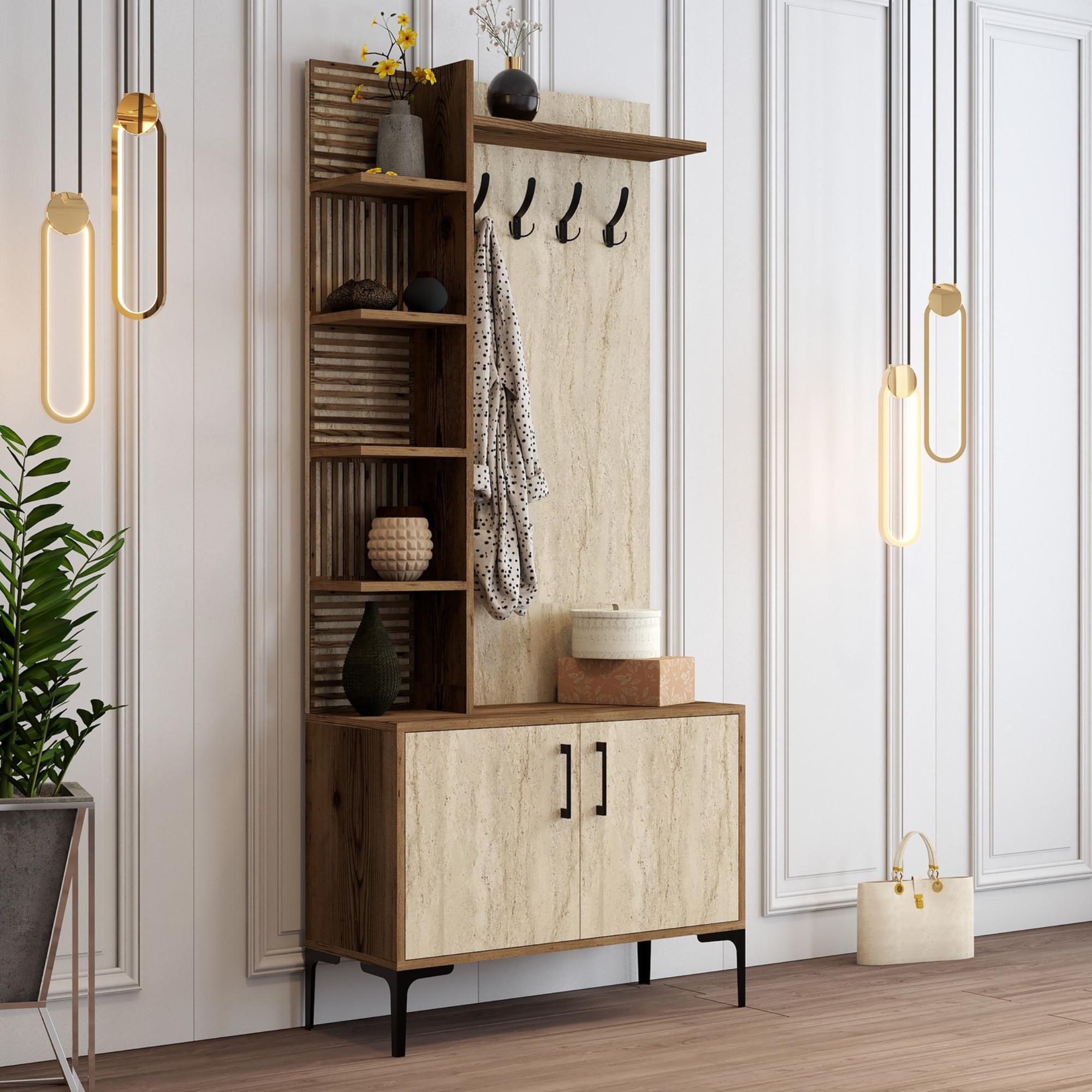 Předsíňová sestava VIYAN 1 - ořech/travertin
