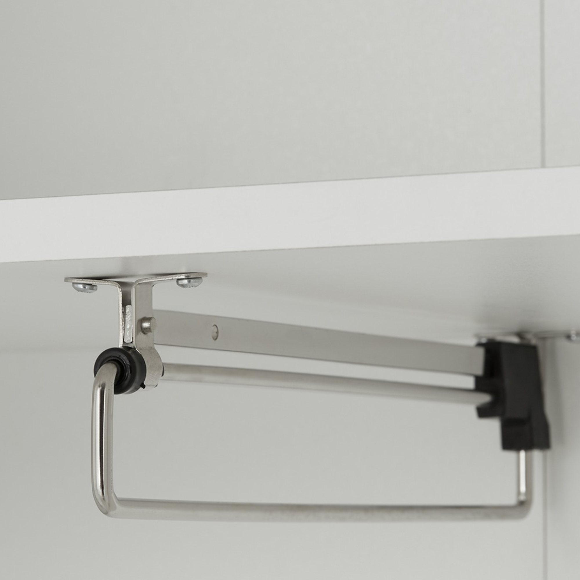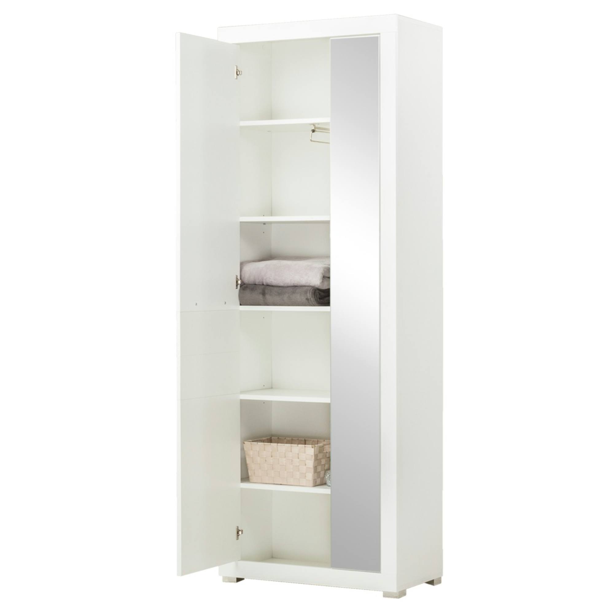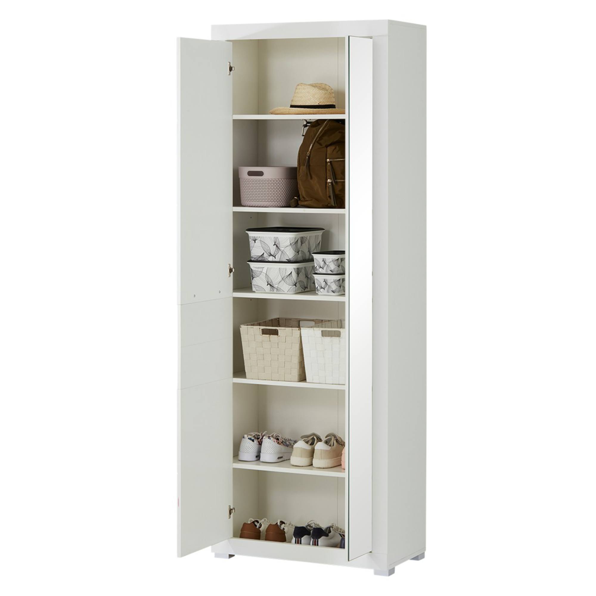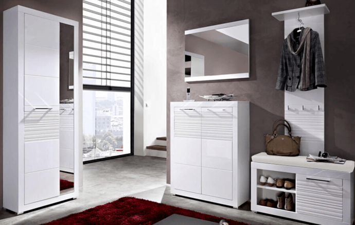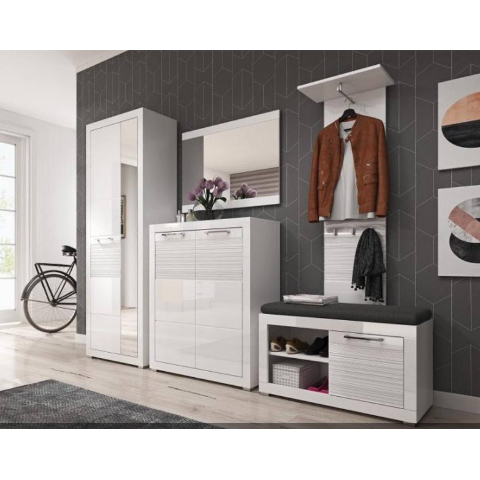 Univerzální barevné provedení ve vysokém lesku v kombinaci se zrcadlem opticky prosvětlí místnost. Krytý úložný prostor z polic a výsuvné šatní tyče poskytnou zázemí pro všechny ty boty, případně bundy a kabáty. Nechybí ani zrcadlo, takže při odchodu můžete omrknout, zda je váš outfit v pořádku.