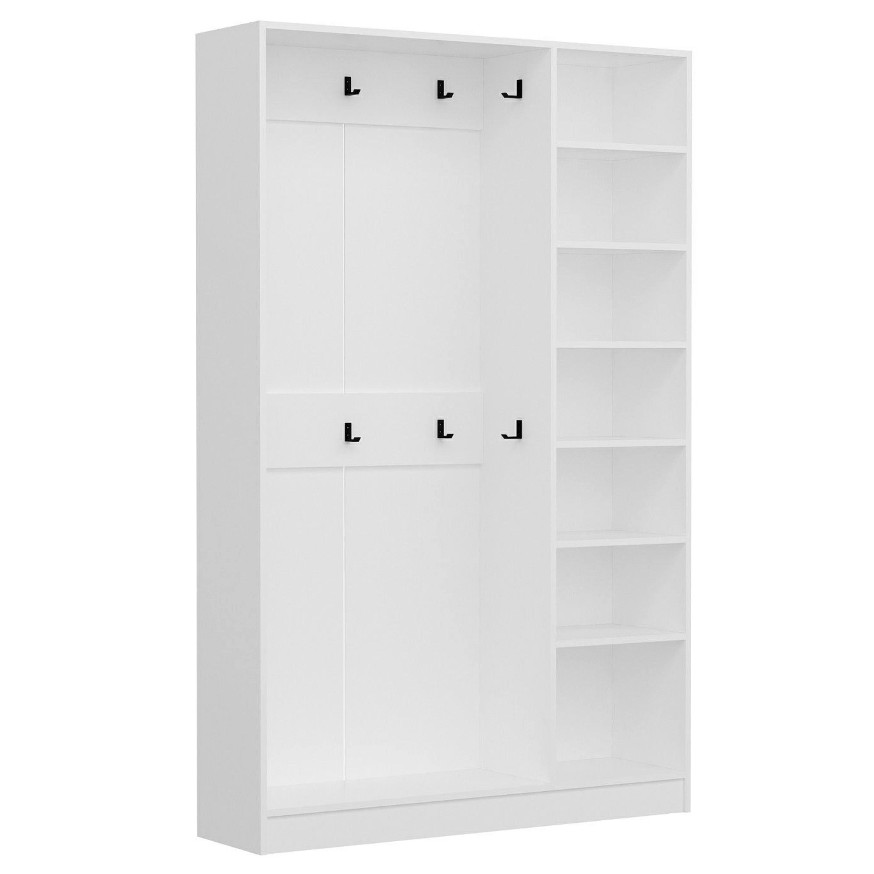 Skříň nabízí dostatek uzavíratelného úložného prostoru pro přehledné uložení vašich svršků, obuvi, doplňků a dalších nezbytností. Vnitřní vybavení sestává celkem ze 6 odkládacích háčků a 6 vložených polic. Konstrukce je vybavena otočnými dveřmi, které jsou osazeny praktickými úchyty. Skříň je vyrobena z laminovaného dřevěného materiálu s povrchem nenáročným na údržbu.