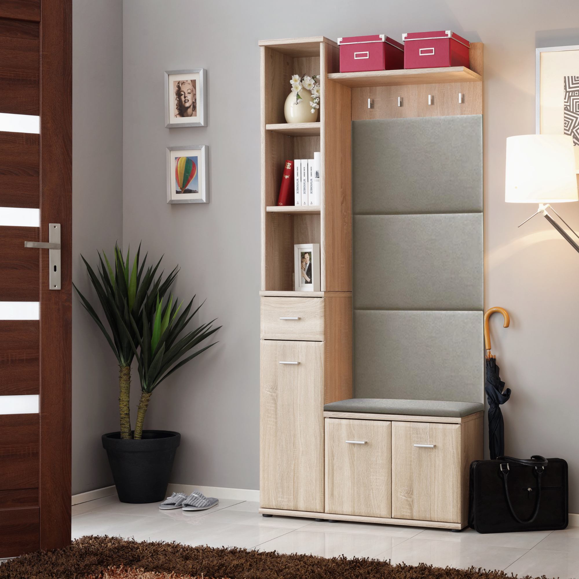 Předsíňová skříň OMARU 1 napomůže k udržení pořádku v předsíni a logickému členění vašich potřeb.