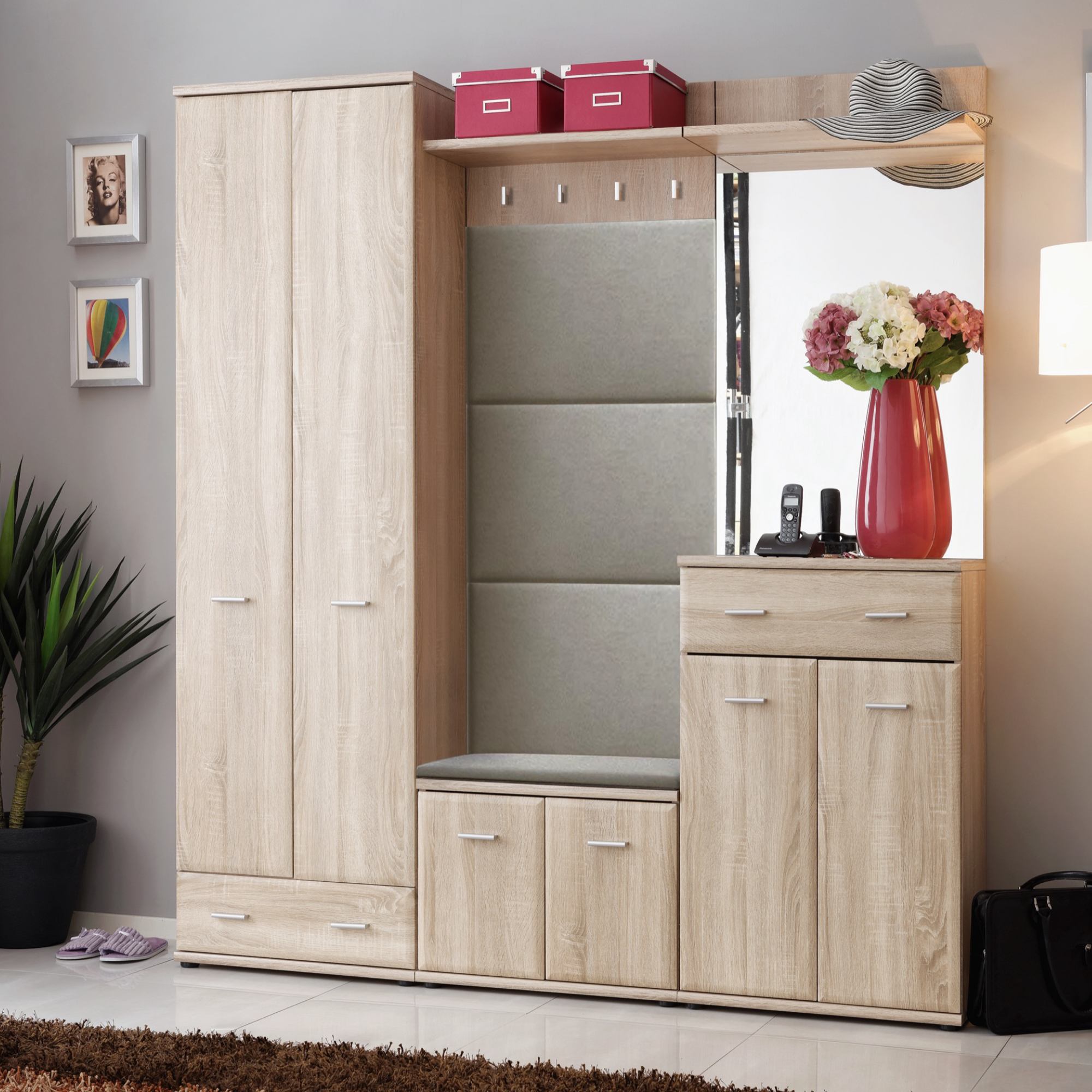 Předsíňová skříň OMARU 2 se stane vkusným doplňkem, který zajistí logické členění a pořádek vaší předsíně.