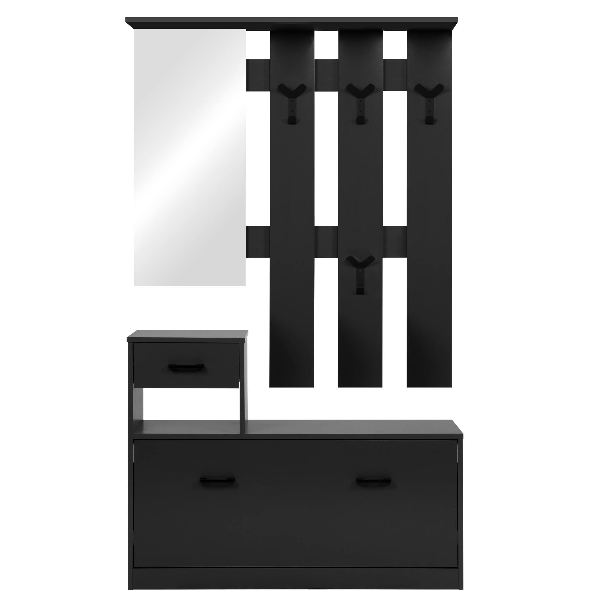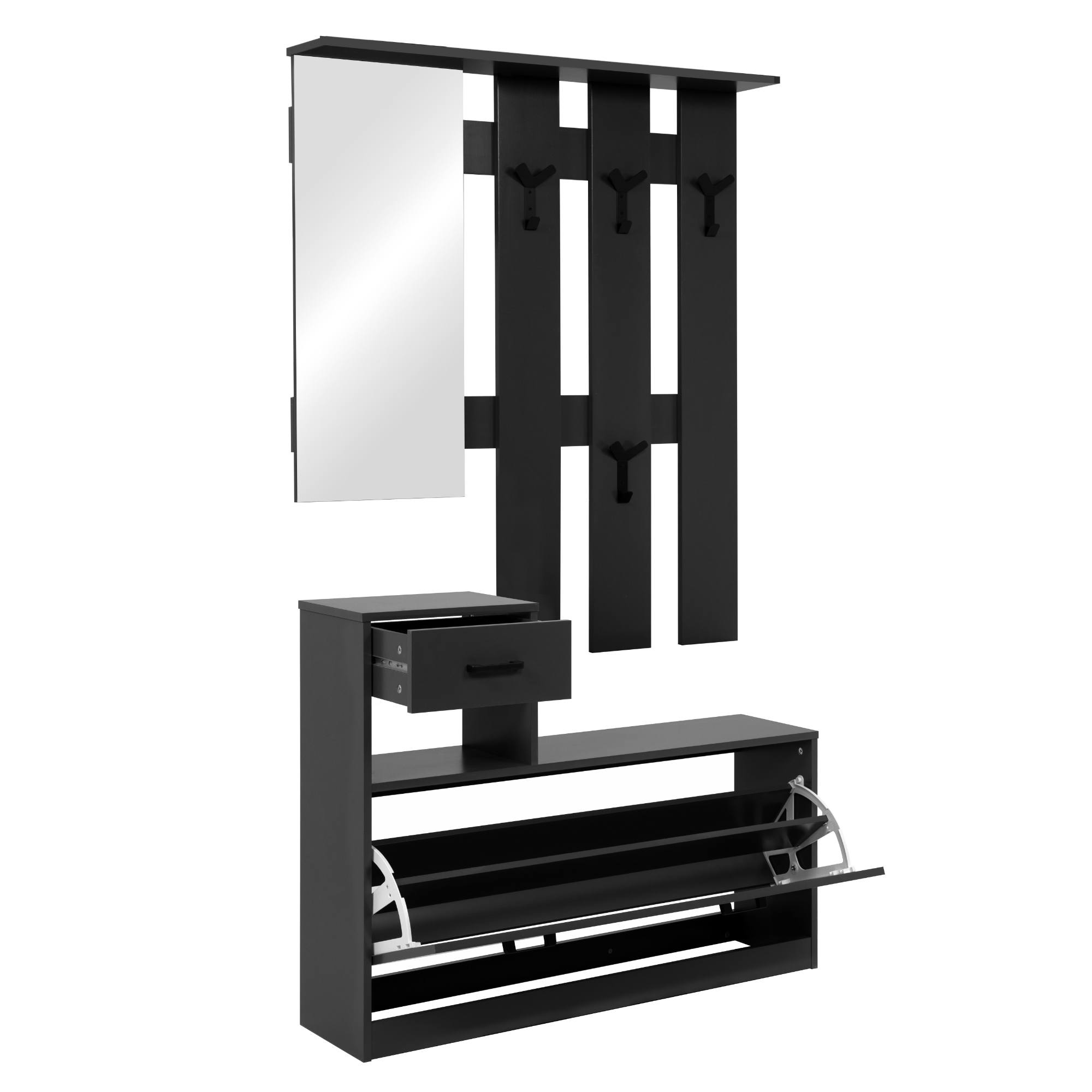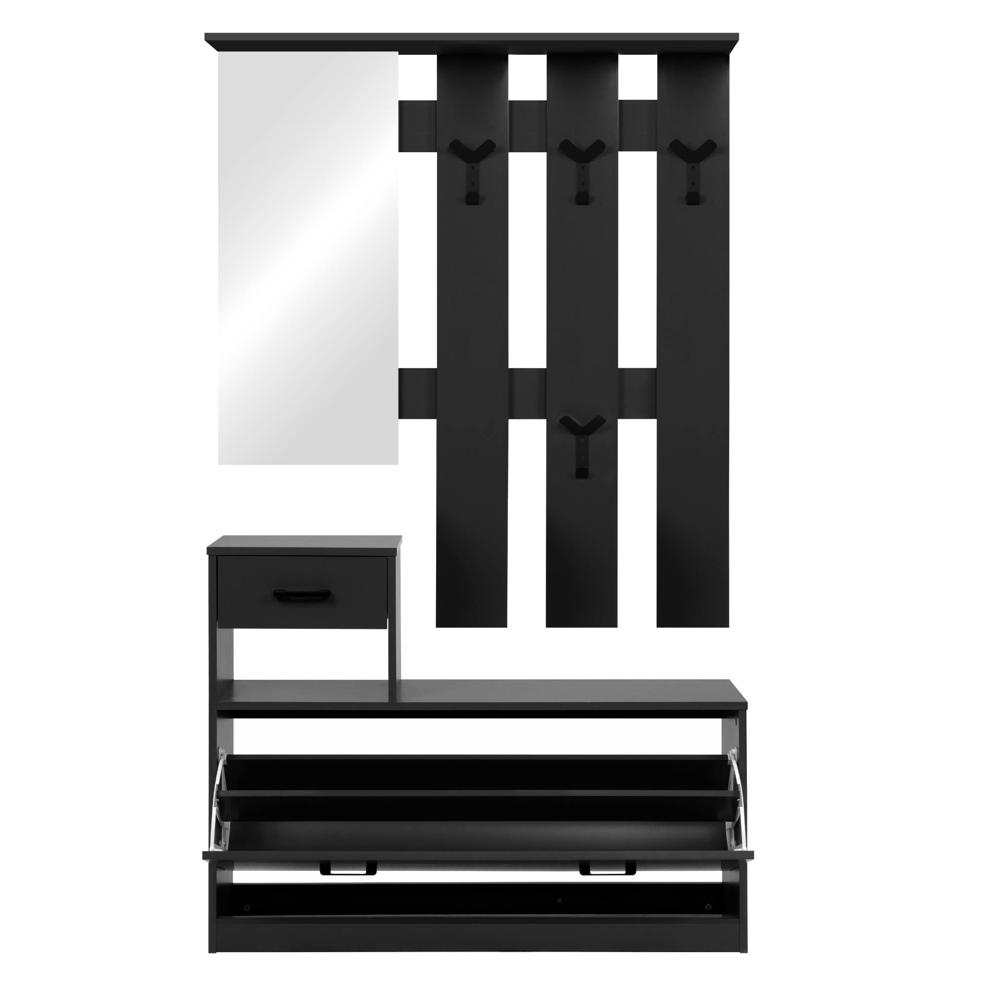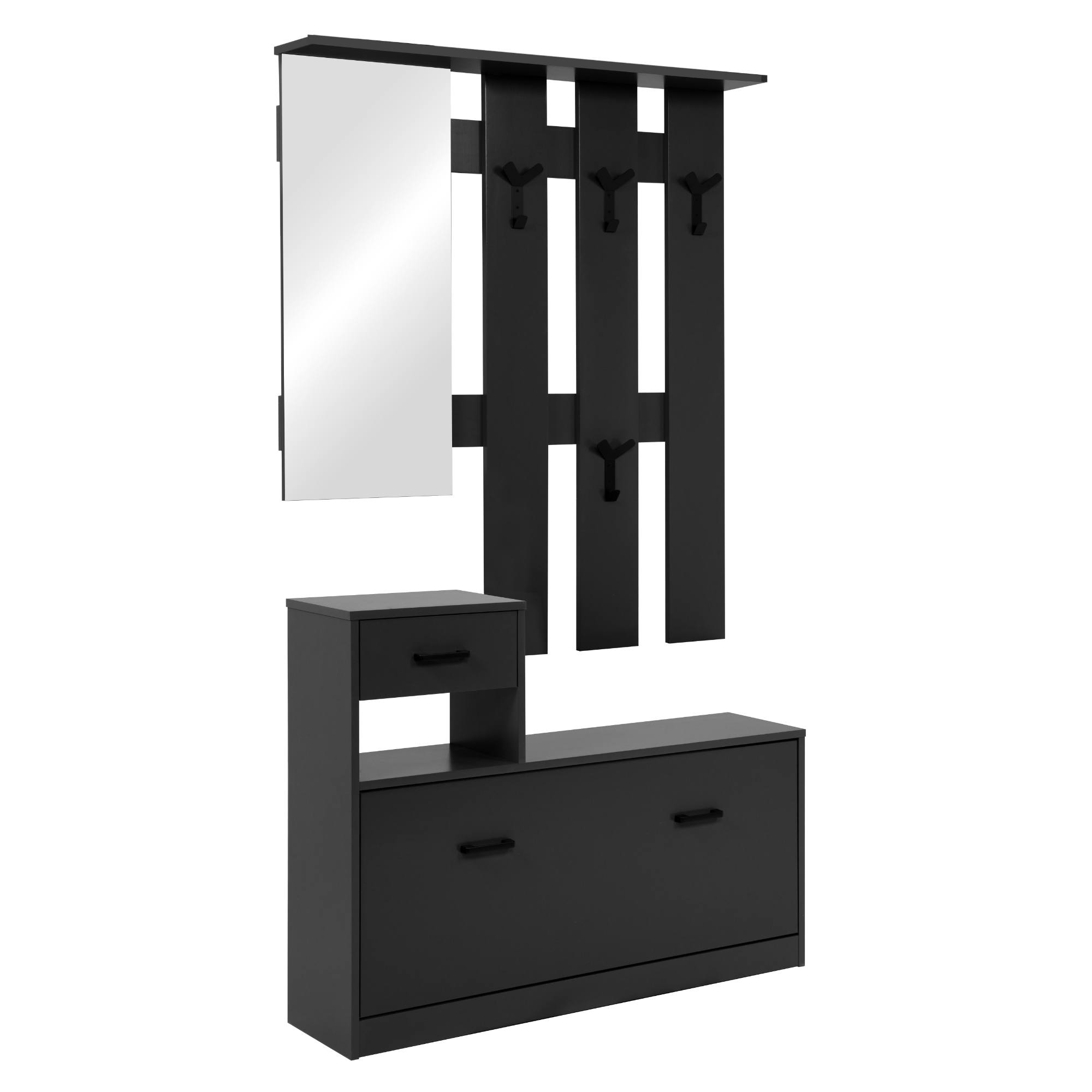 Její součástí je nejen místo na boty ukrývající se za výklopnými dvířky, ale i 1 zásuvka a 4 háčky, na které si můžete pověsit bundy, kabáty či různé módní doplňky. Háčky a úchyty, které usnadňují manipulaci s dvířky i zásuvkou, jsou z plastu. Nechybí ani zrcadlo, v němž si před odchodem z domova můžete zkontrolovat váš vzhled.
