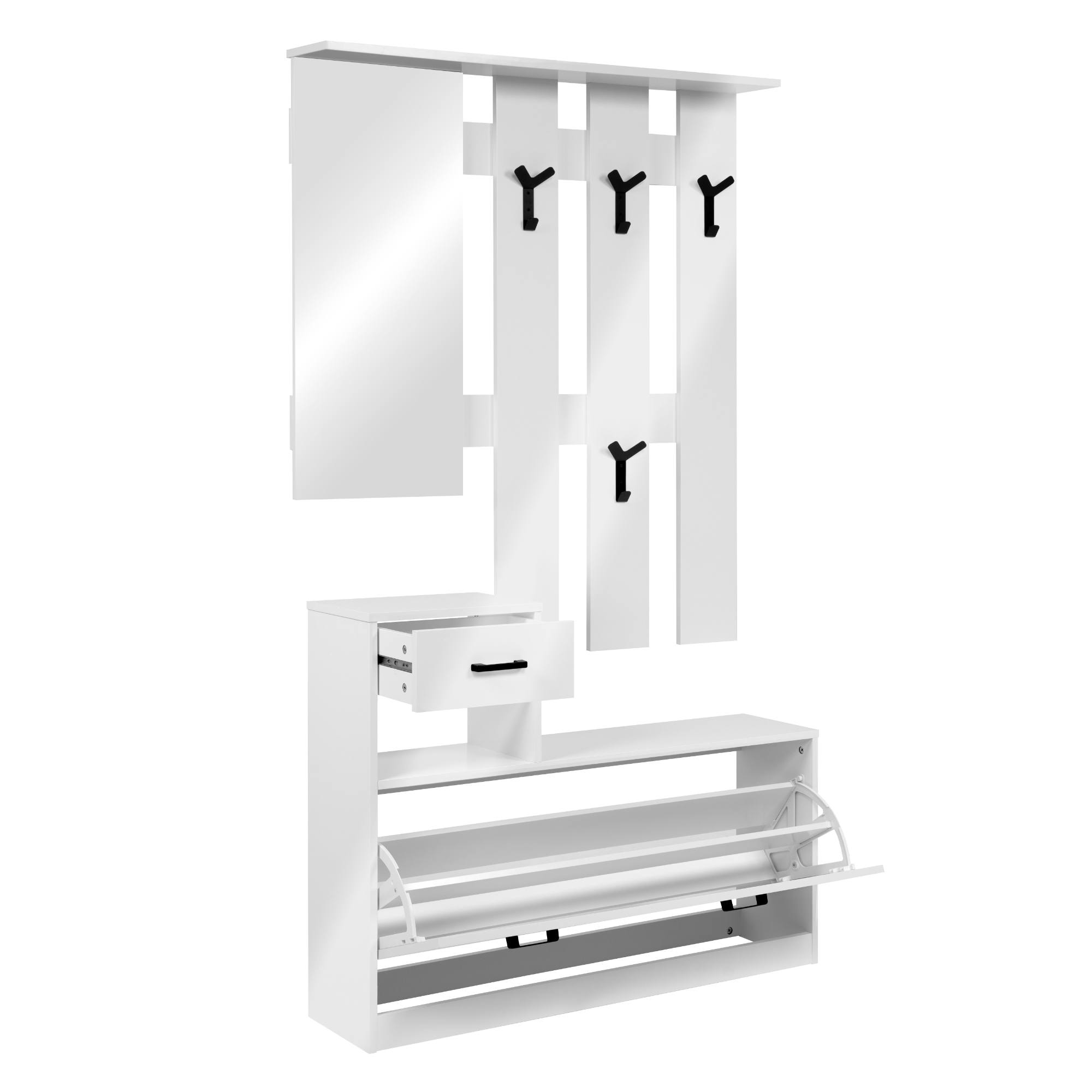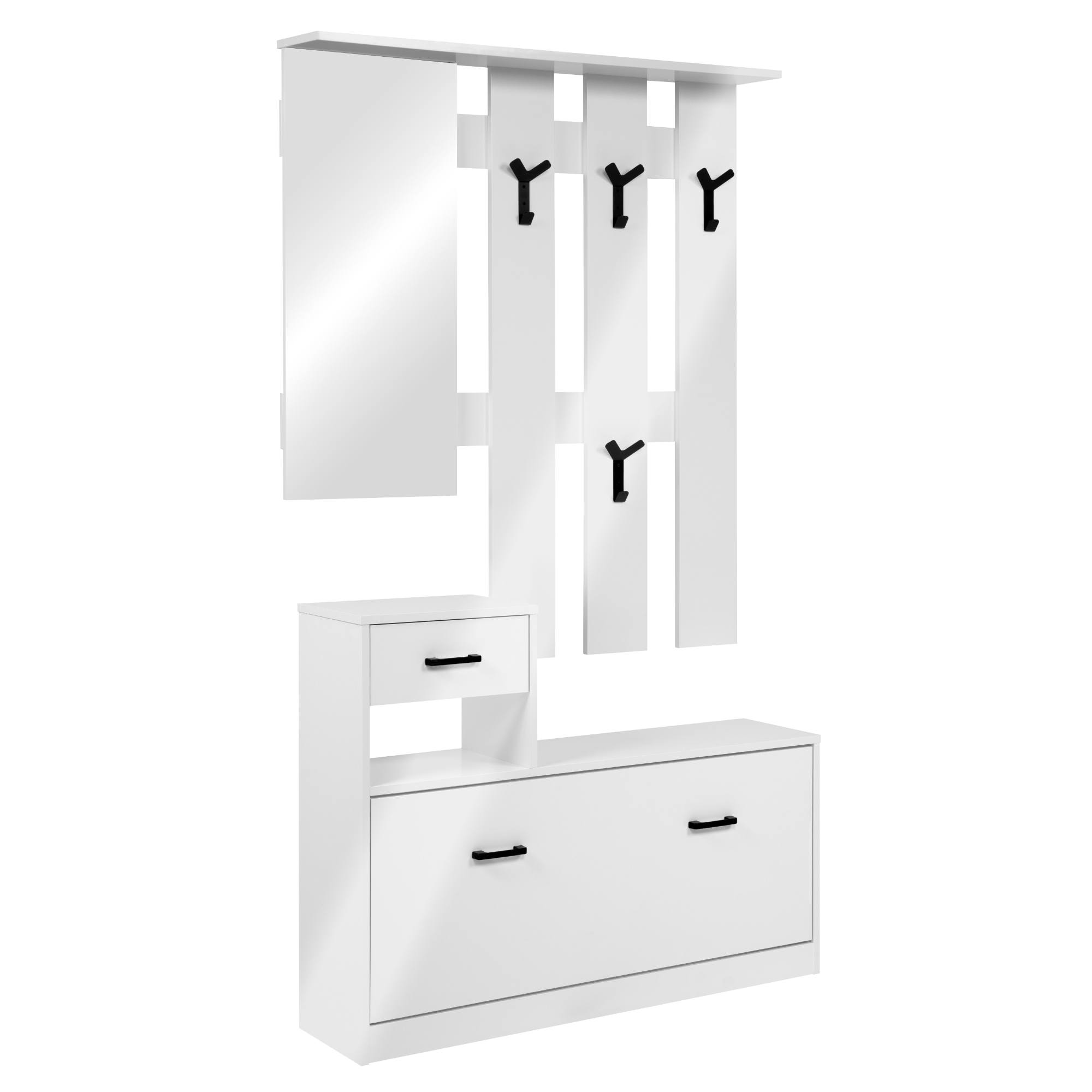 Její součástí je nejen místo na boty ukrývající se za výklopnými dvířky, ale i 1 zásuvka a 4 háčky, na které si můžete pověsit bundy, kabáty či různé módní doplňky. Háčky a úchyty, které usnadňují manipulaci s dvířky i zásuvkou, jsou z plastu. Nechybí ani zrcadlo, v němž si před odchodem z domova můžete zkontrolovat váš vzhled.