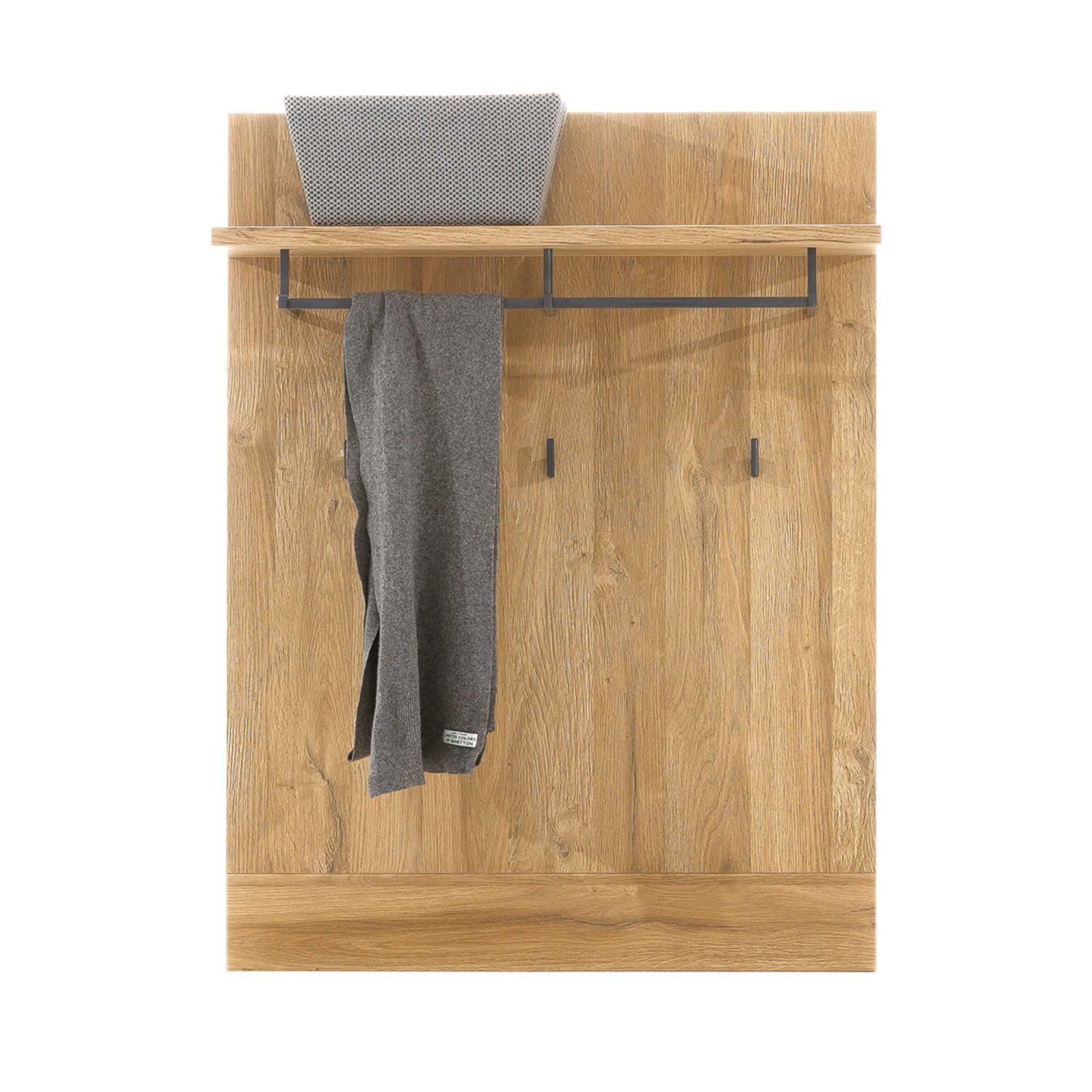 Předsíňový panel NEW YORK Y13 nabízí kombinaci moderního designu a elegantního dekoru dubu grandson. Police, s nosností až do 3 kg, poskytuje v horní části odkládací prostor a zároveň má ze spodní strany připevněnou šatní tyč se třemi integrovanými háčky navíc, funkční a praktické využití pro zavěšení bund a kabátů. Dalším místem kam lze odkládat a zavěsit jiné věci jsou 3 háčky přímo na svislé ploše panelu. Šířka a výška panelu činí konkrétně 77x102 cm. Panel je vyroben z odolného lamina a je zároveň opatřen ABS hranami, které chrání jednotlivé části nábytku proti mechanickému poškození. Snadná a rychlá montáž.