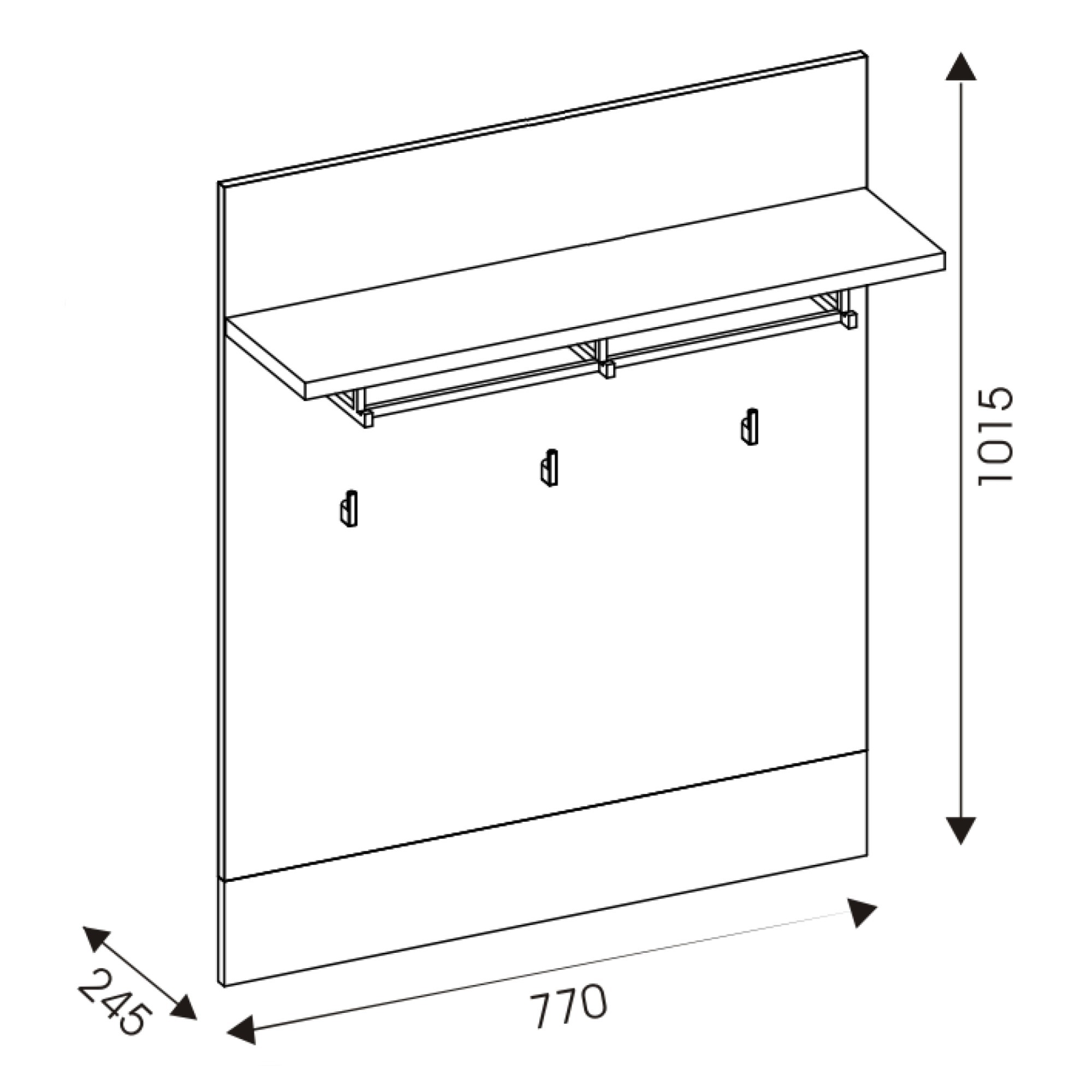 - Šatní tyč se 3 háčky, další 3 háčky na ploše panelu
