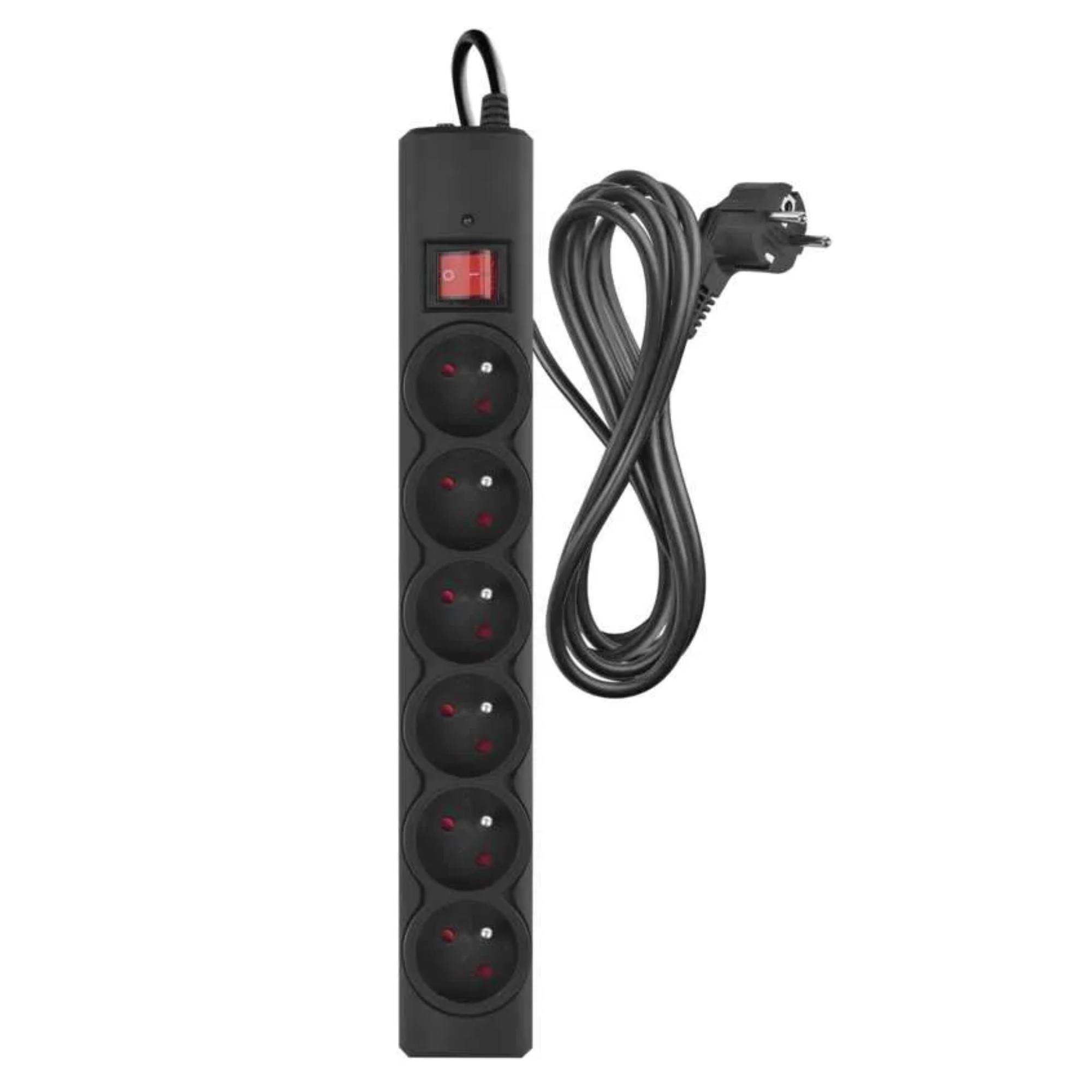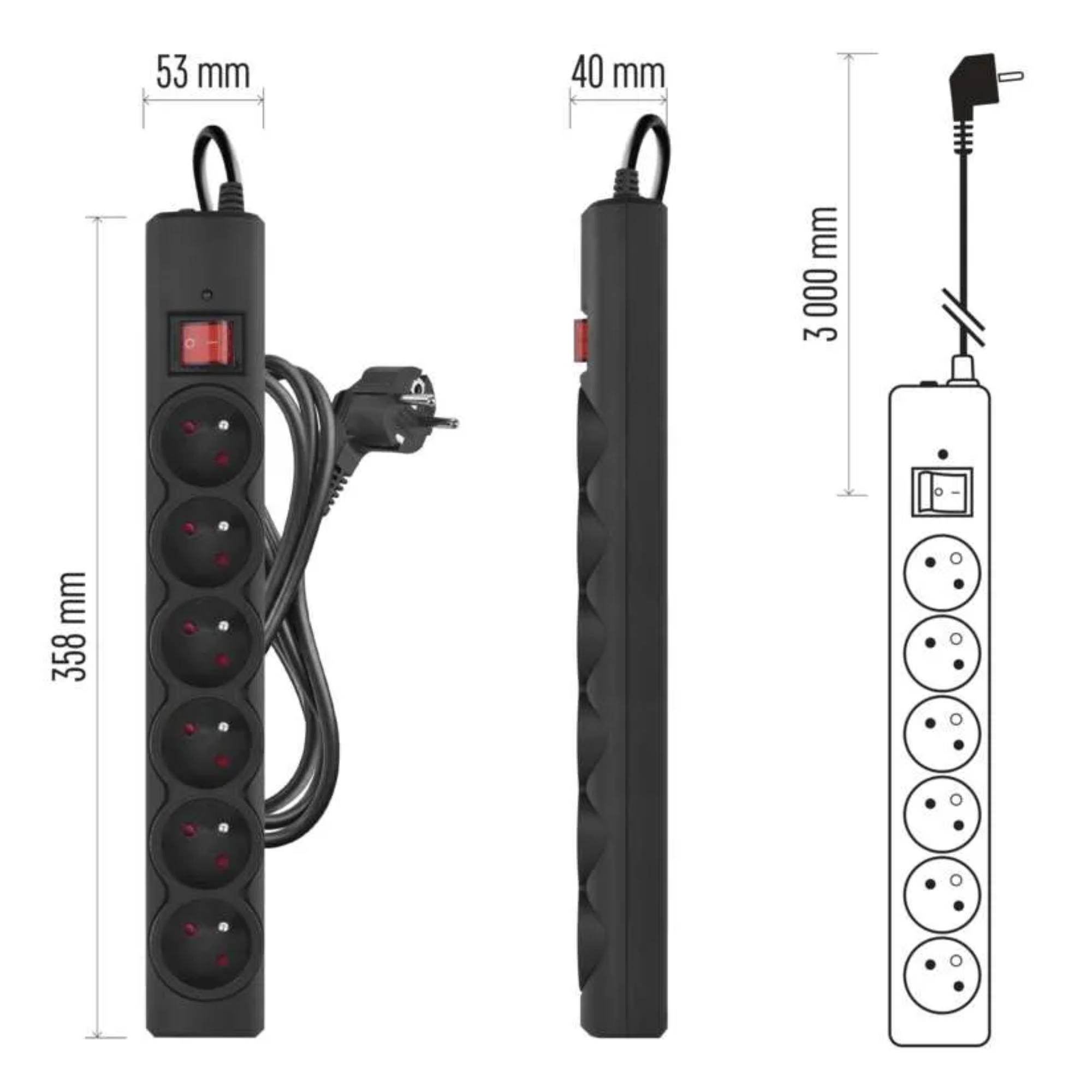 Přepěťová ochrana P54016/19 - černá, 6 zásuvek, délka 3 m, absorpce 380 J