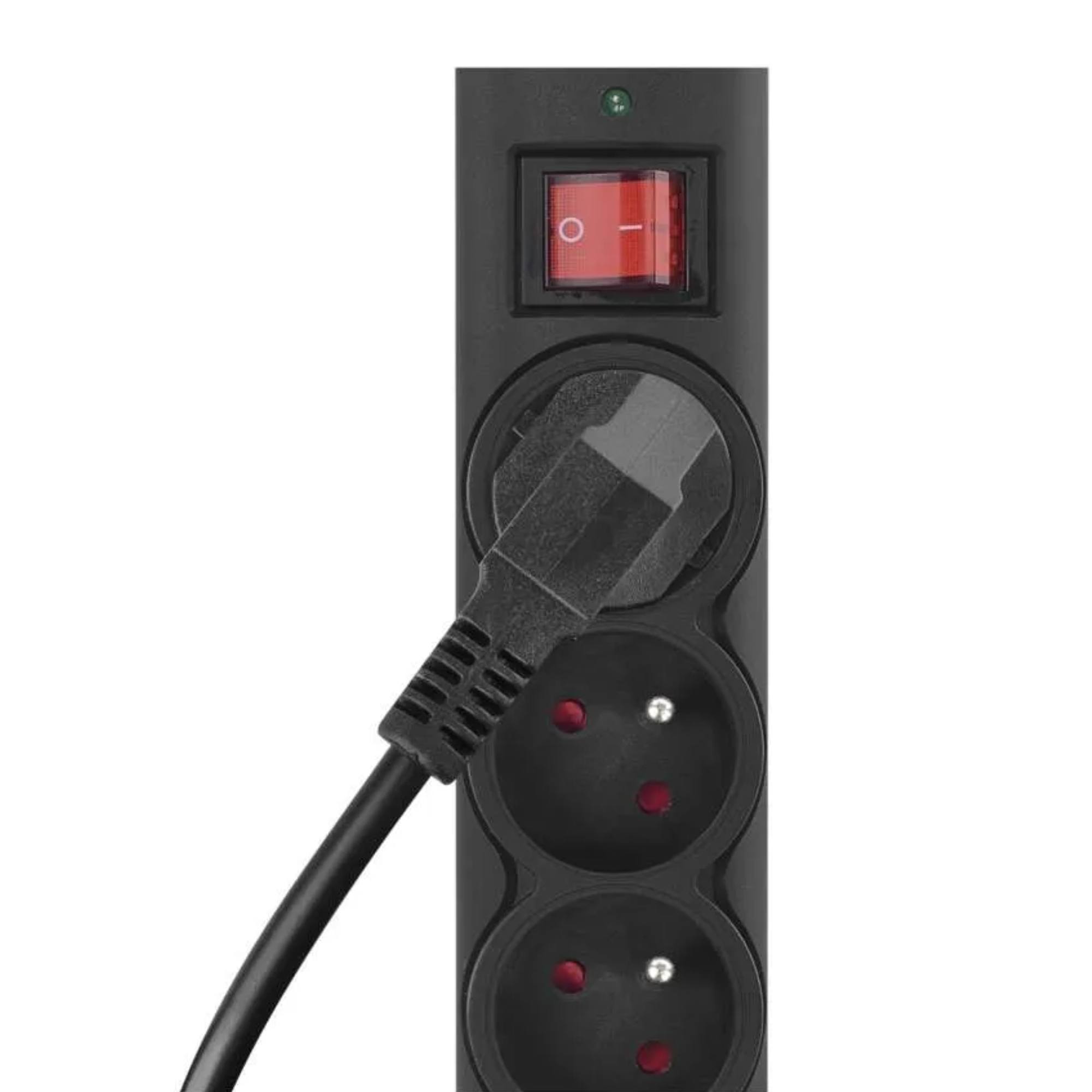 K dispozici máte celkem 6 zásuvek s uzemněním vybavených dětskými pojistkami (clonkami). Výhodou je vypínač, díky kterému můžete pohodlně ovládat využití zásuvek bez zbytečného vypojování ze zdroje. Je vybavena vratnou pojistkou, která zajišťuje snadnou obnovu napájení po přetížení.