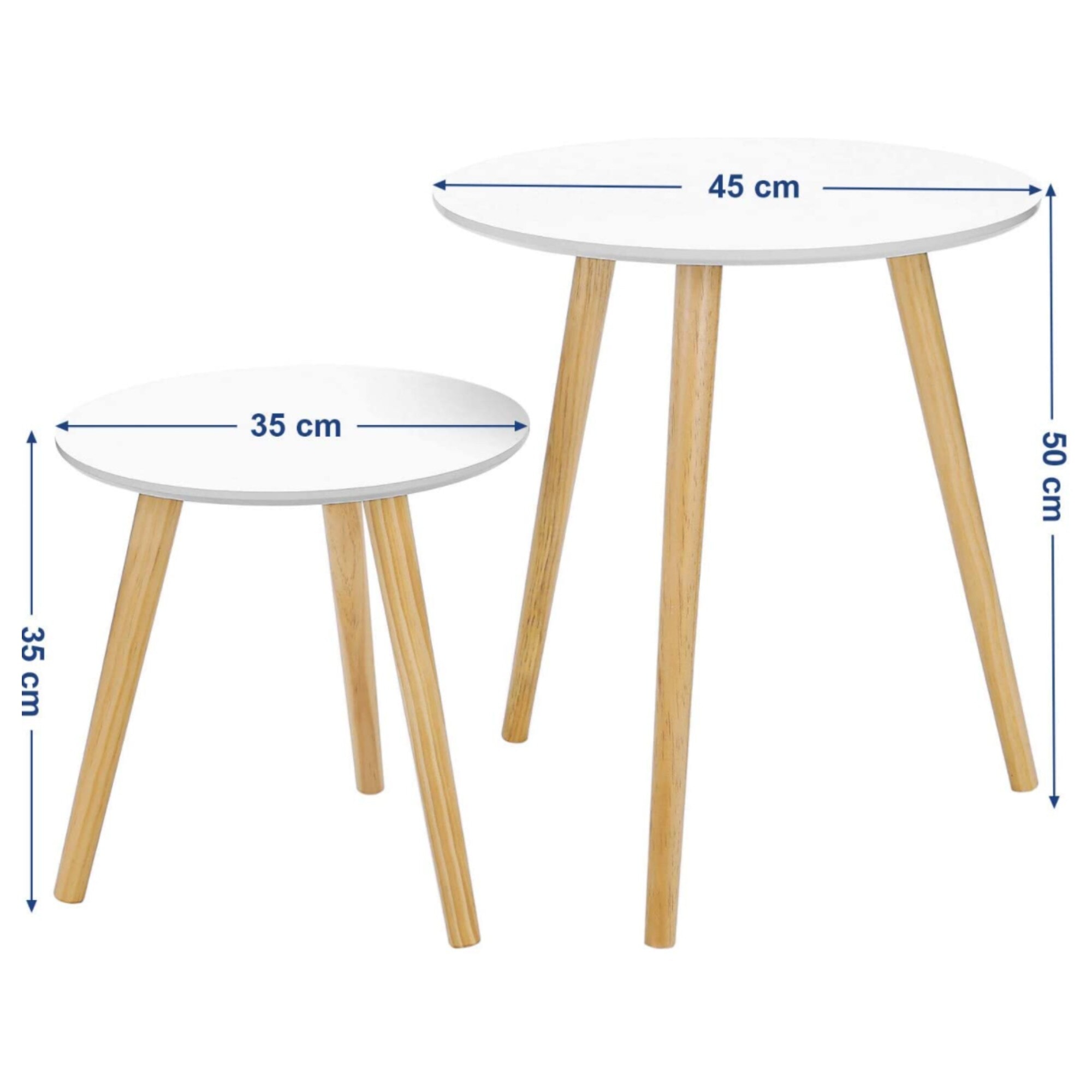 Sada konferenčních stolků LET07 jsou skvělými doplňky ve skandinávském stylu. Stolky do sebe perfektně zapadají. Menší stolek disponuje rozměry 35x35x35 cm. Větší je o rozměrech 45x45x50 cm. Kvalitní MDF deska a nožky z masivního borového dřeva zajišťují bytelnost a stabilitu. Poslouží jako stolek na odložení kávy, pracovní stolek, na který lze položit notebook nebo jako dekorační podklad pro vázy a svíčky.