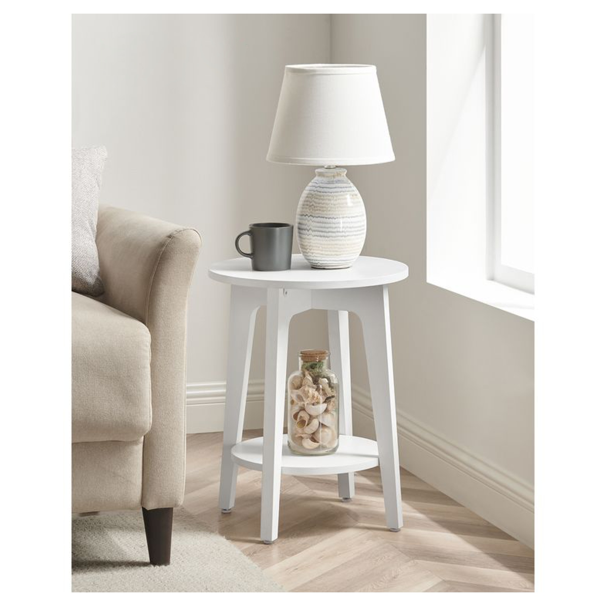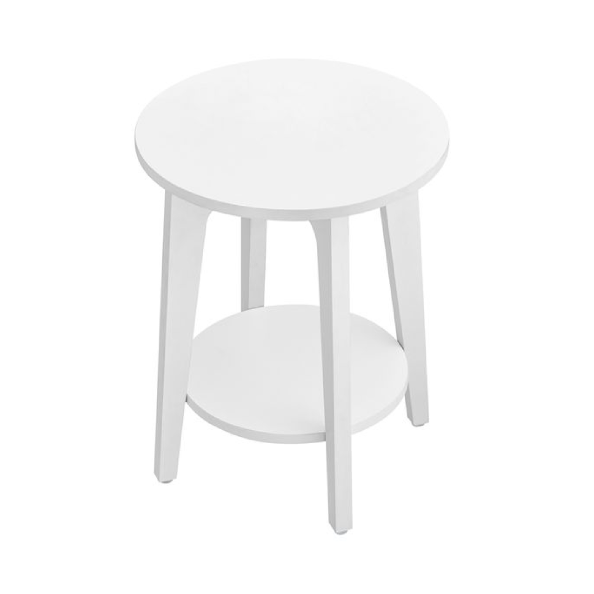 Vyrobený je z dřevotřískových desek. Dostatečný odkládací prostor zajišťuje hlavní deska s průměrem 40 cm a spodní celoplošná police. Nosnost činí 90 kg.