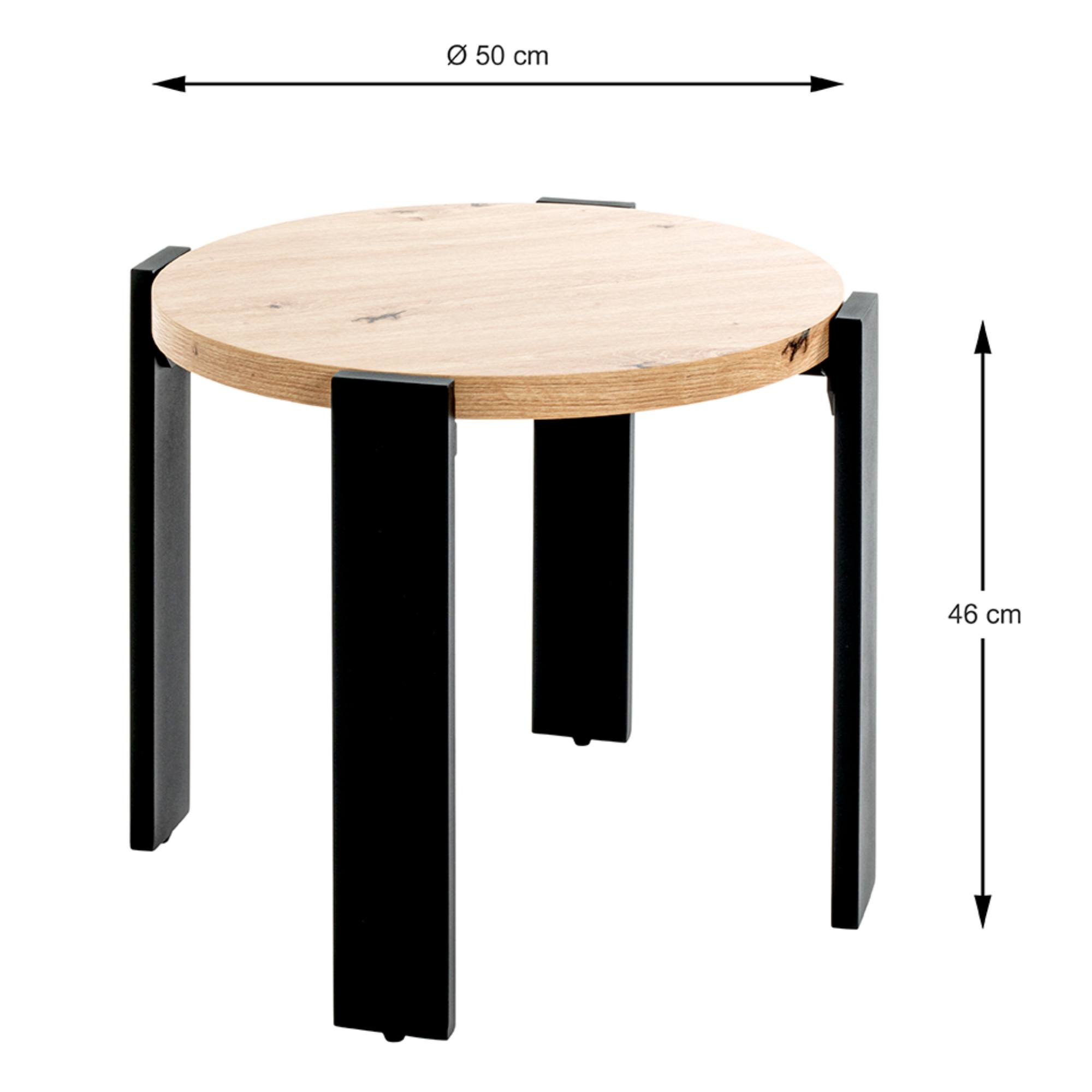 Přístavný stolek COLUMBIA III - černá/dub, průměr 55 cm