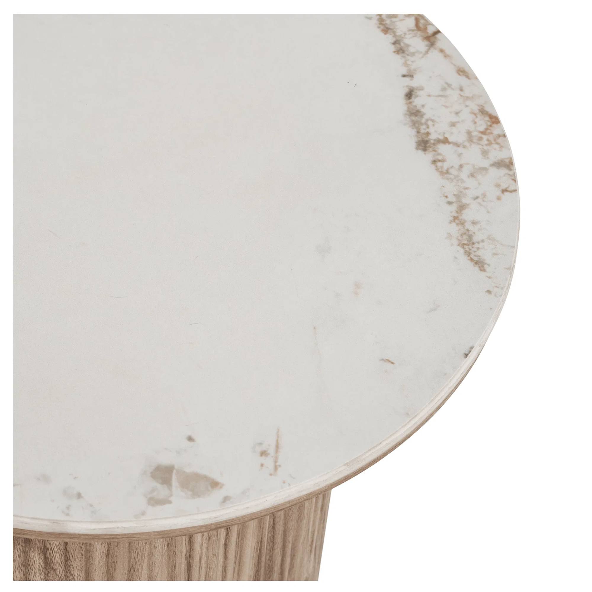 Stolek stojí na pevné a stabilní středové noze. Jeho konstrukce je vyrobena z dřevovláknité desky MDF, která je nenáročná na údržbu. Konstrukci doplňuje horní deska z kvalitní keramiky.