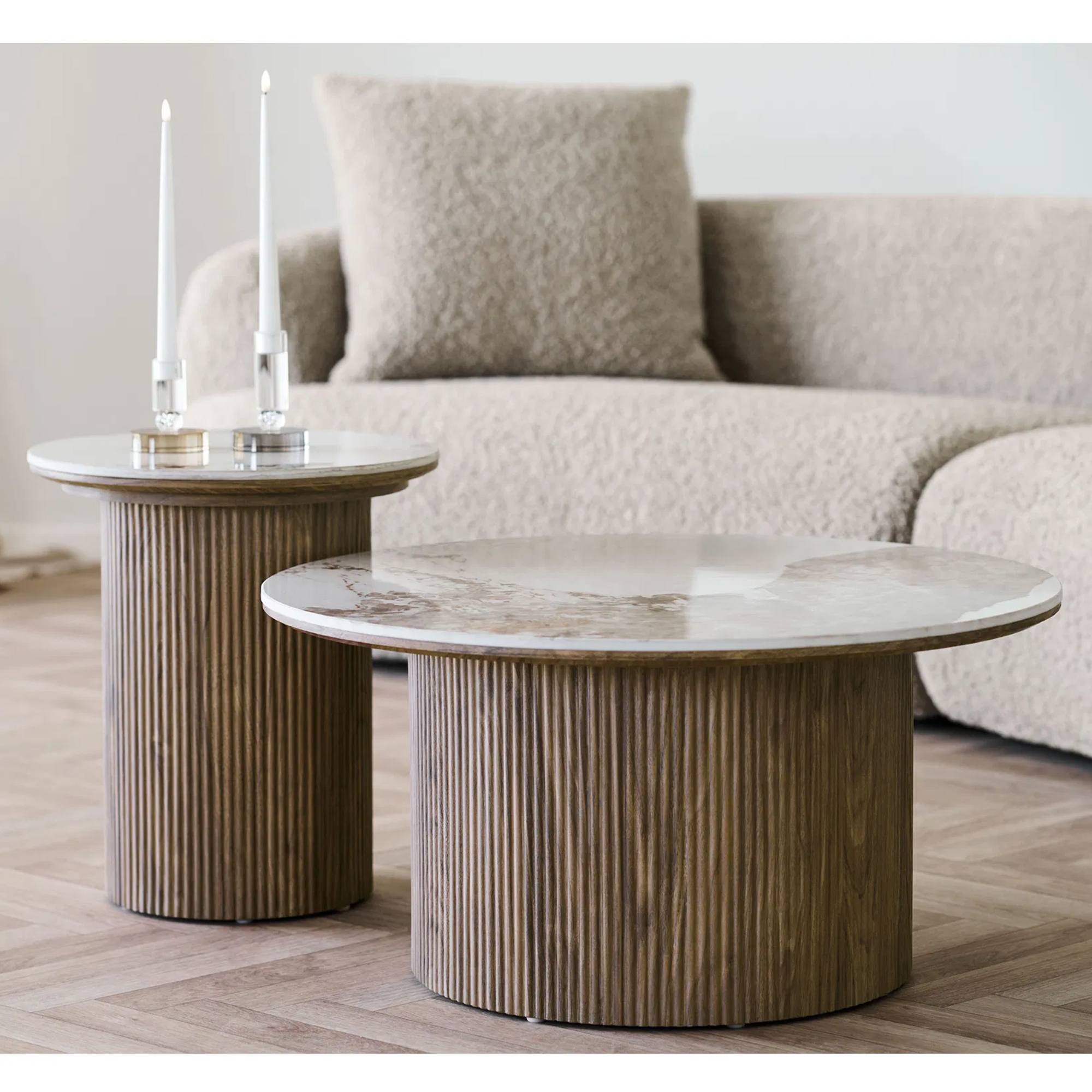 Přístavný stolek OTHINS je vyhotovený v moderním designu a zdobí jej stylový dekor mramoru.