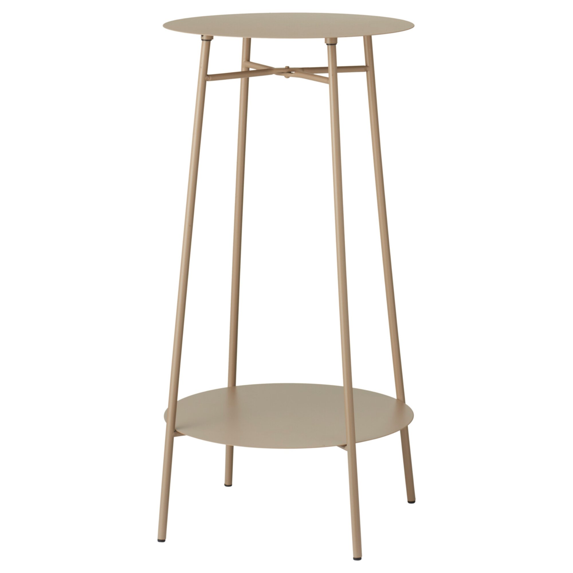 Má kovovou konstrukci s plastovými nožičkami. Je vybaven úložnou policí, která je ideální pro odložení časopisů, knih či dekorací. Svým kulatým provedením se hodí i do menších místností k vystavení rostlin nebo odložení nápojů u sedací soupravy. S nosností 10 kg je ideálním doplňkem do vašeho obývacího pokoje. Jeho minimalistický design bude vynikat v řadě interiérů.