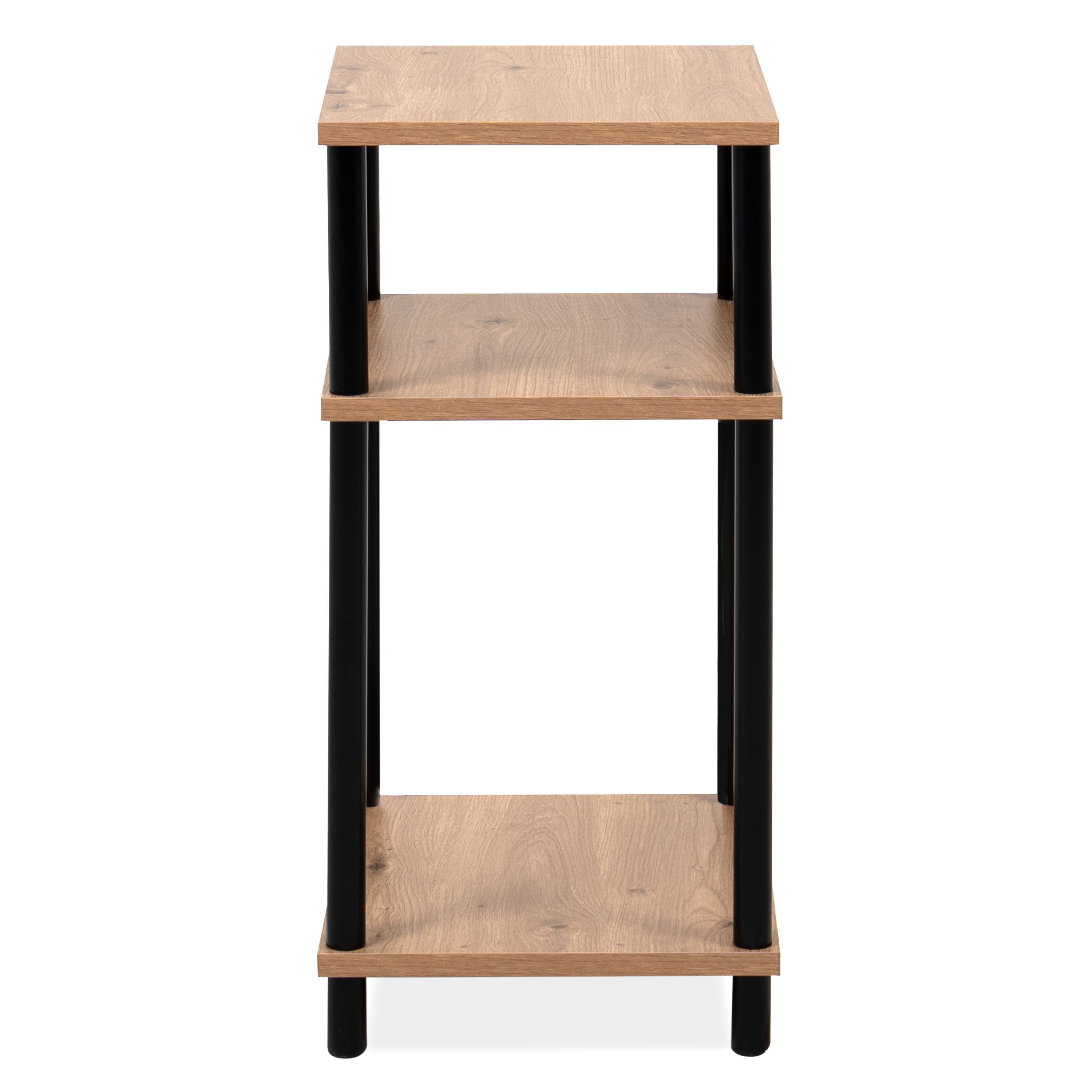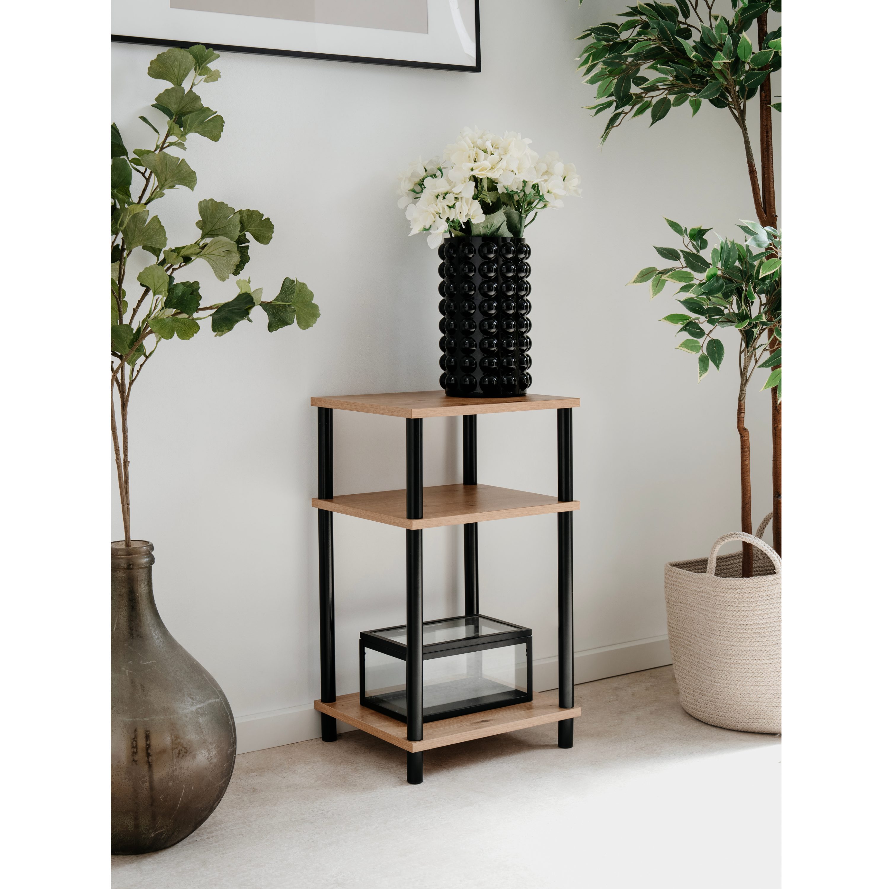 Provedení se 3 odkládacími plochami nabízí dostatek úložného místa bez zbytečné mohutnosti. Vrchní deska poslouží pro dekorace, lampu nebo každodenní drobnosti, zatímco police pak přehledně uspořádají knihy, boxy či další doplňky. Otevřená konstrukce zachovává vzdušný vzhled a umožňuje snadný přístup ke všem uloženým předmětům.