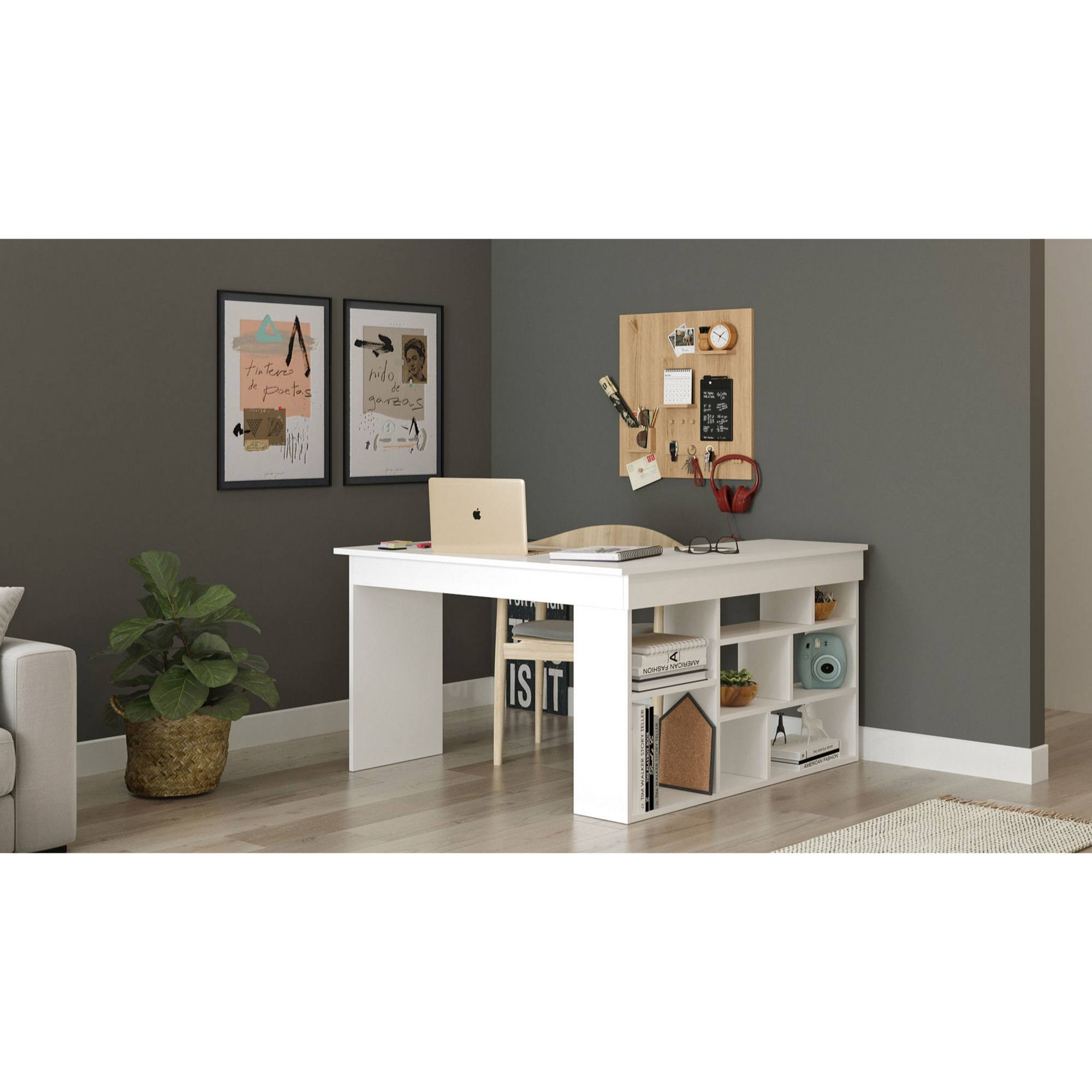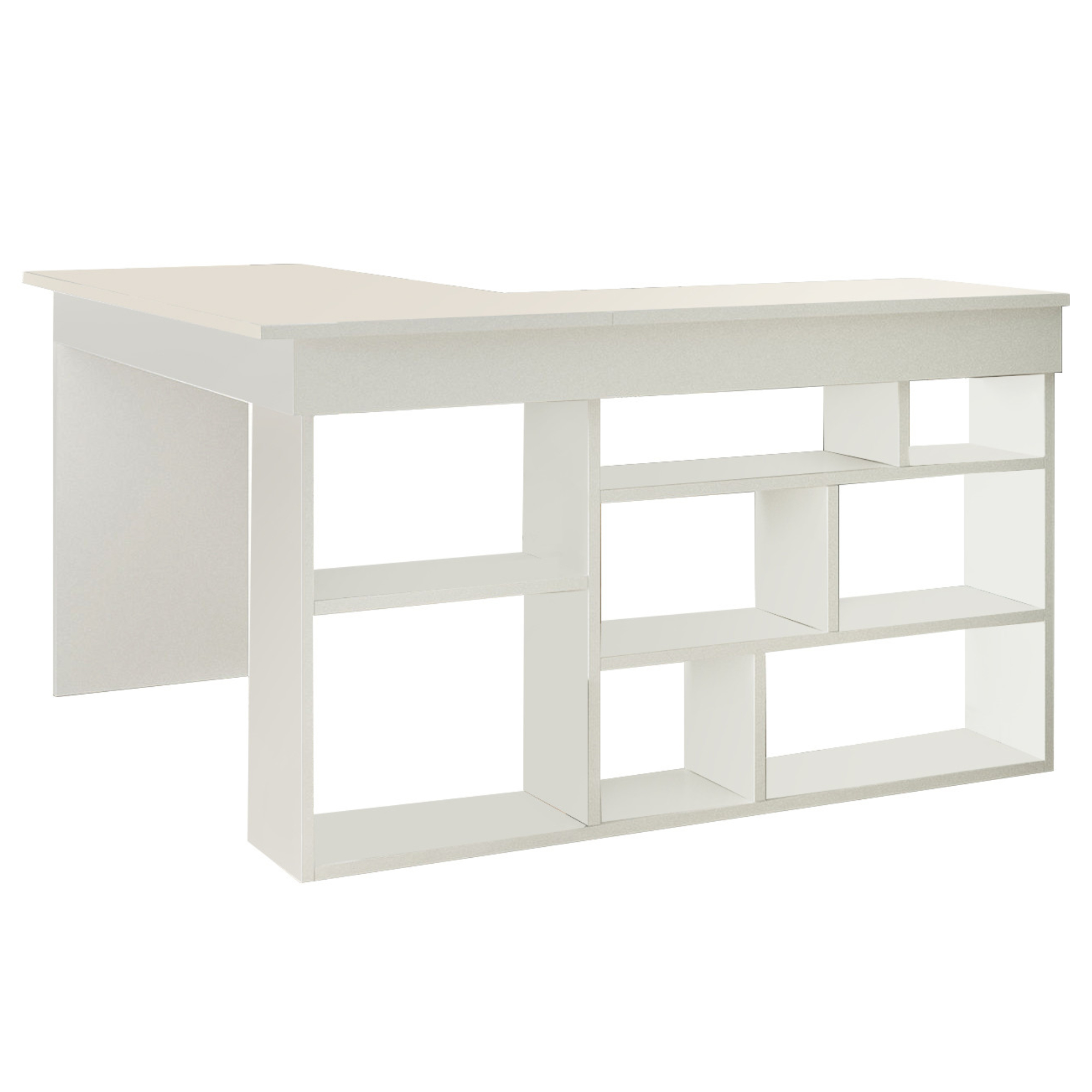 Díky jeho provedení ho můžete umístit přímo do rohu místnosti, ovšem vyjímat se bude i volně v prostoru. Skvěle tak zapadne do všech moderně zařízených pracoven či kanceláří. Dostatečně široká horní deska vám poskytne plno prostoru pro veškerou vaši práci. Do atypické konstrukce jsou zakomponované otevřené police, které využijete pro uložení všech vašich předmětů.