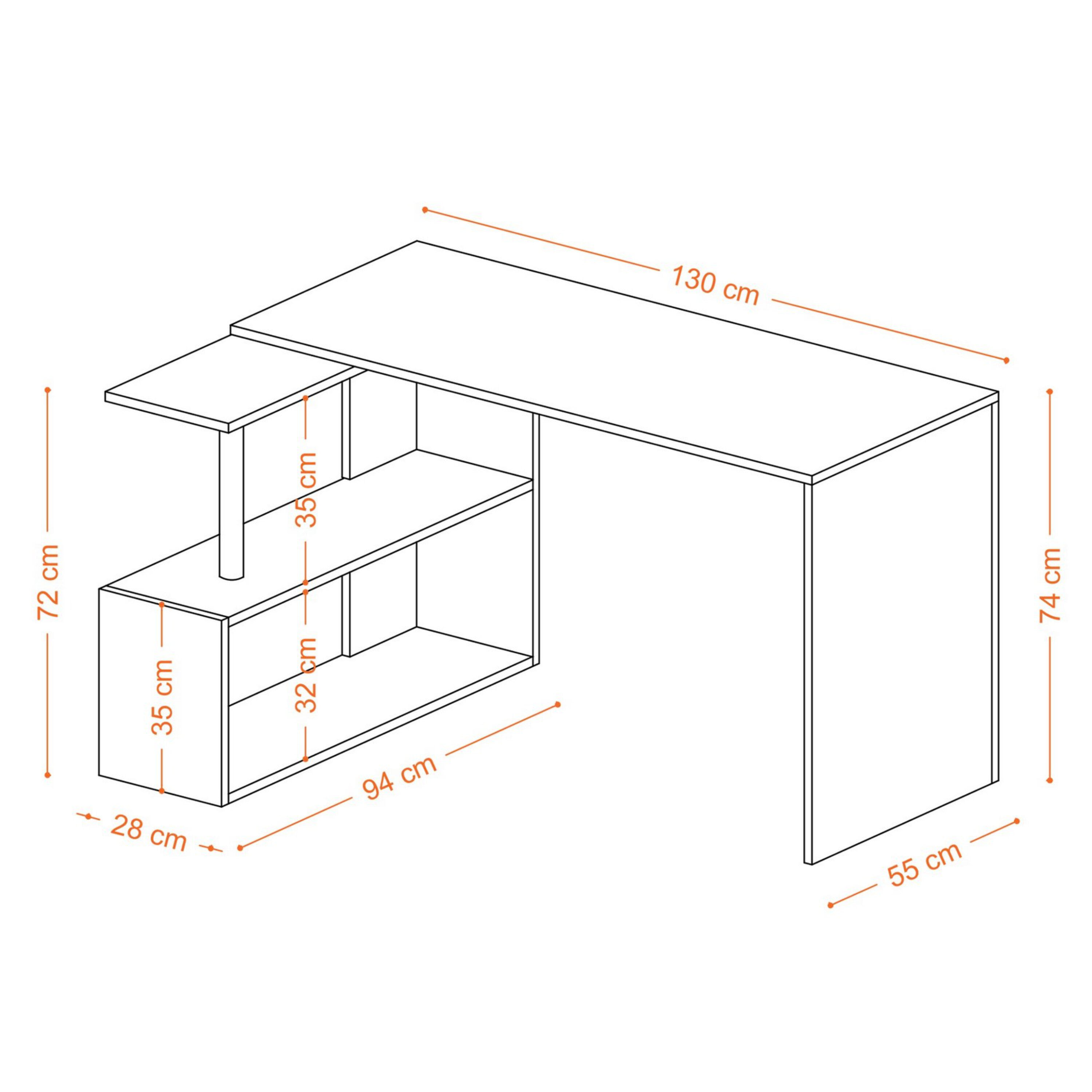 Rohový psací stůl GELINCIK splní i ty nejnáročnější požadavky. Umožní vám vaši každodenní kancelářskou práci, při které budete mít k dispozici navíc i příruční regál. Zde můžete odložit vaše dokumenty, šanony a jiné předměty. Stůl se díky svému minimalistickému vzhledu bude vyjímat takřka v každém interiéru. Povrch stolu vyžaduje minimální údržbu.