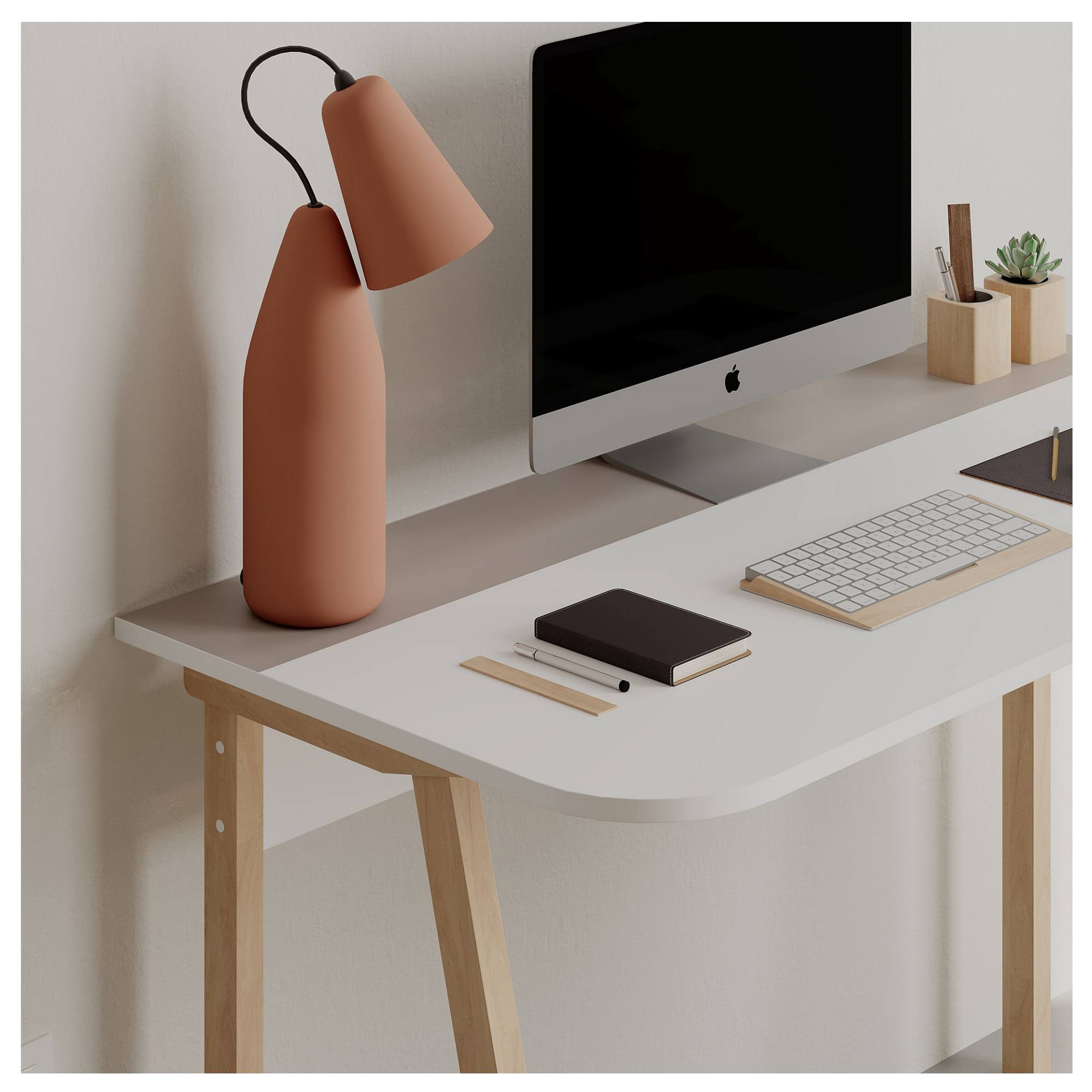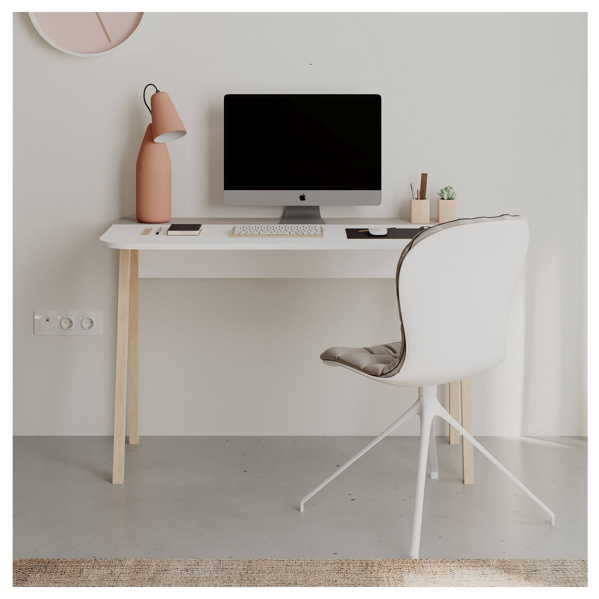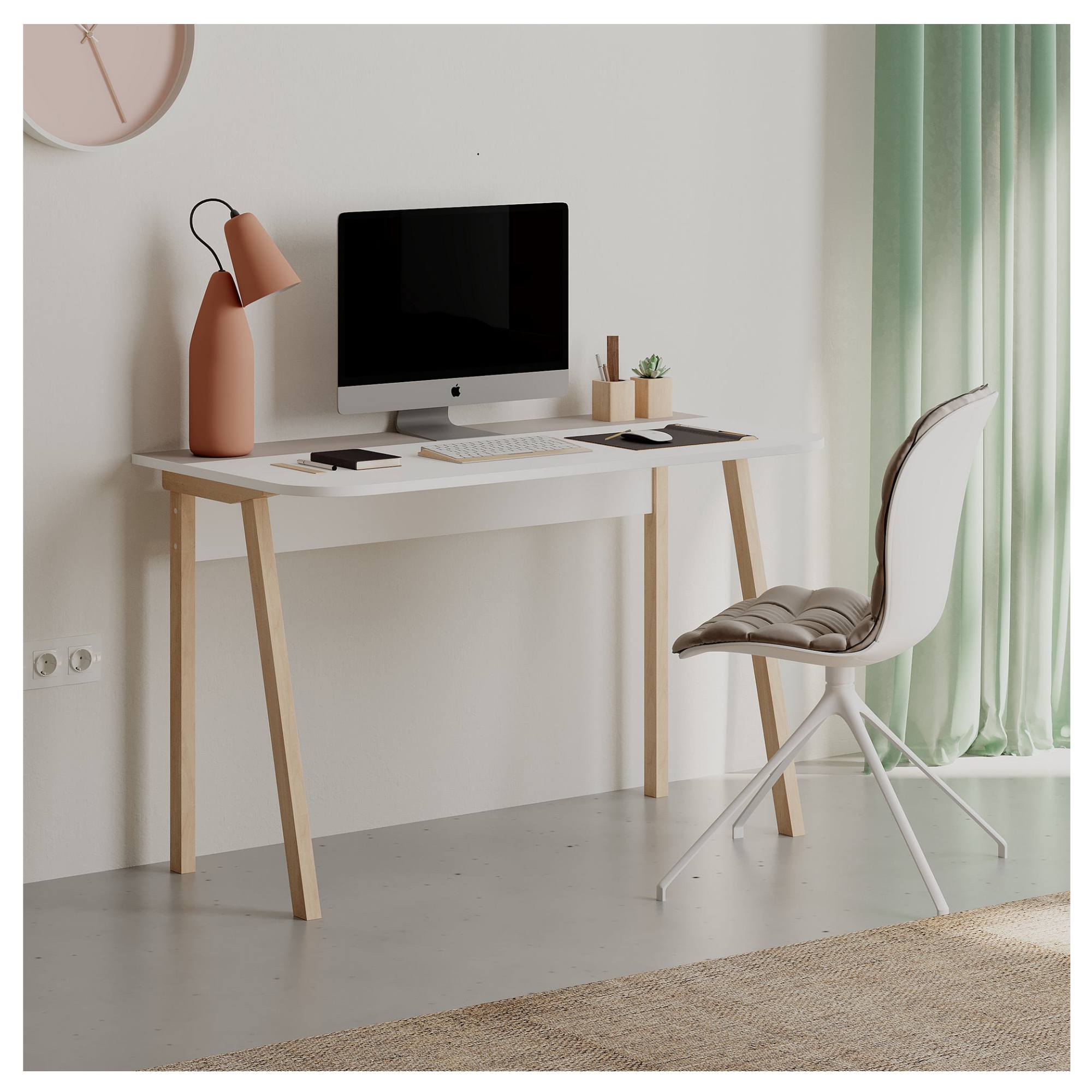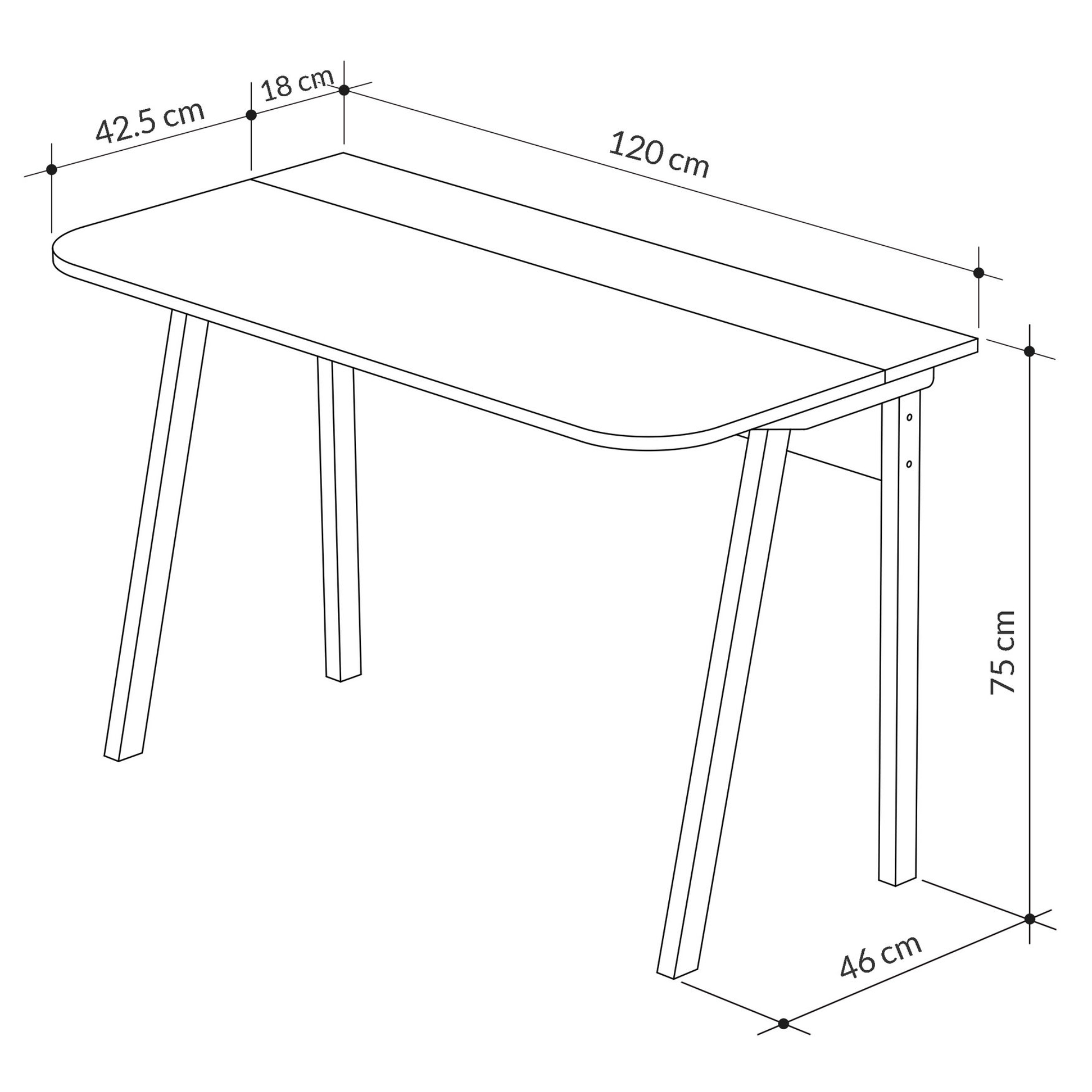 Stůl je vyroben z laminované dřevotřískové desky, která se snadno udržuje a je odolná vůči každodennímu používání. Stabilitu a pevnost zajišťuje čtyřnohá podnož, která zároveň podtrhuje jeho skandinávský vzhled. S pracovní plochou o šířce 120 cm a hloubce 60 cm nabízí dostatek místa pro notebook, knihy i další nezbytnosti, ať už pracujete, studujete nebo tvoříte.
