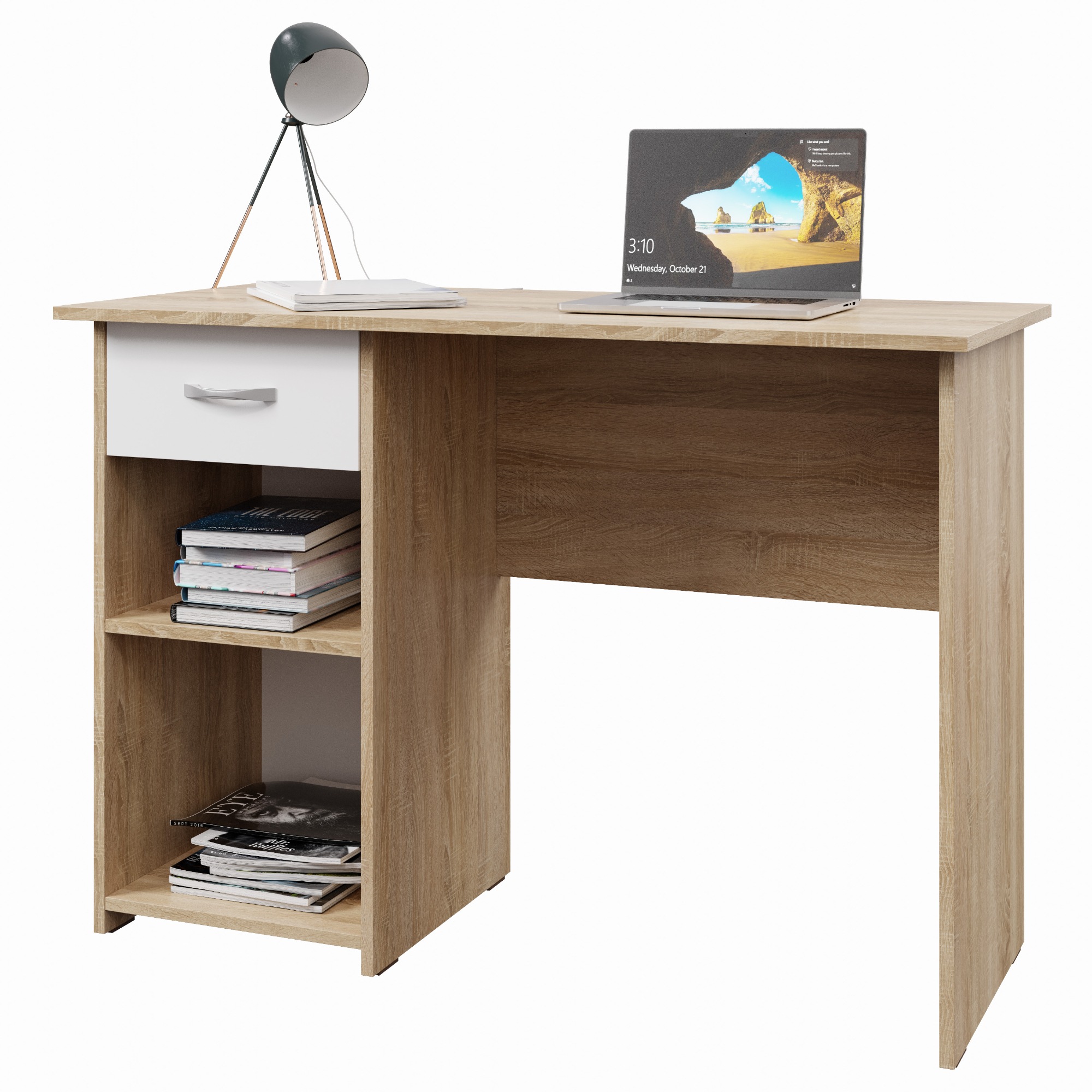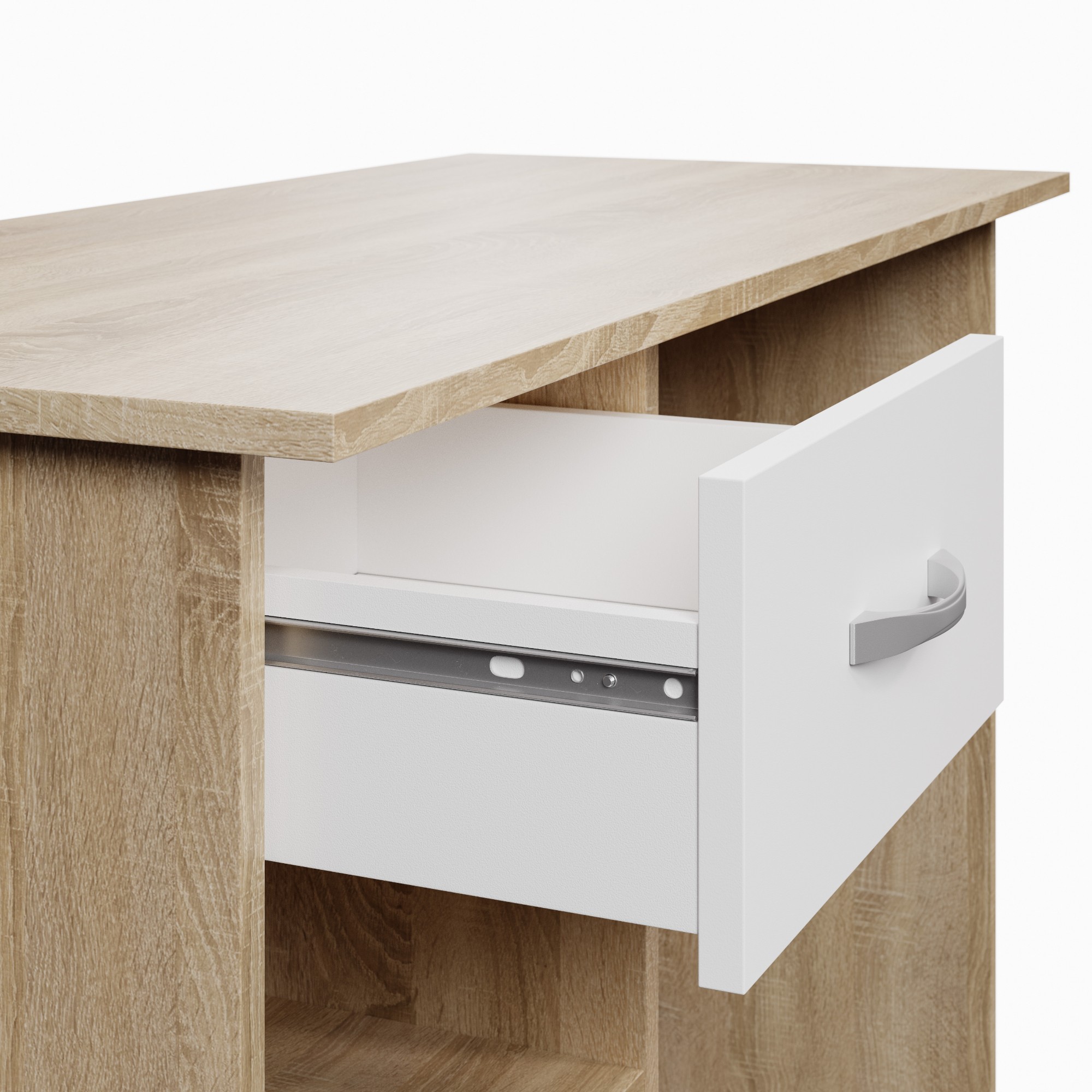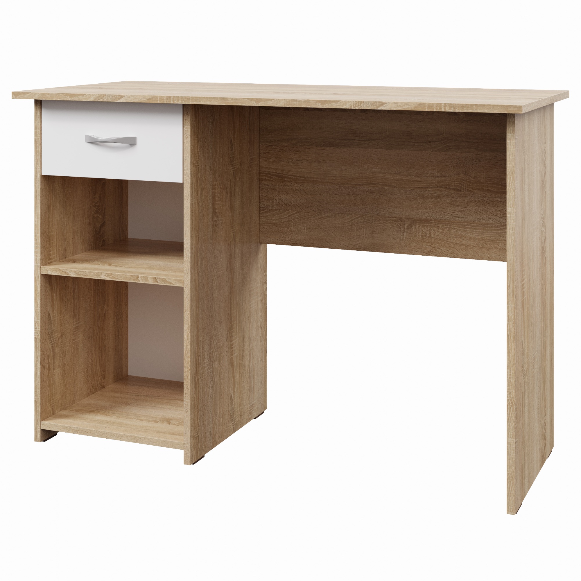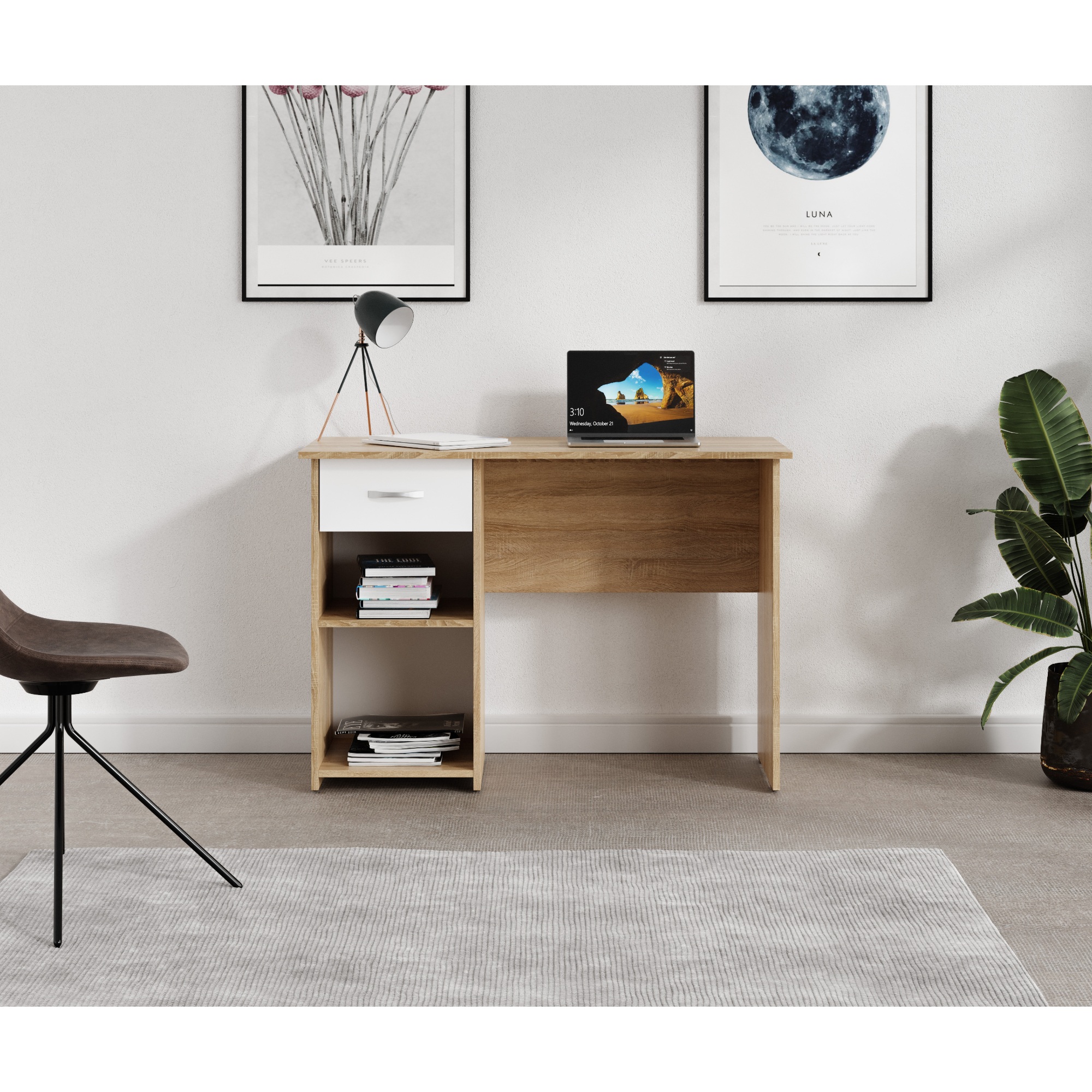 Jednoduchý psací stůl ZAFAR v dekoru dubu sonoma se hodí do každé domácí pracovny či kanceláře. Disponuje úložným prostorem, který se skládá z jedné praktické zásuvky, do které uložíte drobnější předměty a jedné vložené police. Decentní úchytka podtrhuje celkový styl stolu. Je vyrobený z dobře udržovatelného lamina.